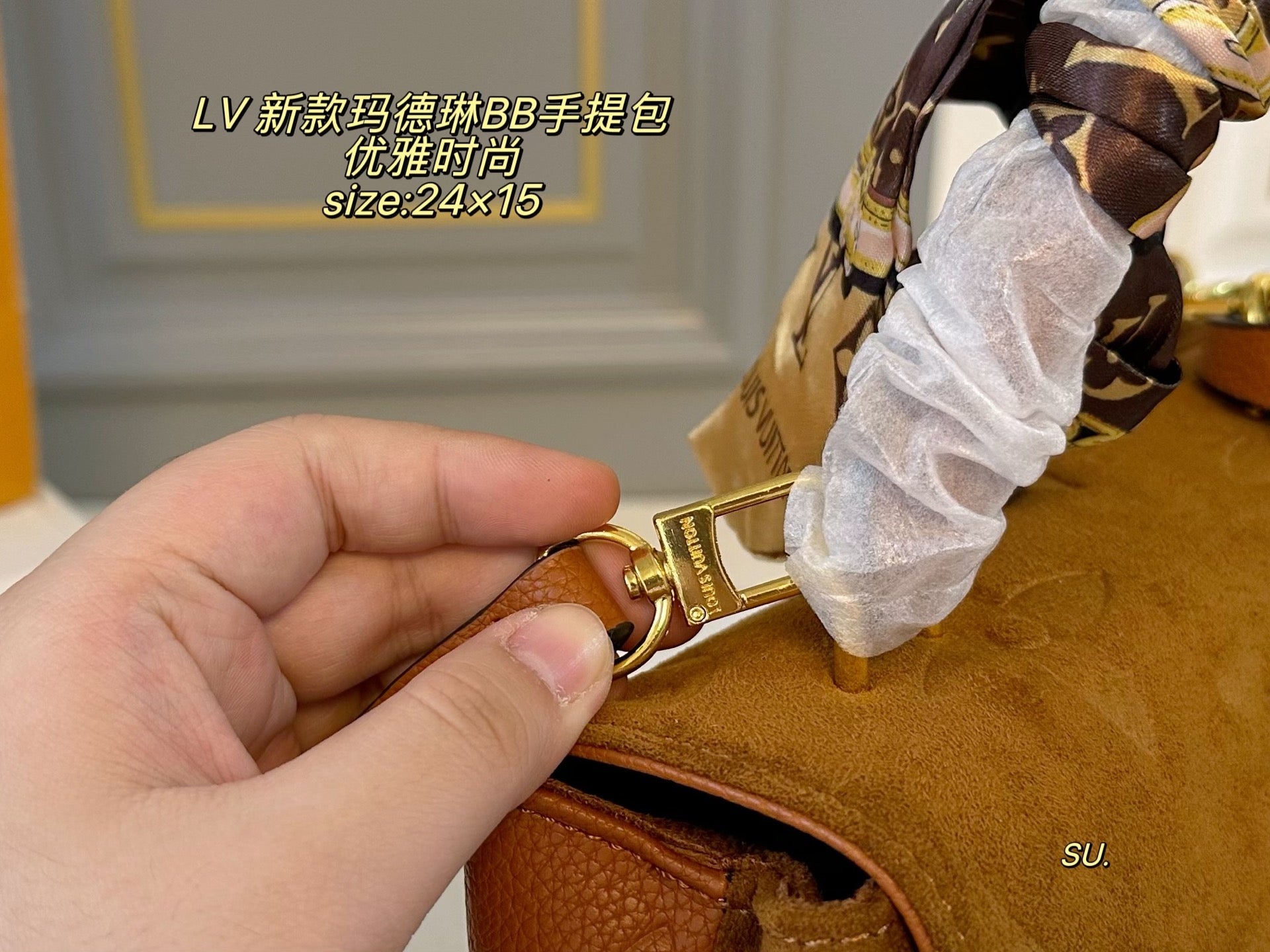Introducing the LV Louis Vuitton Madeleine BB Handbag, a perfect blend of luxury and functionality. Crafted from sumptuous embossed leather and suede, this handbag features the iconic S-shaped logo lock that embodies the brand's elegance.