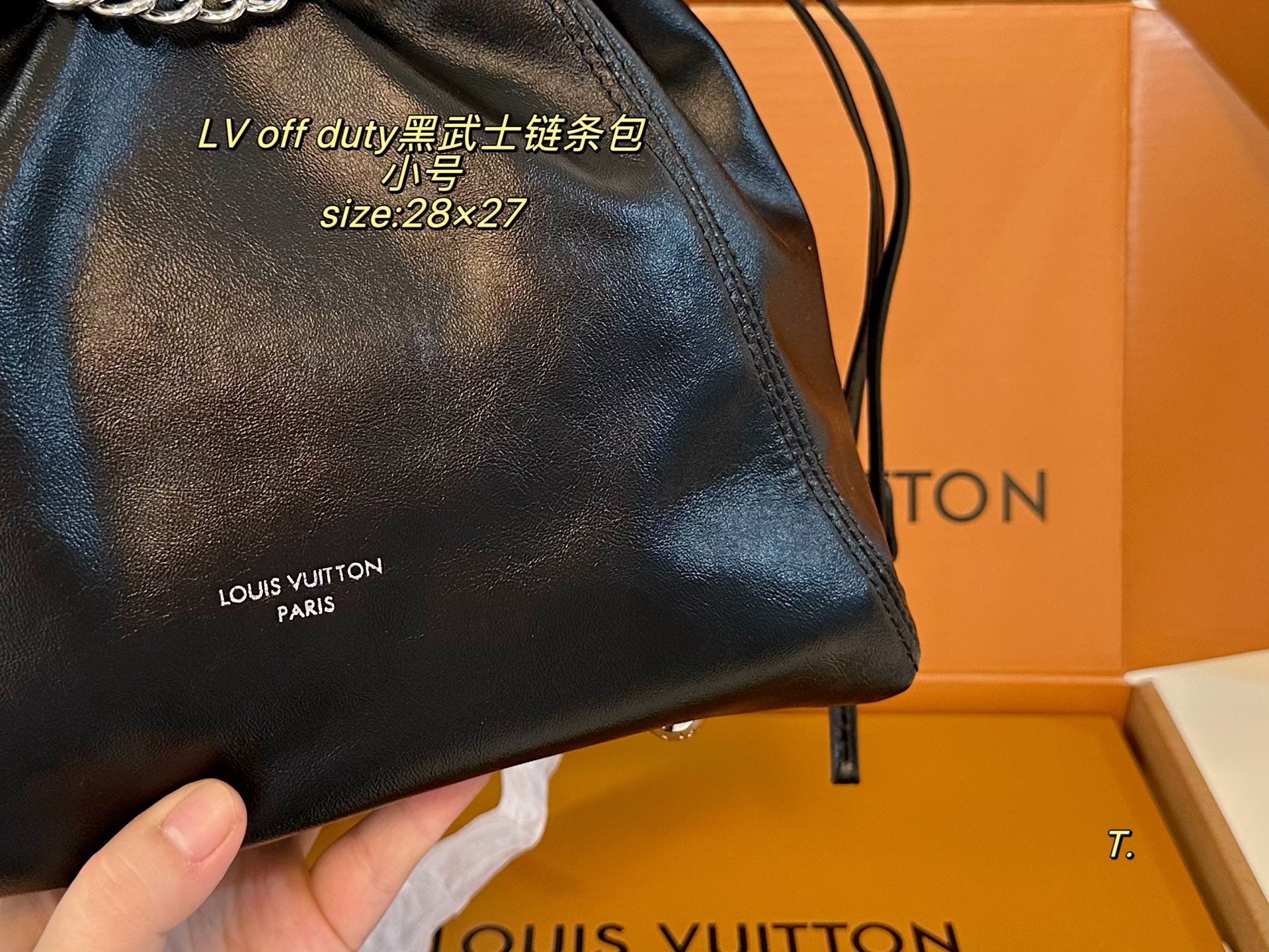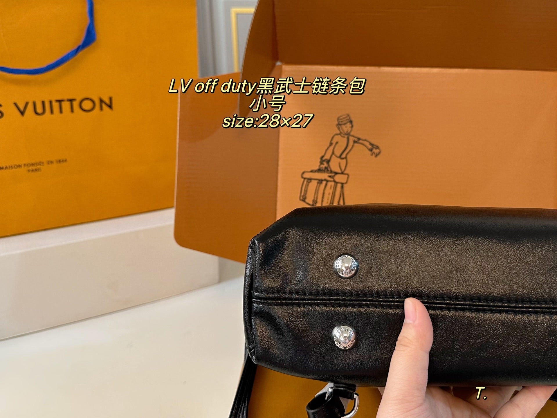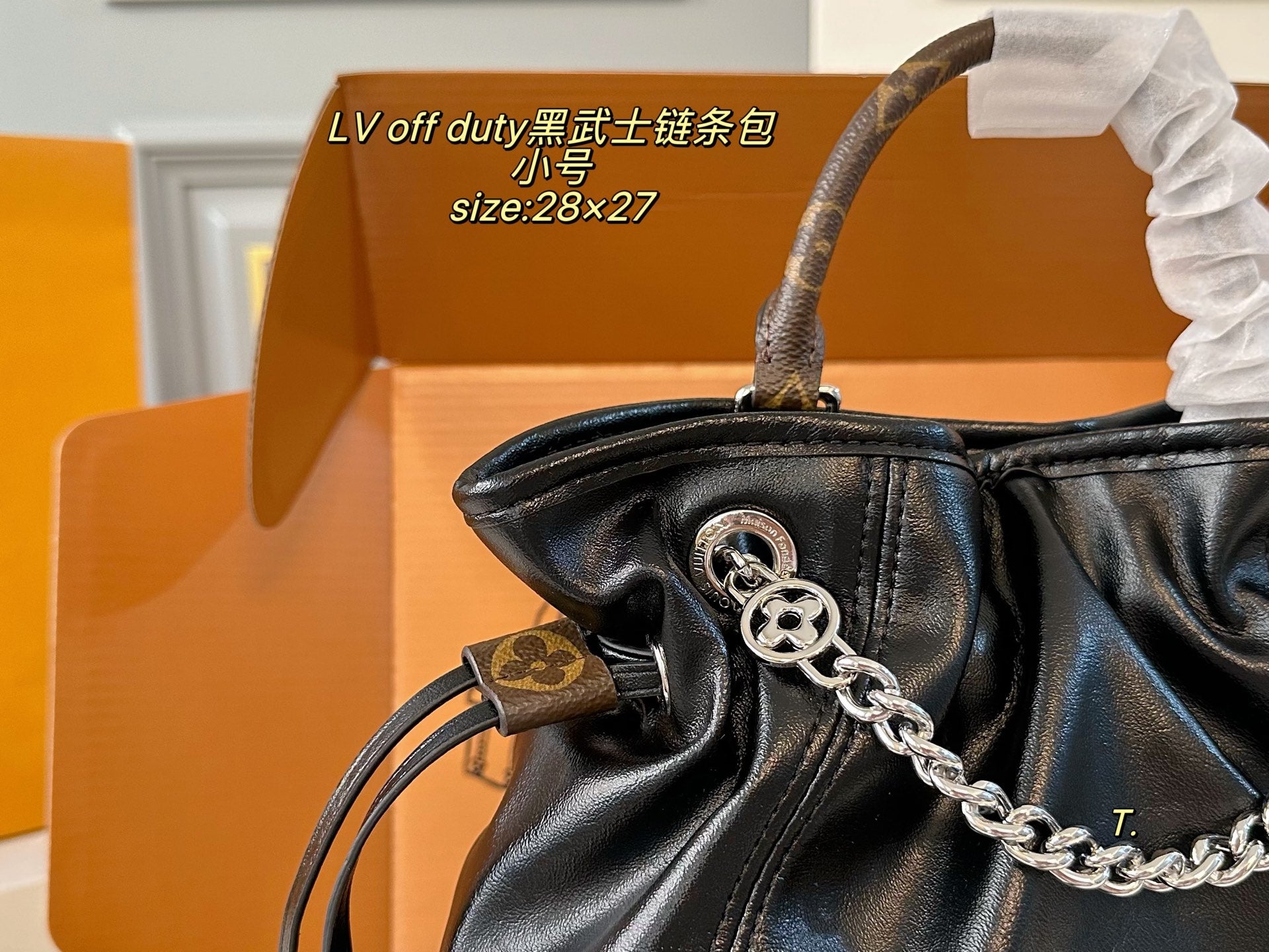 Introducing the LV Louis Vuitton OFF DUTY Black Warrior Chain Bag—a perfect blend of style and functionality. With a compact size of 28×27 cm, this stylish folding box design is the ultimate accessory for the modern individual.