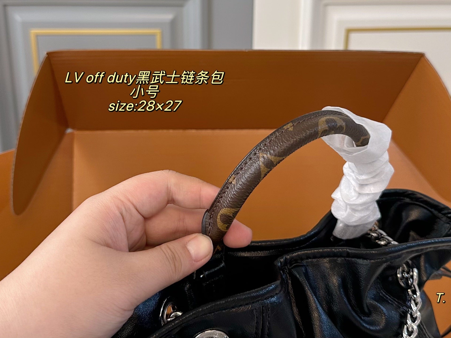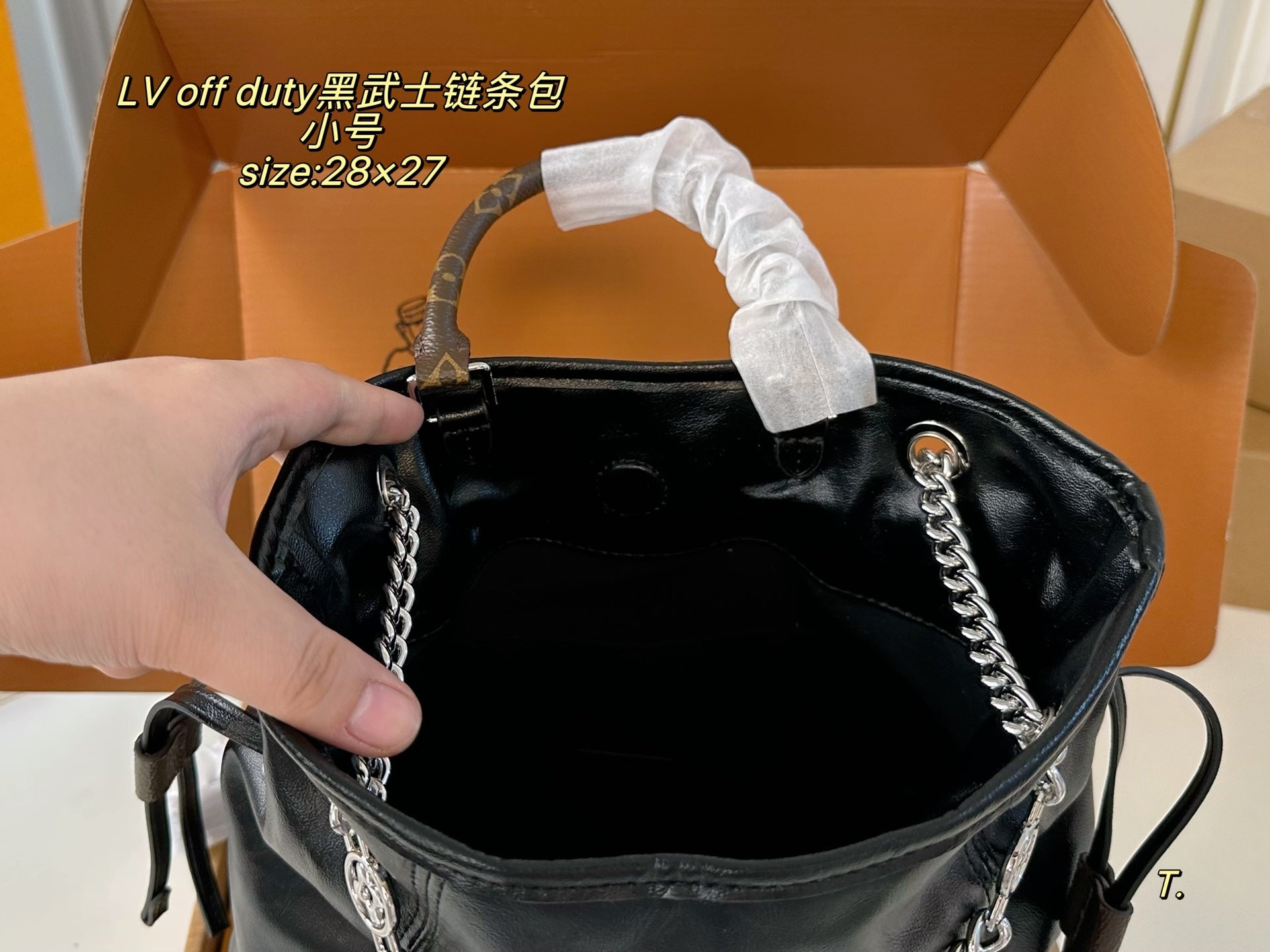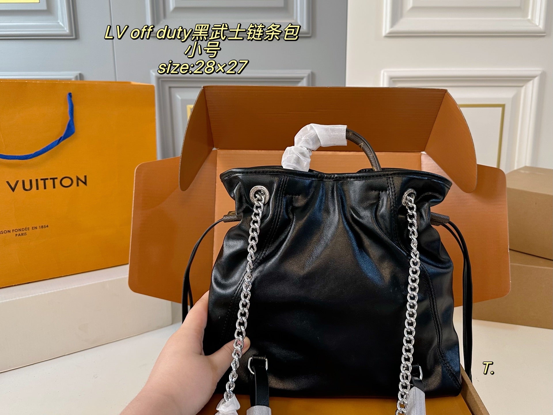 Introducing the LV Louis Vuitton OFF DUTY Black Warrior Chain Bag—a perfect blend of style and functionality. With a compact size of 28×27 cm, this stylish folding box design is the ultimate accessory for the modern individual.