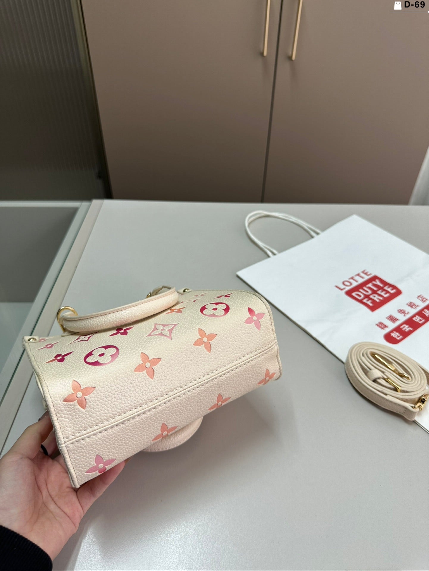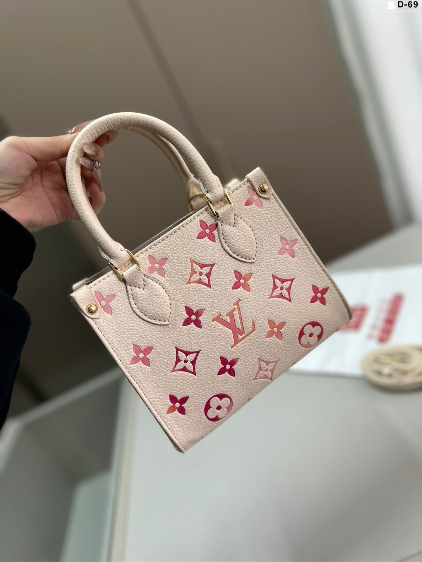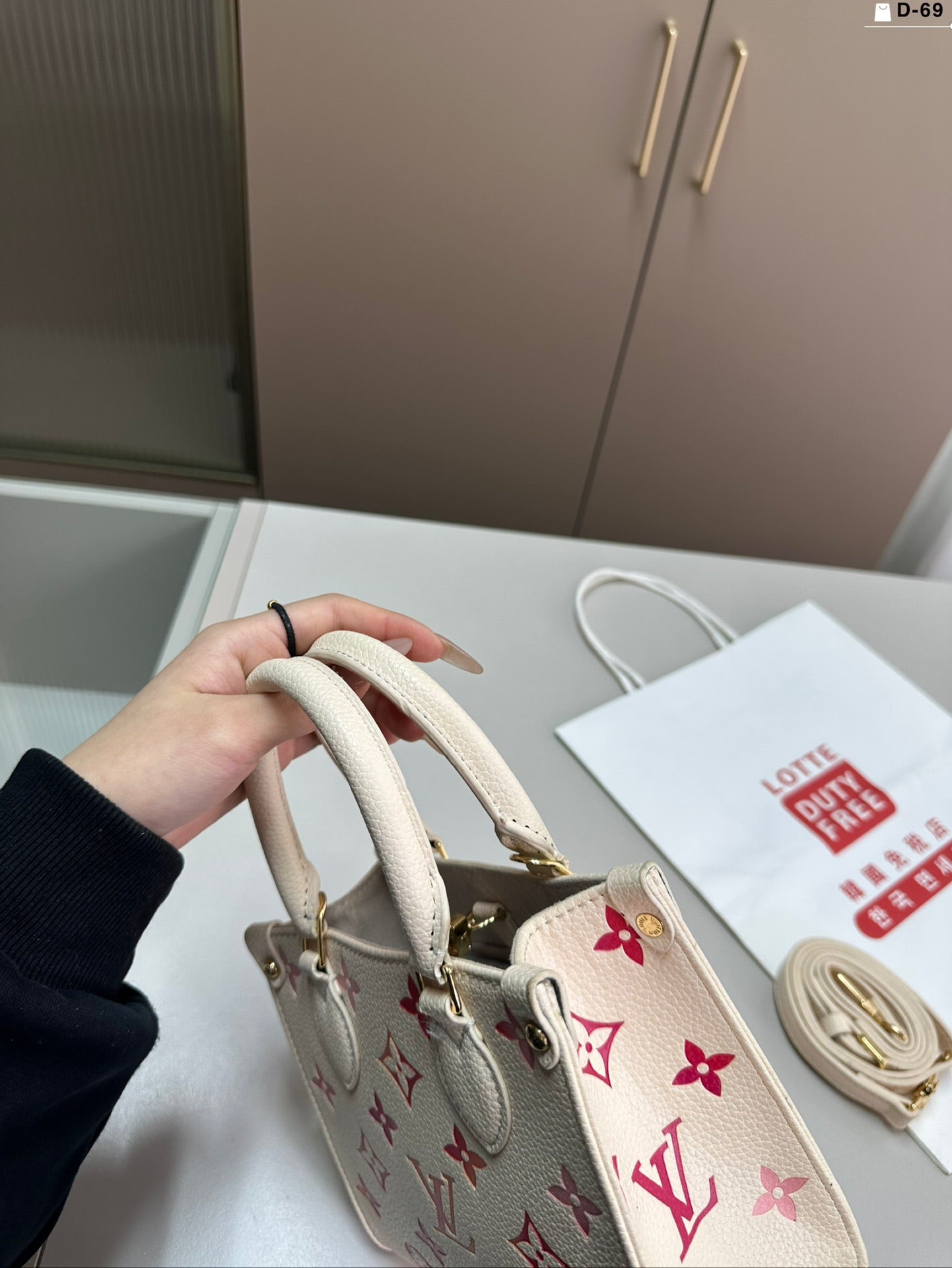 Elevate your style with the LV Mini Tote Bag, designed for both elegance and versatility. This chic tote is accompanied by a long shoulder strap, allowing for comfortable cross-body wear. With dimensions of 18.8 x 15 cm (D-69), it's the perfect size for your essentials while making a fashionable statement. You'll fall in love with its charm as soon as you wear it!