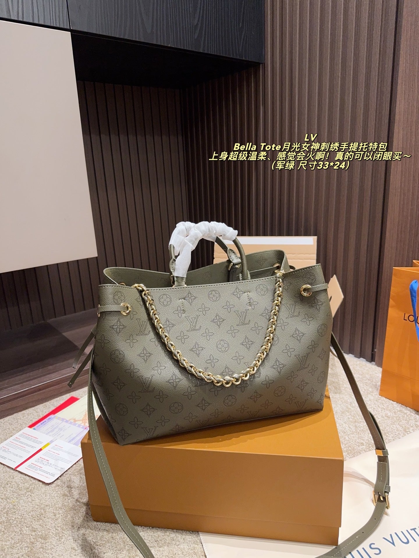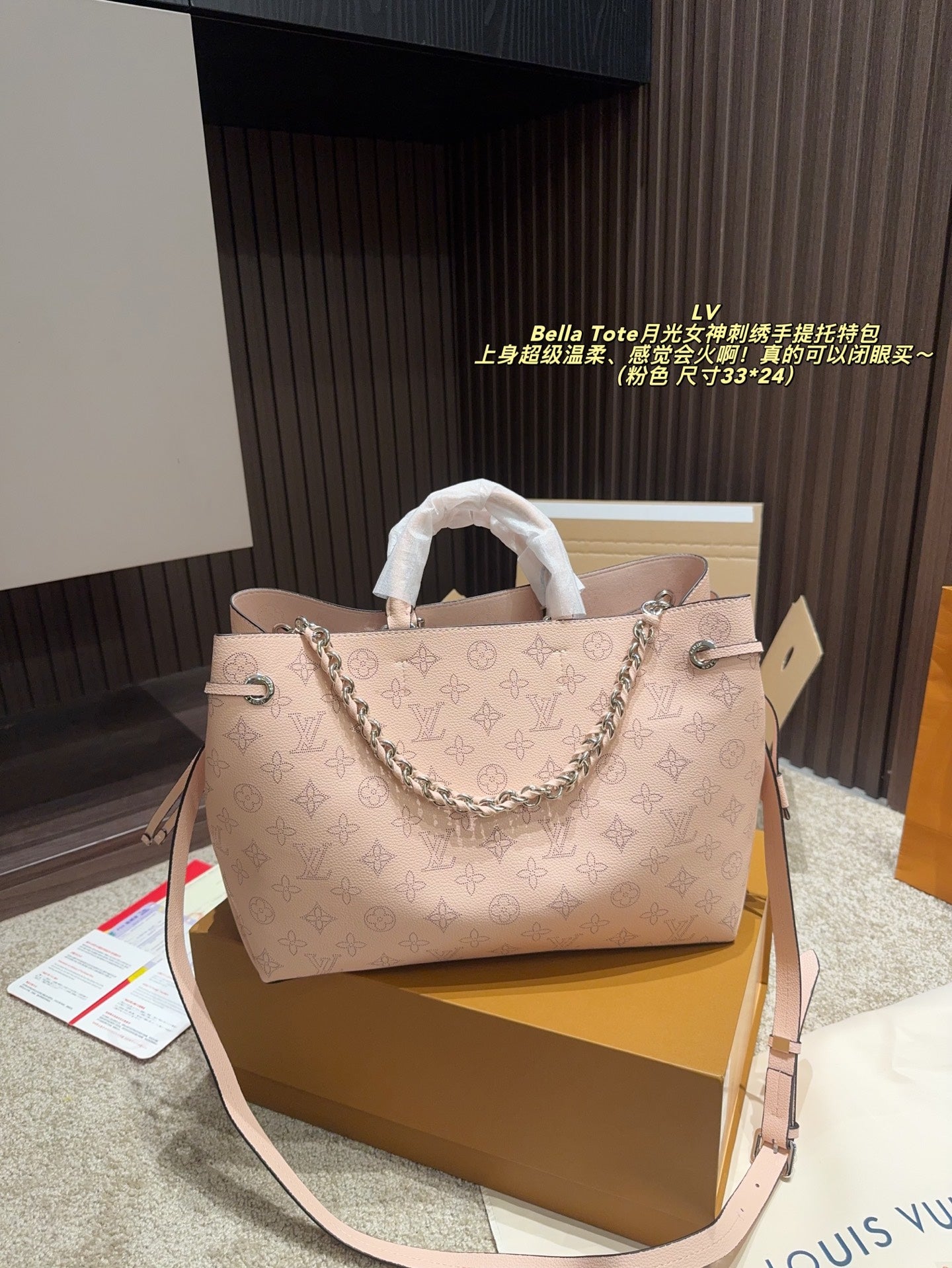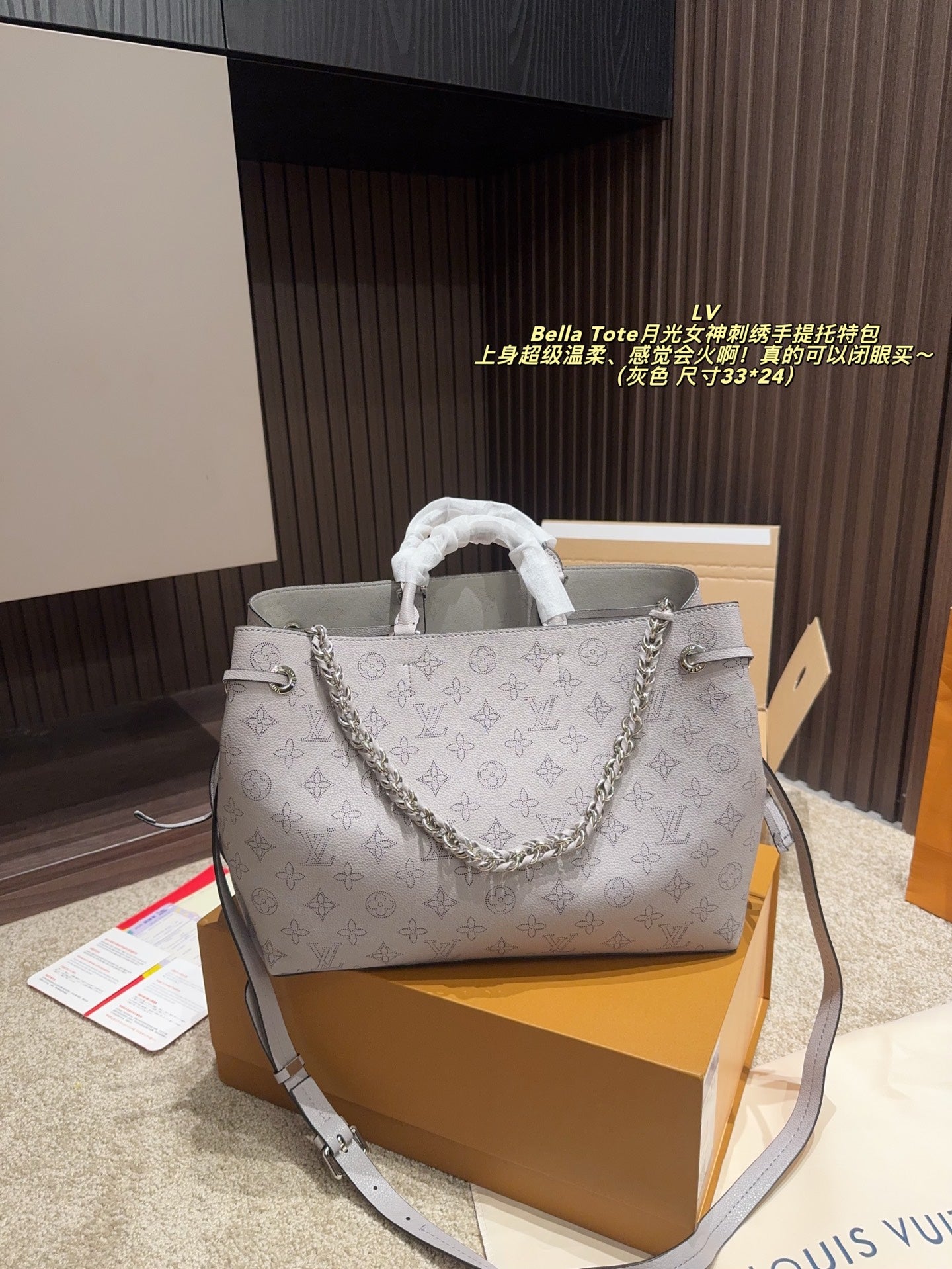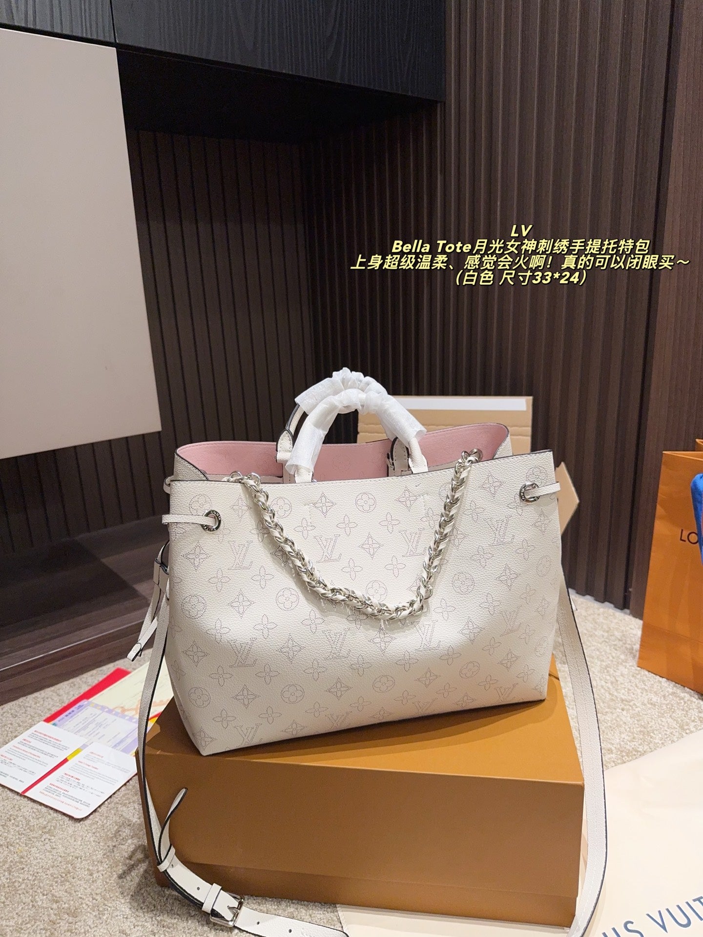 Introducing the LV Bella Tote in Moonlight Goddess, a stunning addition to your handbag collection. Designed with a versatile 33x24 cm size, this tote bag offers multiple carrying options—whether on your shoulder, across the body, or by hand. Crafted with luxurious Mahina Creme fabric, its gentle texture ensures both elegance and comfort. Elevate your style effortlessly with this exquisite embroidered tote. Perfect for any occasion, it’s a must-have accessory that combines fashion and functionality. Embrace sophistication with the LV Moonlight Goddess Bella Tote!