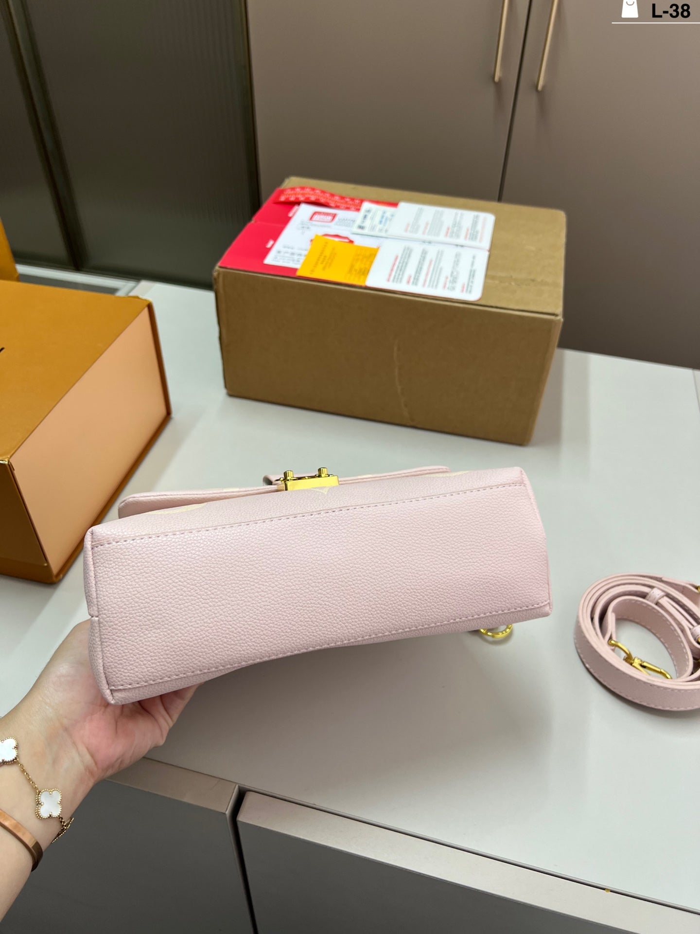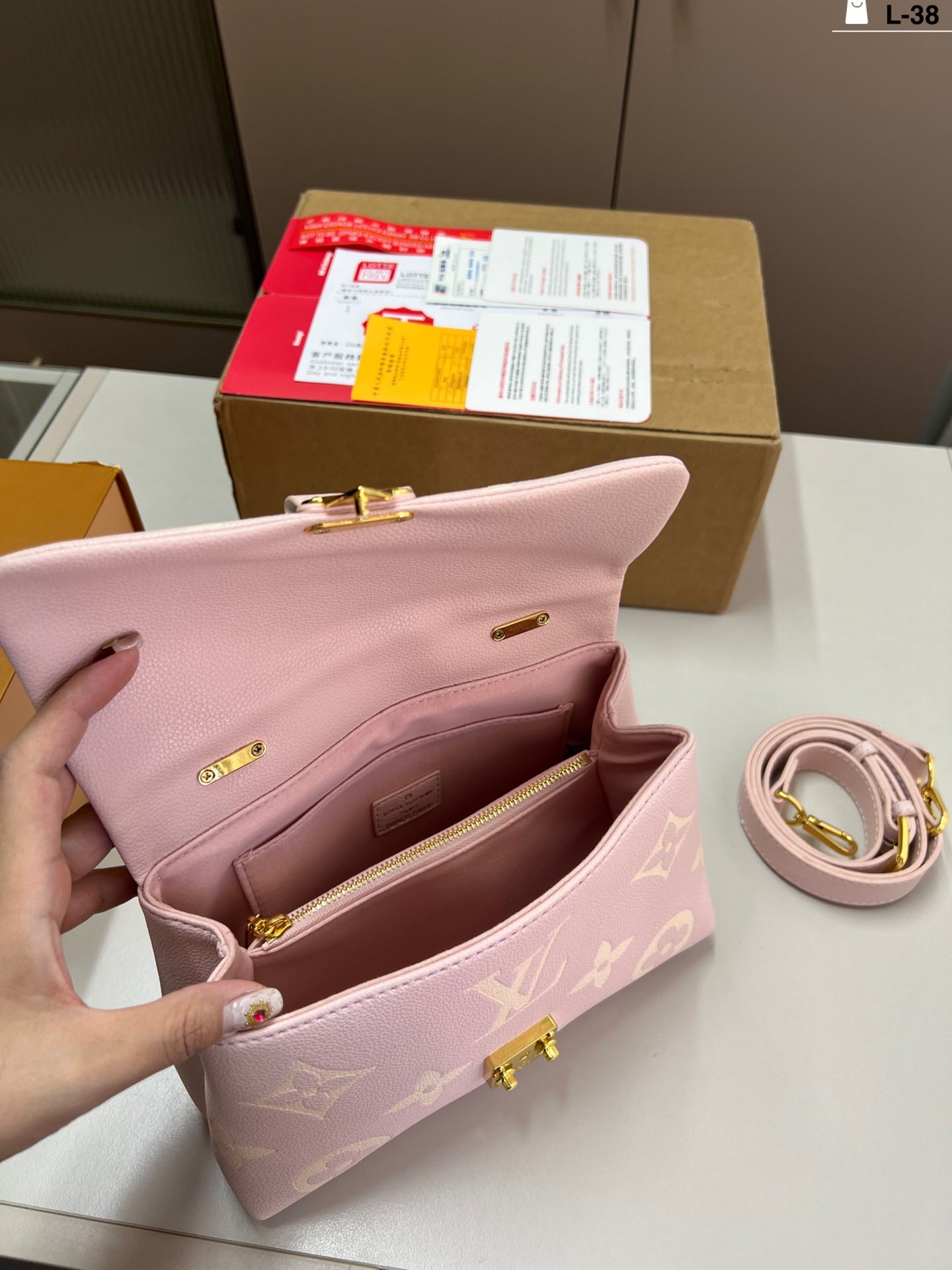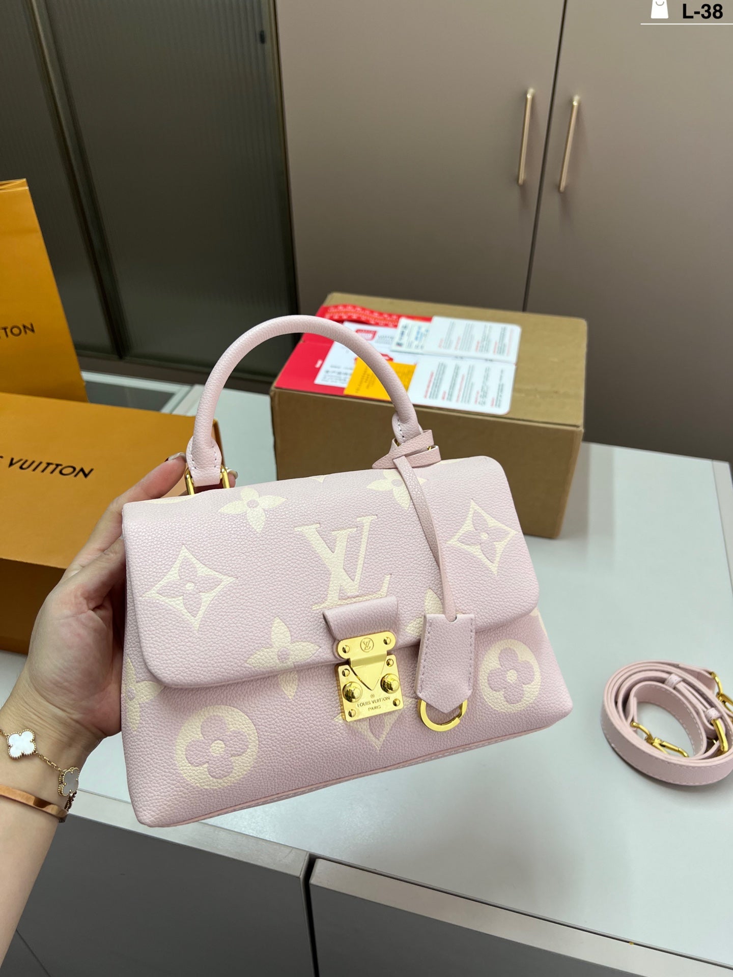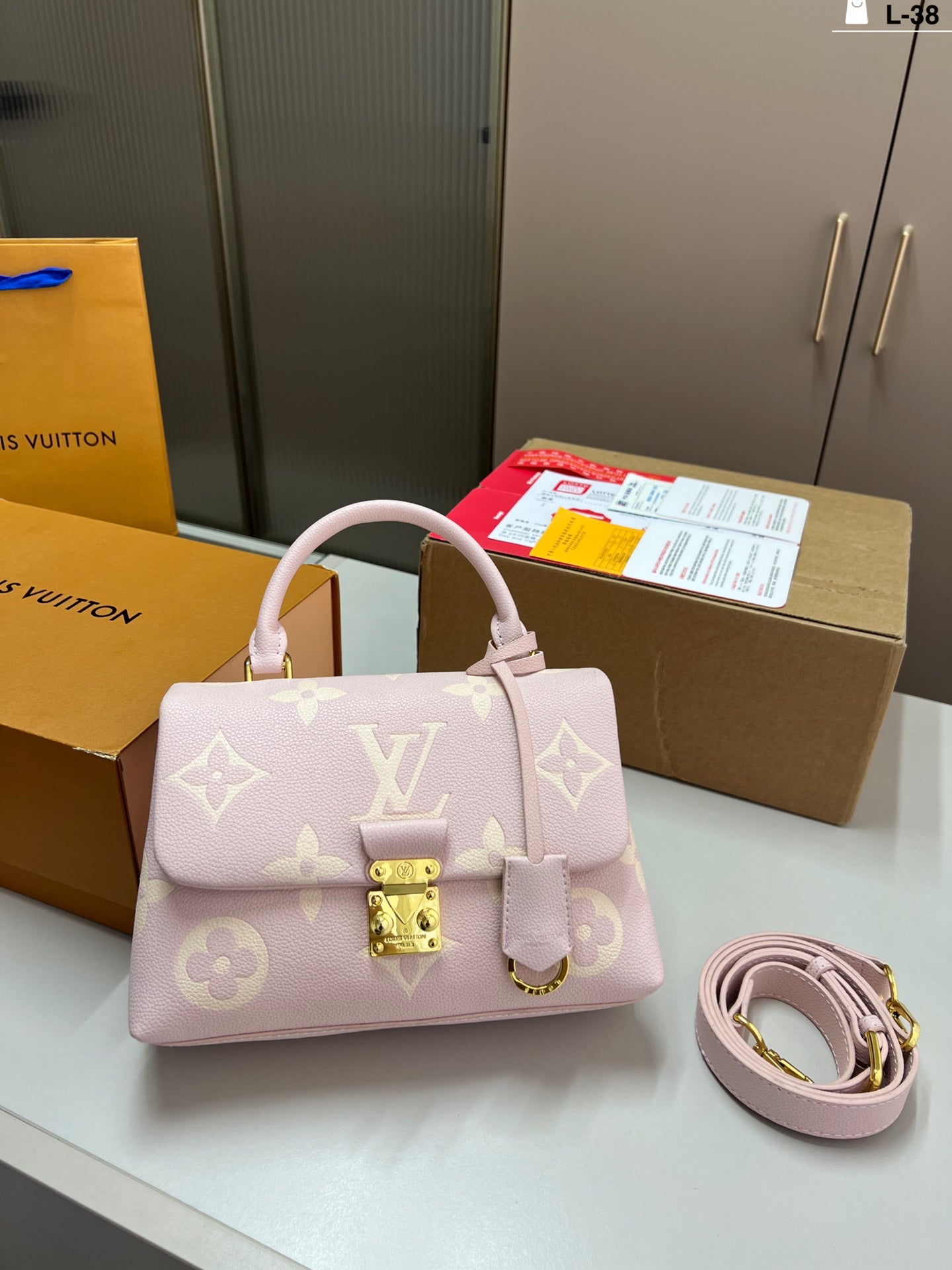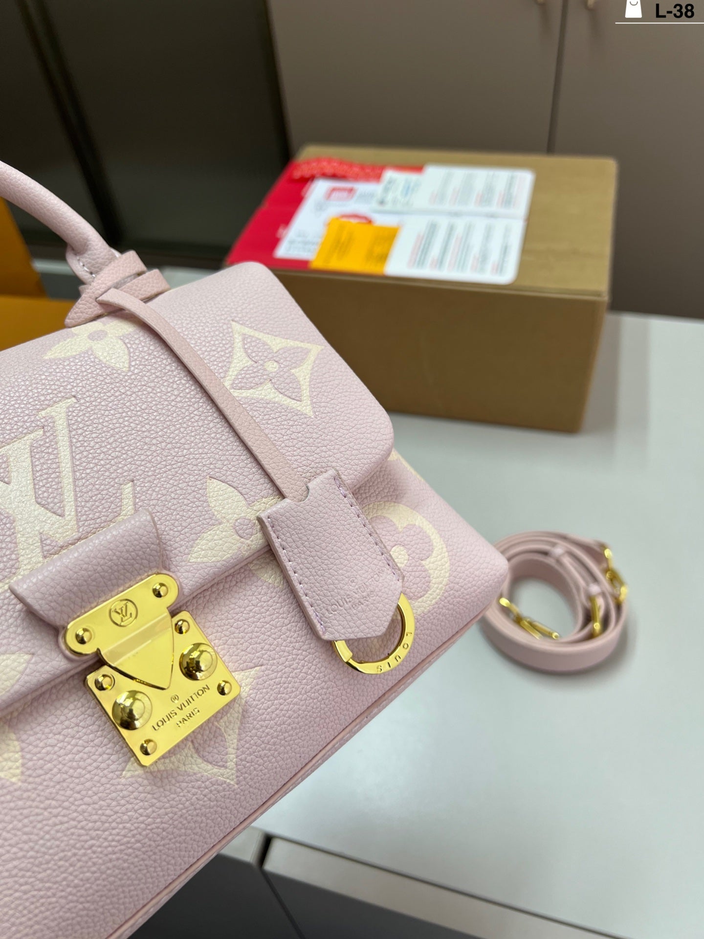 Introducing the LV New Color Madeleine Portable Messenger Chain Bag, designed for the modern fashionista. This elegant bag features a unique folding design, reminiscent of a classic airplane box, with dimensions of 24×15 cm. Perfect for on-the-go adventures, it effortlessly combines style and functionality. The luxurious chain strap adds a touch of sophistication, making it an ideal accessory for any occasion. Elevate your wardrobe with this chic and versatile bag, perfect for both casual and formal outings.