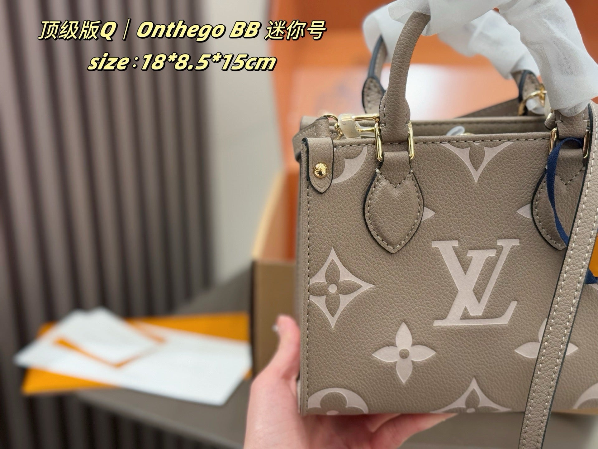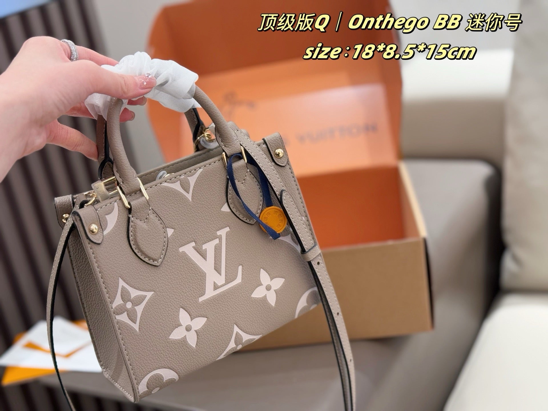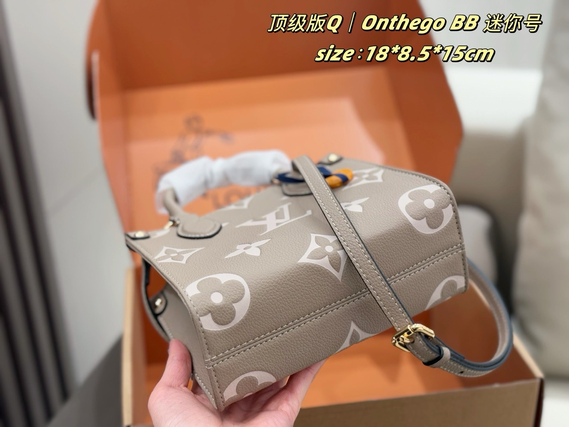 Crafted from high-quality materials, the bag comes in exquisite double box packaging, ensuring that it arrives in pristine condition. Enjoy the delightful scent that accompanies this luxurious piece. Elevate your style with the LV OnTheGo BB Bag – where elegance meets practicality.
