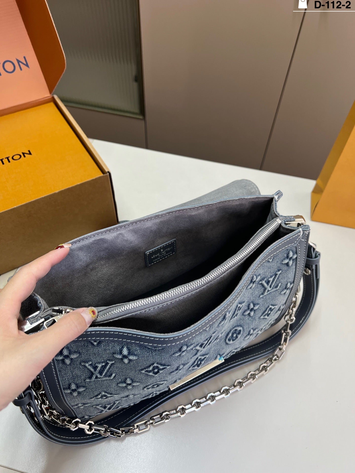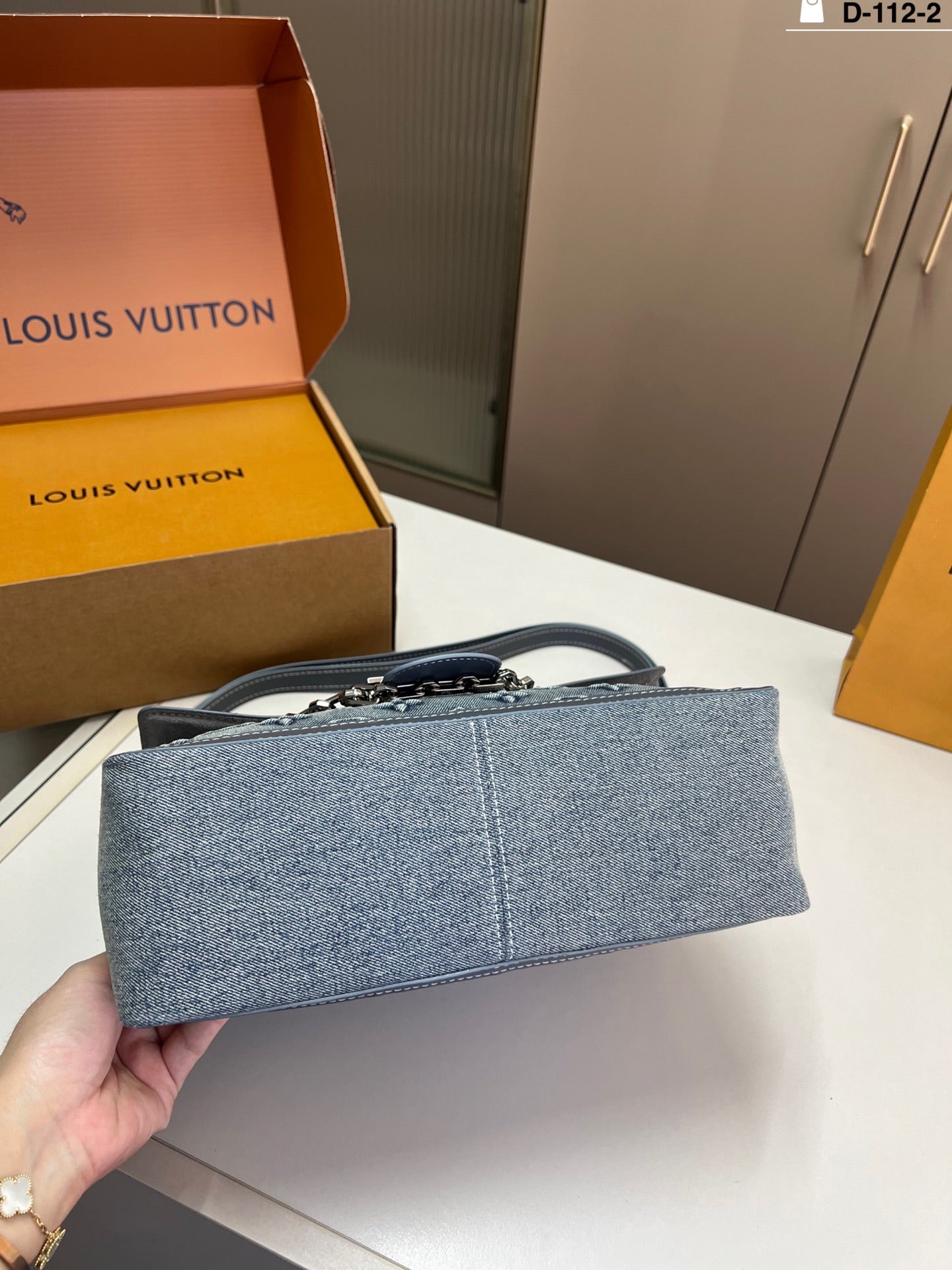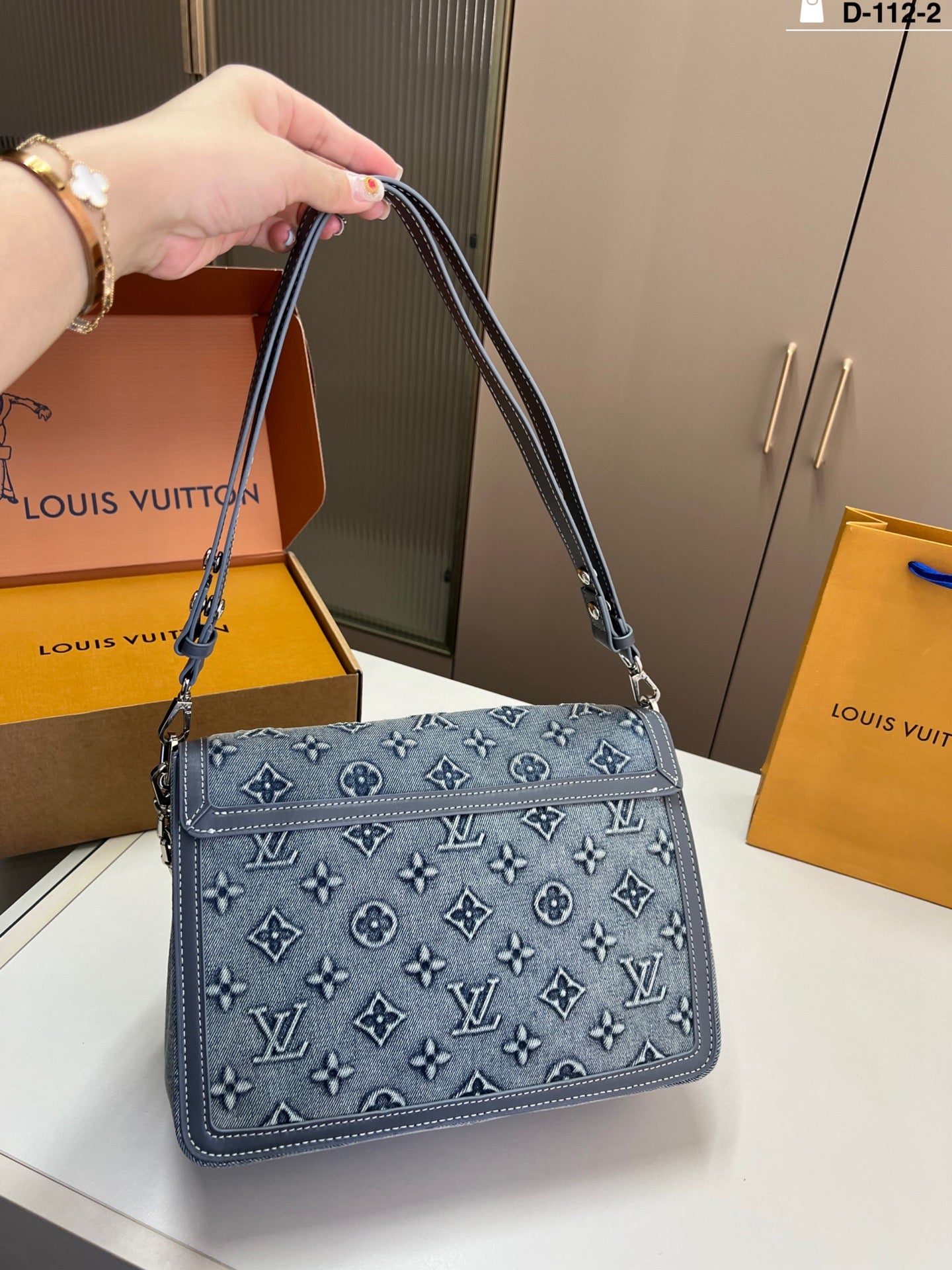 Introducing the LV Soft Dauphine Denim Shoulder Bag, a stunning fusion of retro aesthetics and high-end design. Crafted from textured denim with an embossed logo, this chic bag features a sophisticated black and gold color scheme that elevates any outfit. Its structured, square shape is not only stylish but also practical, making it perfect for everyday use. Measuring 30×21 cm, it’s designed for a comfortable underarm fit while providing ample space for your essentials. Embrace elegance and functionality with this statement accessory.