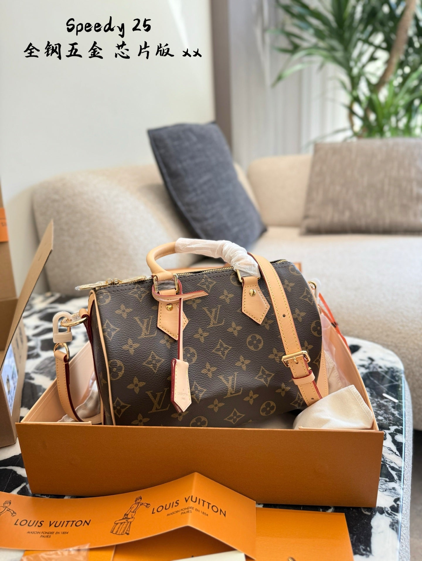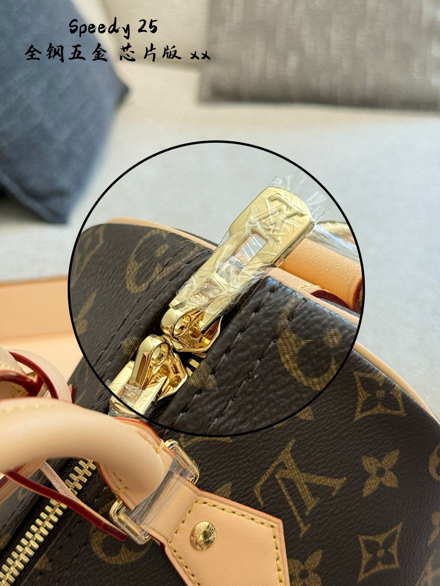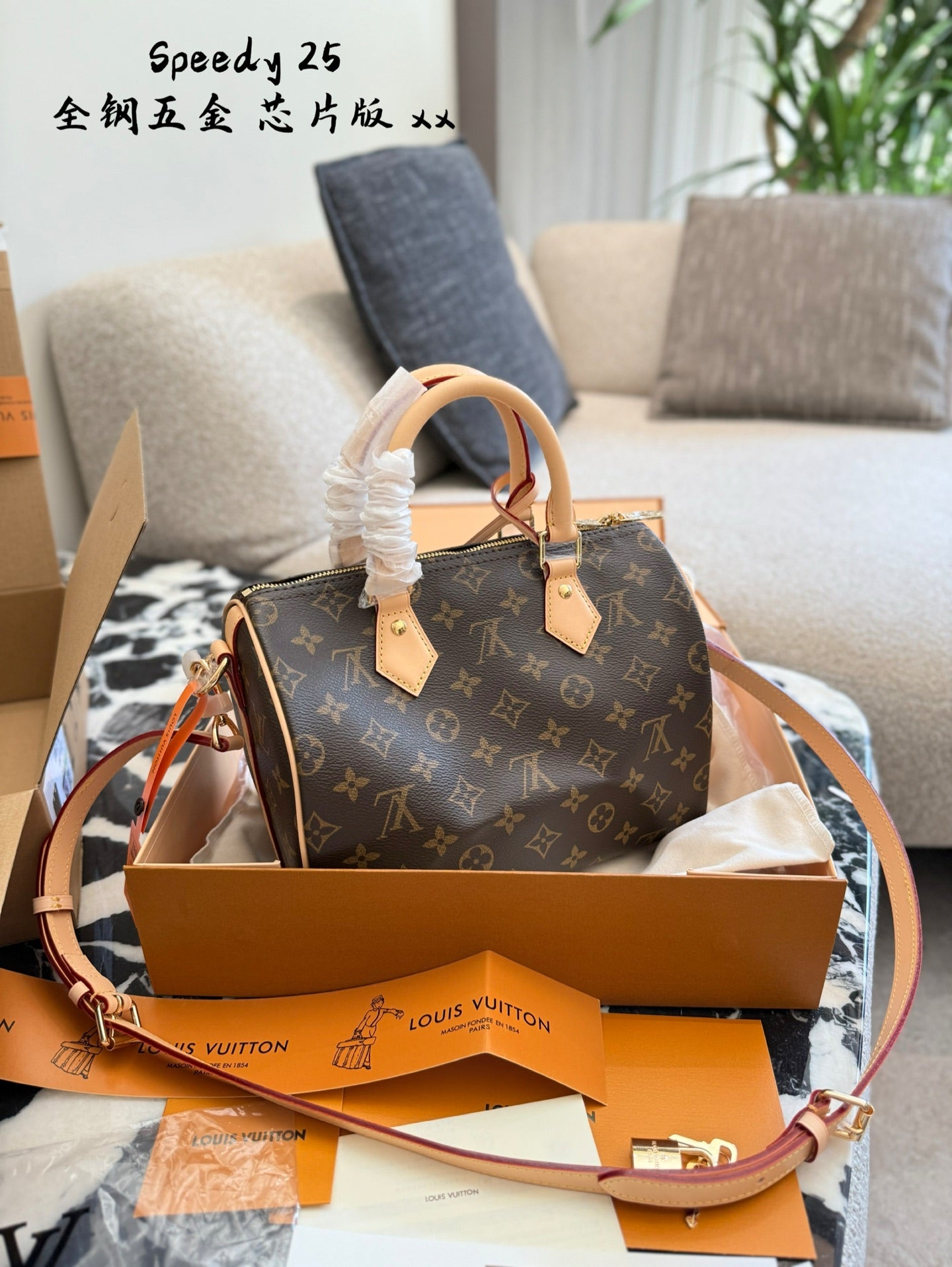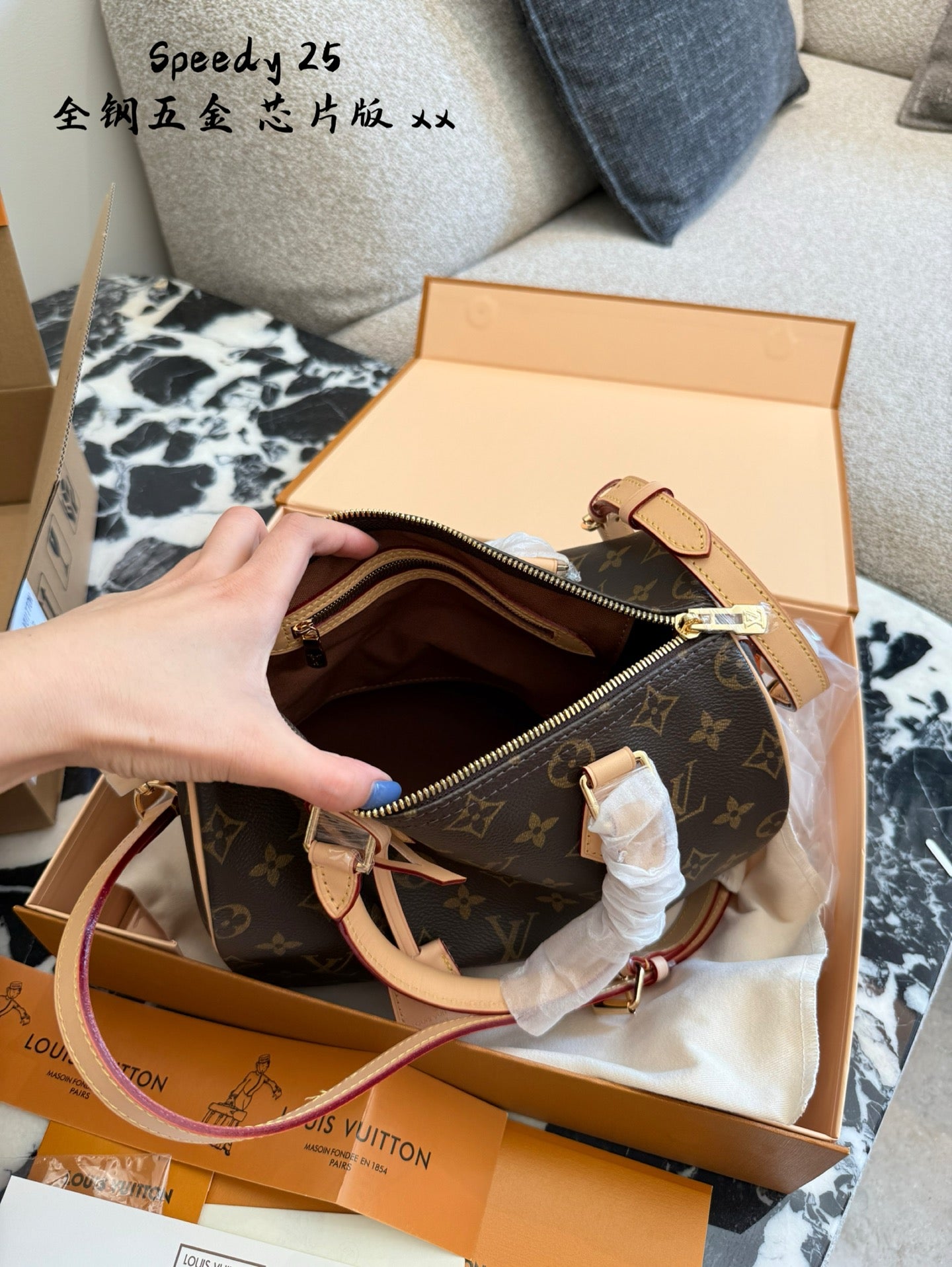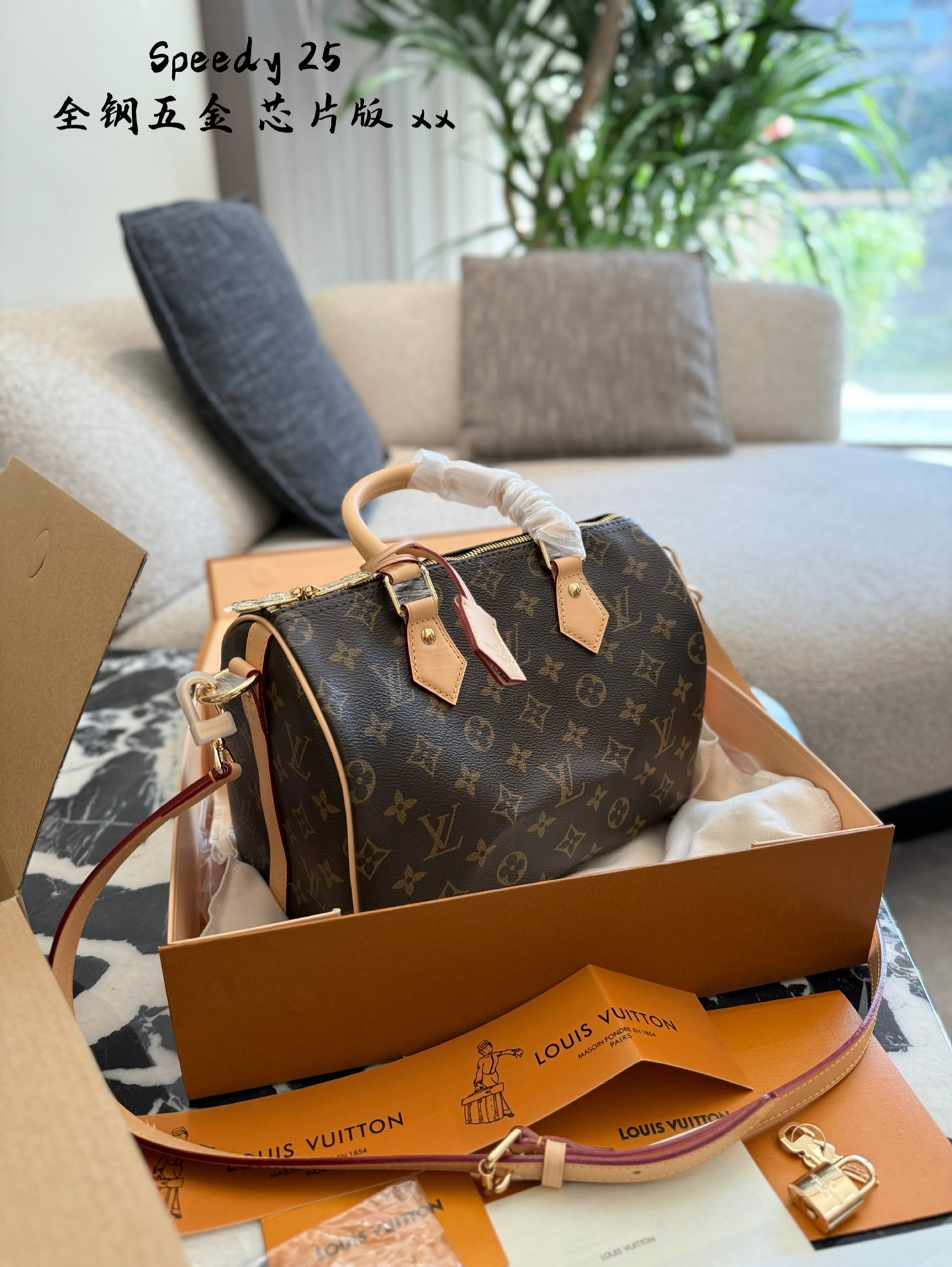 Elevate your style with the LV Speedy 25, an iconic handbag that seamlessly combines elegance and practicality. Crafted from top-quality original steel hardware, this bag features a timeless monogram pattern that transcends fashion trends, making it a versatile addition to any wardrobe.