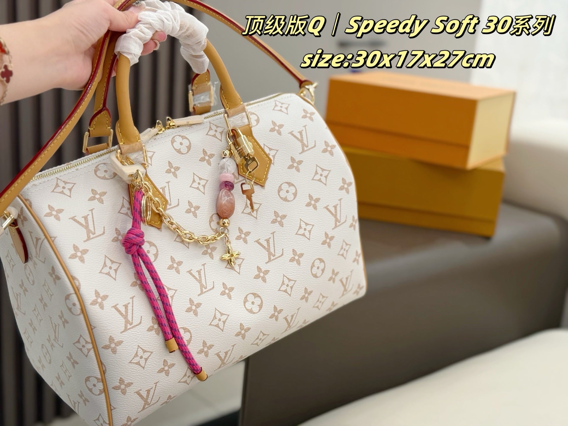 The removable pendant decoration allows for customization, transforming the bag into a timeless classic for both men and women. Elevate your fashion game with the LV Speedy Soft 30, the ultimate accessory for any occasion.
