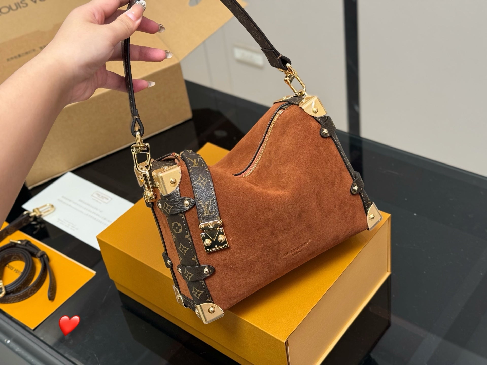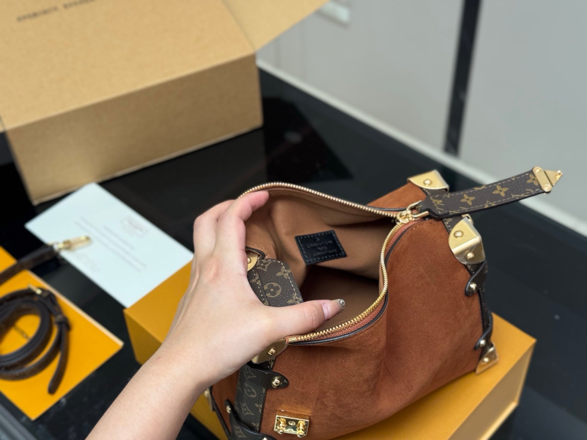 Introducing the LV Wang Zha Catwalk Soft Box S - the ultimate accessory for fashion enthusiasts. Measuring 23cm x 16cm, this super trendy folding bag combines elegance and practicality. With its innovative design, it allows for effortless storage and transport. Perfect for any occasion, this stylish bag captures the essence of modern fashion. Elevate your style game with the latest must-have from Gu Ailing's collection. Shop now and experience the perfect blend of sophistication and functionality!