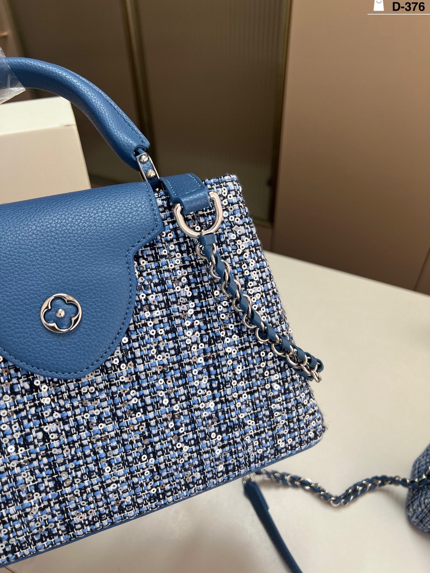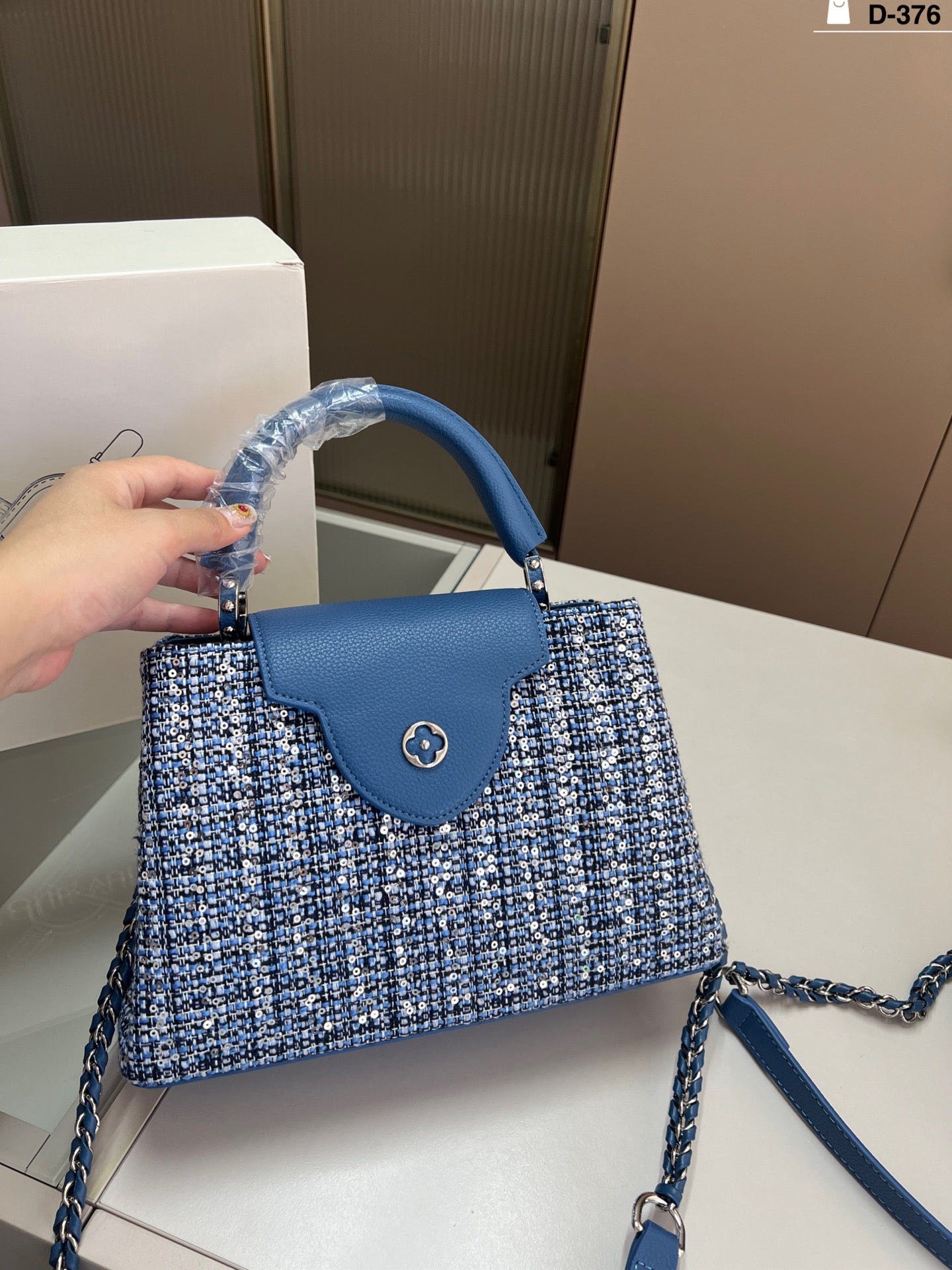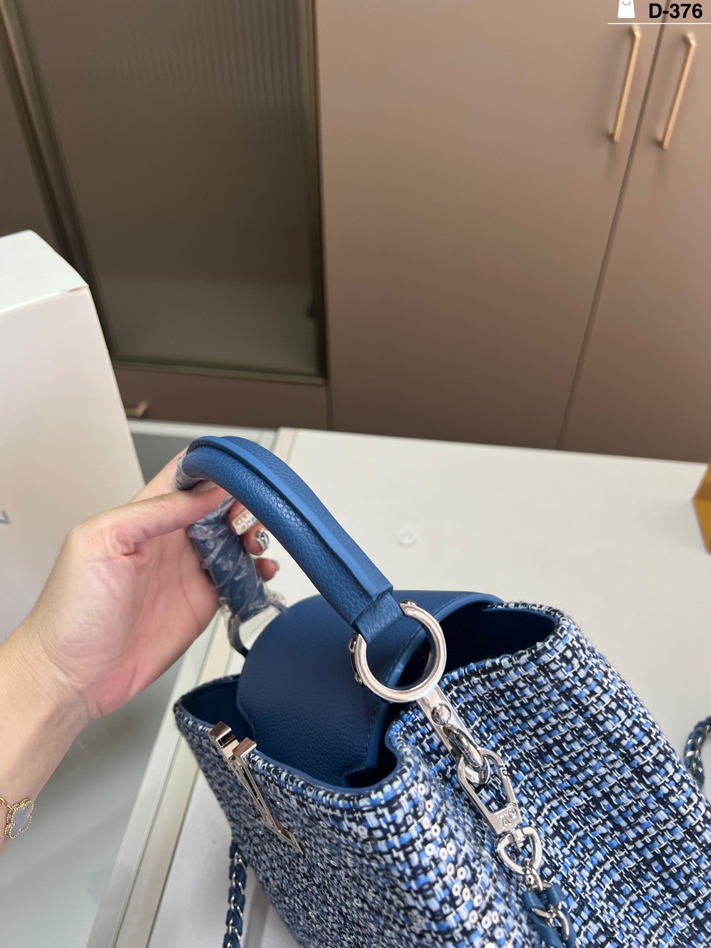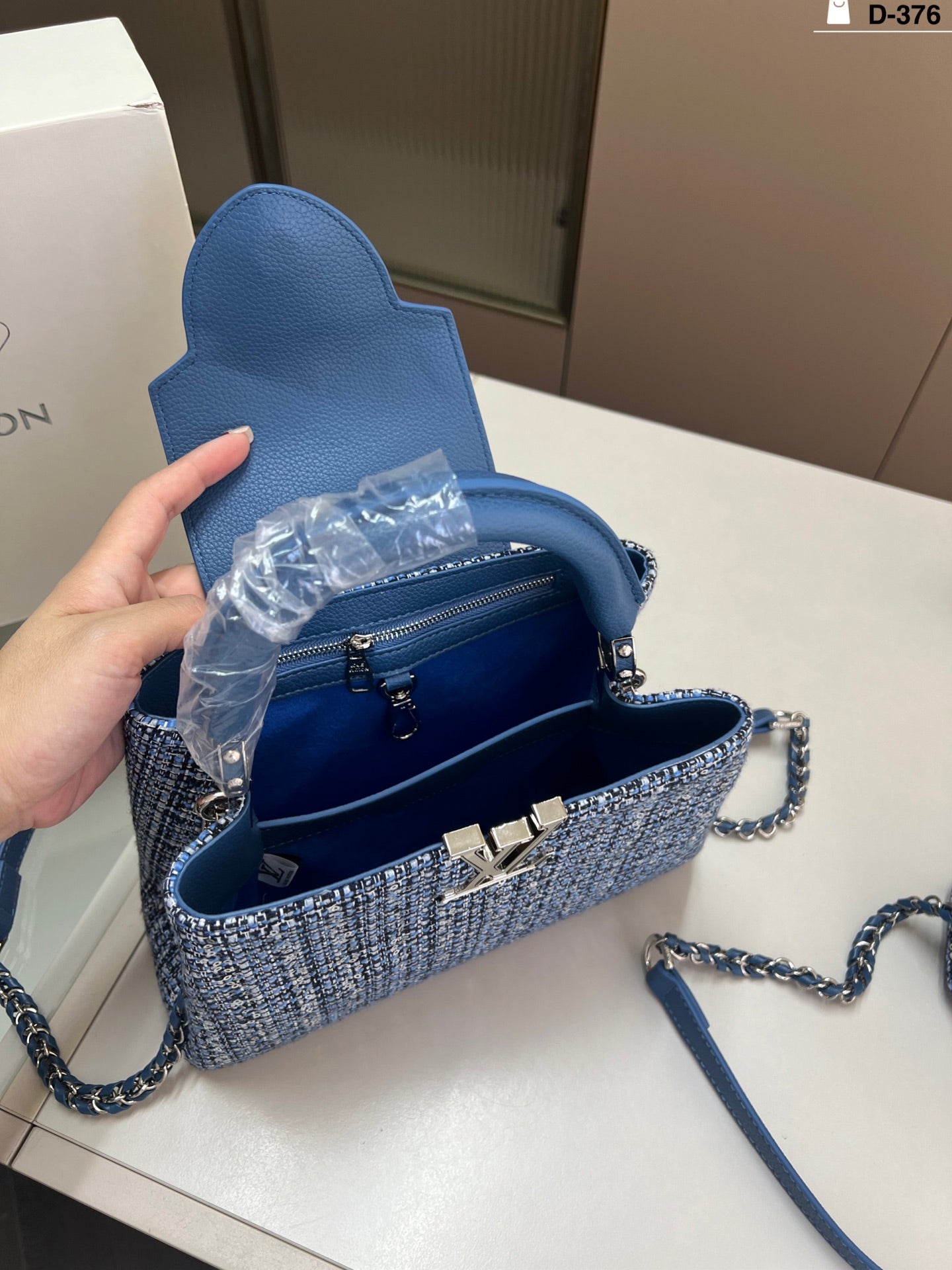 Introducing the exquisite LV x Takashi Murakami Capucines MM, part of the exclusive woolen series. This elegant one-shoulder crossbody handbag blends luxury and artistry seamlessly. Crafted from high-quality wool, it features a stylish chain for added sophistication. With dimensions of 20×14 cm (folded box) and 27×18 cm (full size), this handbag is perfect for any occasion. Elevate your style with this statement piece that embodies capital elegance and a modern flair.