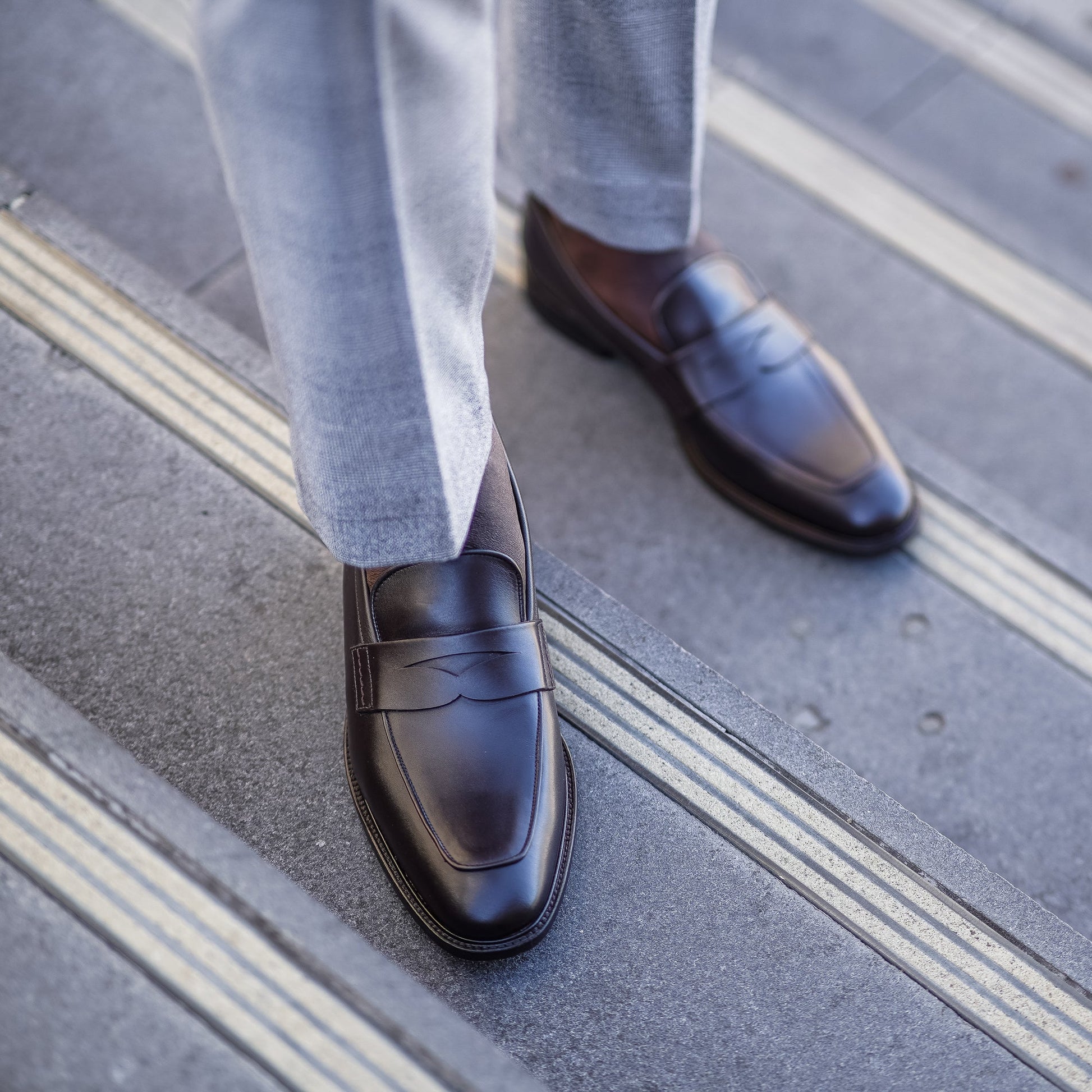 These brown penny loafers are a smart staple in any man’s wardrobe. Pair them with a slim fit suit or blazer, or dress them down with jeans.