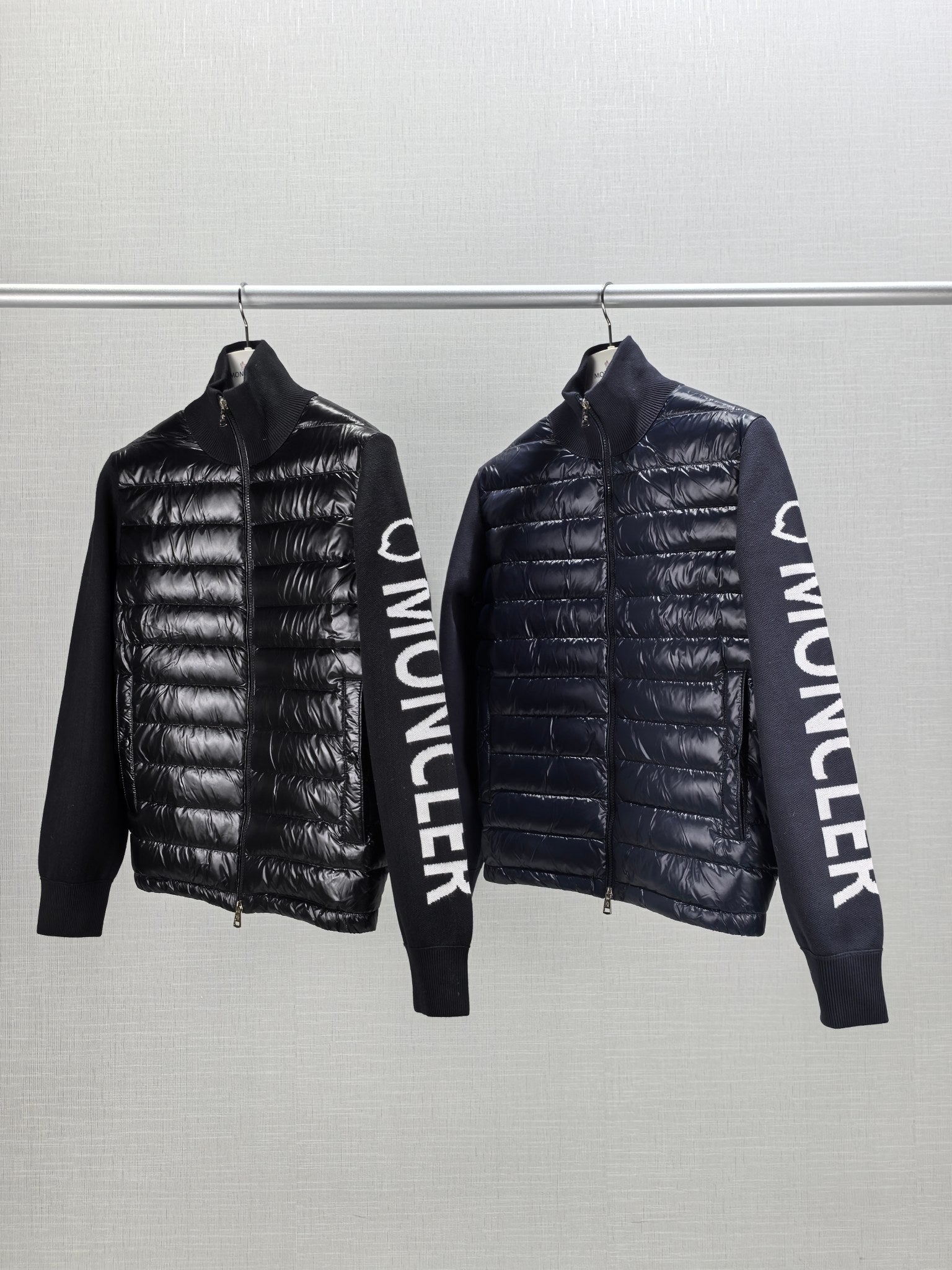 Men’s Moncler Logo Down Jacket – Pilot Collar, Navy Blue, Sizes M-3XL