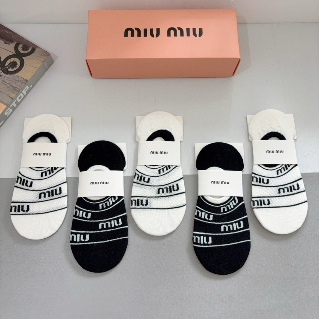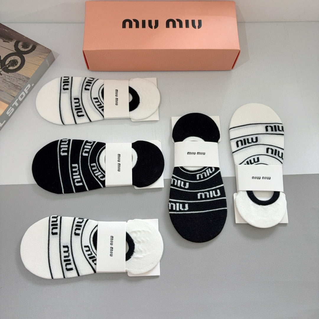 Miu Miu Bamboo Cotton Short Boat Socks - 5 Pairs in a Box