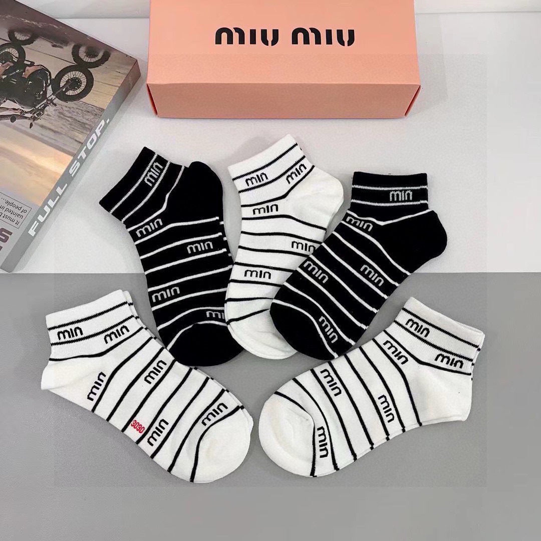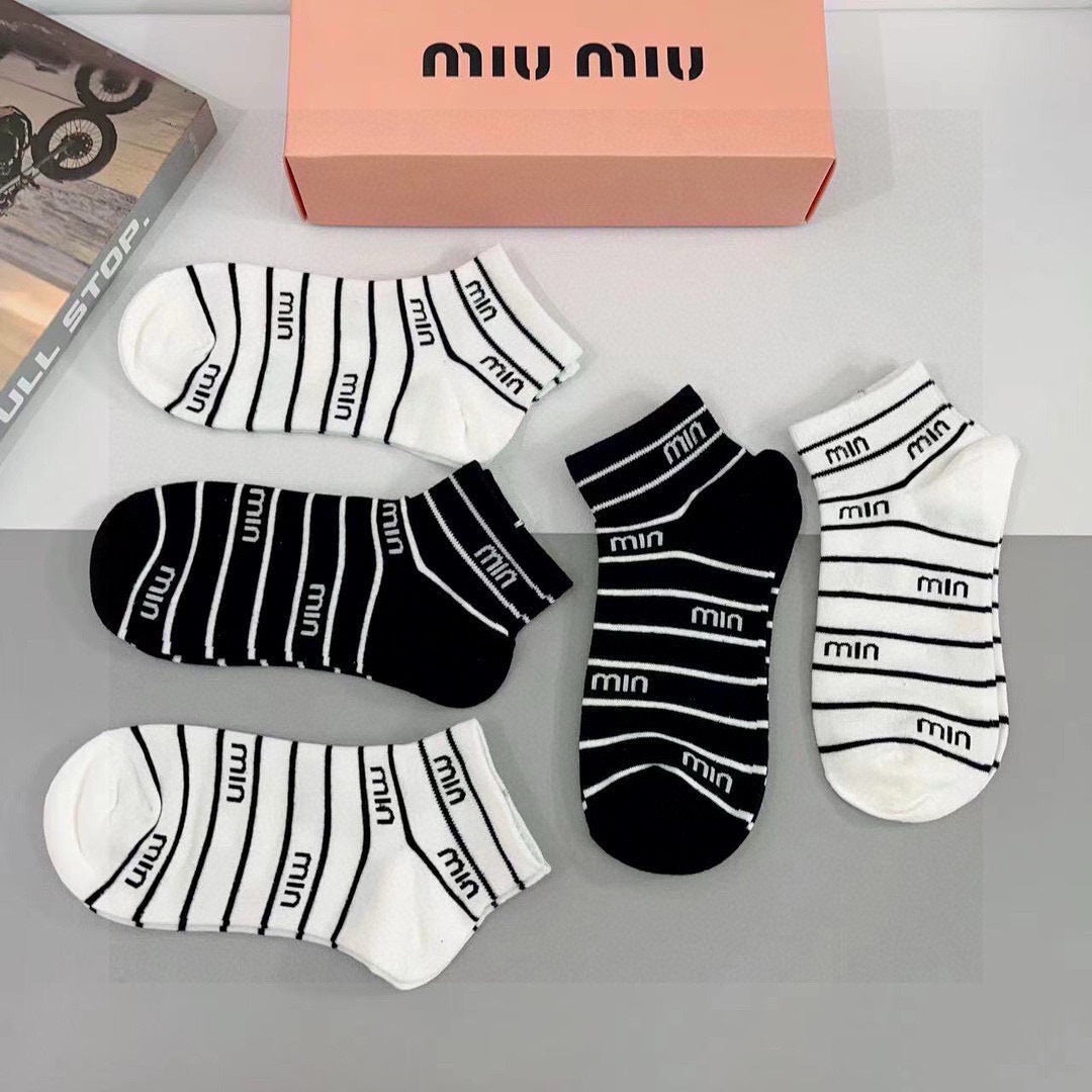 Elevate your streetwear game with our premium Miu Miu Mid-Calf Socks, specially curated for fashion enthusiasts. Each box includes five pairs of stylish socks engineered for comfort and breathability. Crafted from high-quality pure cotton, these socks are lightweight and soft, making them perfect for year-round wear. Endorsed by top Instagram influencers, these socks are a staple in European and American fashion scenes. Don’t miss out on this essential accessory that combines luxury and practicality!