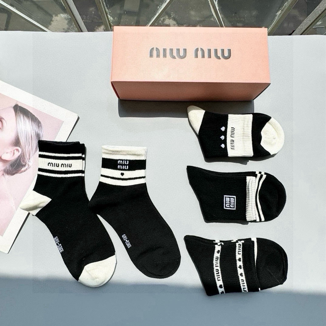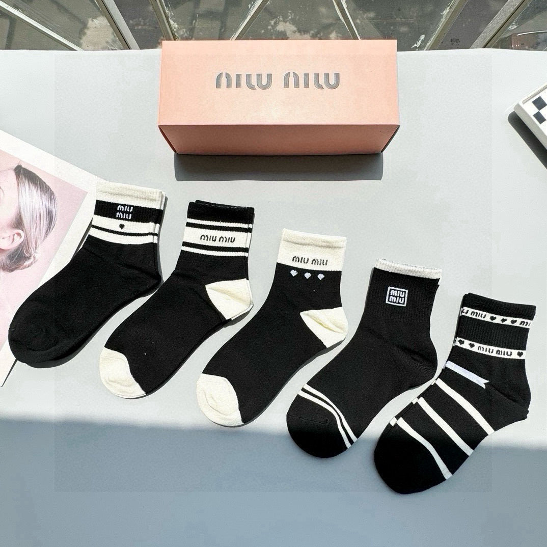 Elevate your streetwear game with our Miu Miu Celebrity-Style Cotton Mid-Tube Socks. This chic set includes five pairs, elegantly packaged for a perfect gift or personal treat. Crafted from premium pure cotton, these socks are lightweight, soft, and breathable, making them ideal for year-round wear. Endorsed by top influencers and beloved for their trendsetting design, these mid-tube socks are a must-have addition to your wardrobe. Embrace comfort and style with Miu Miu's latest offering!
