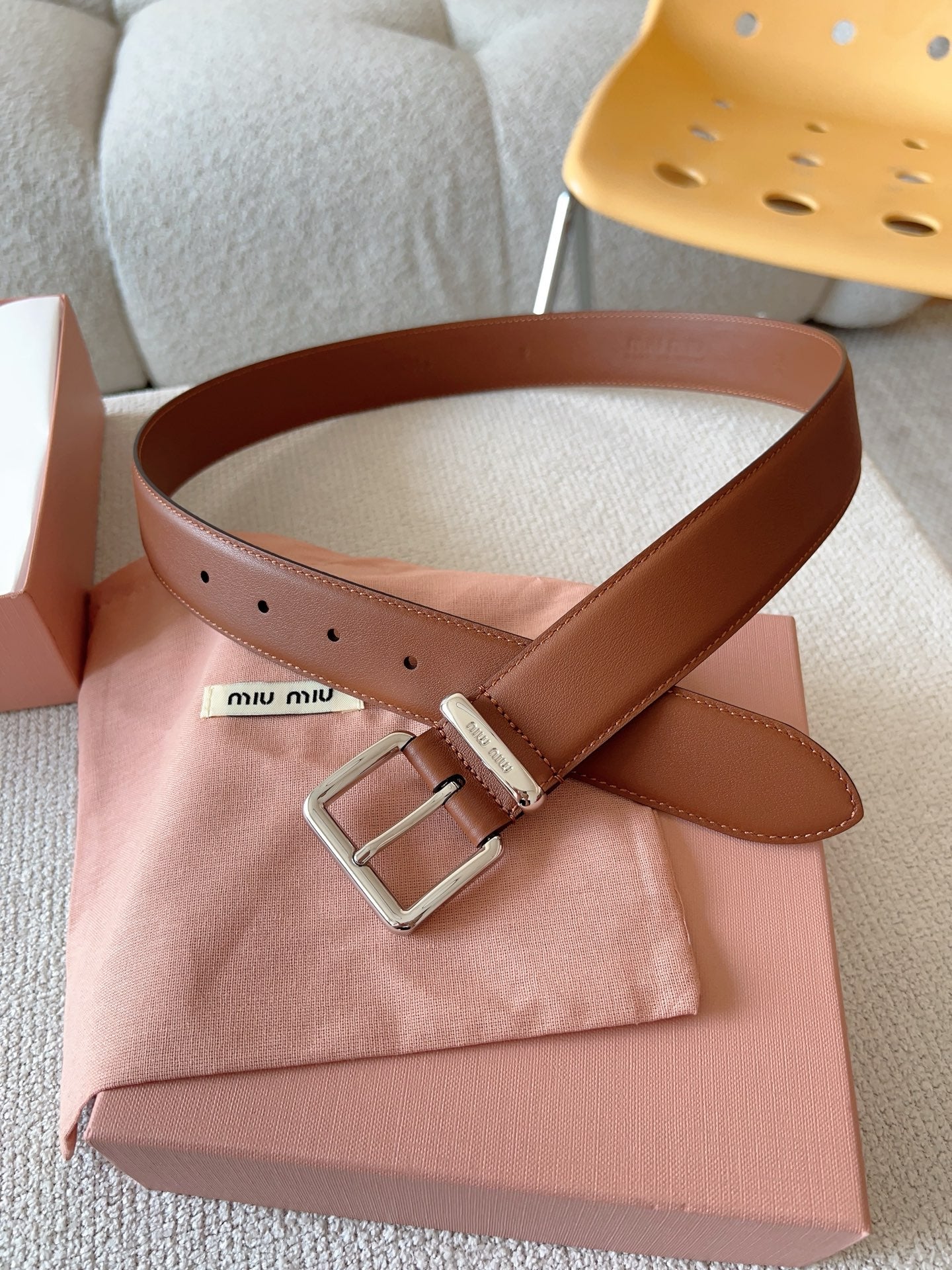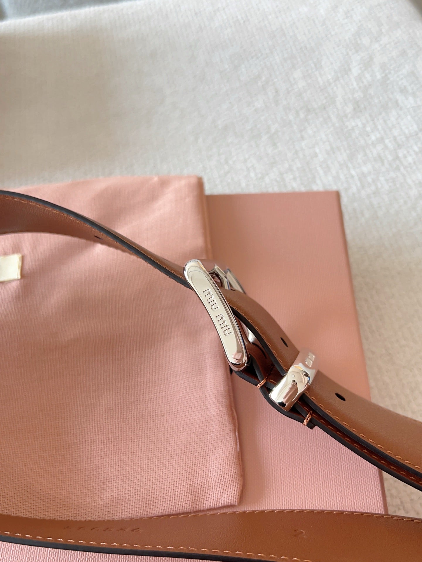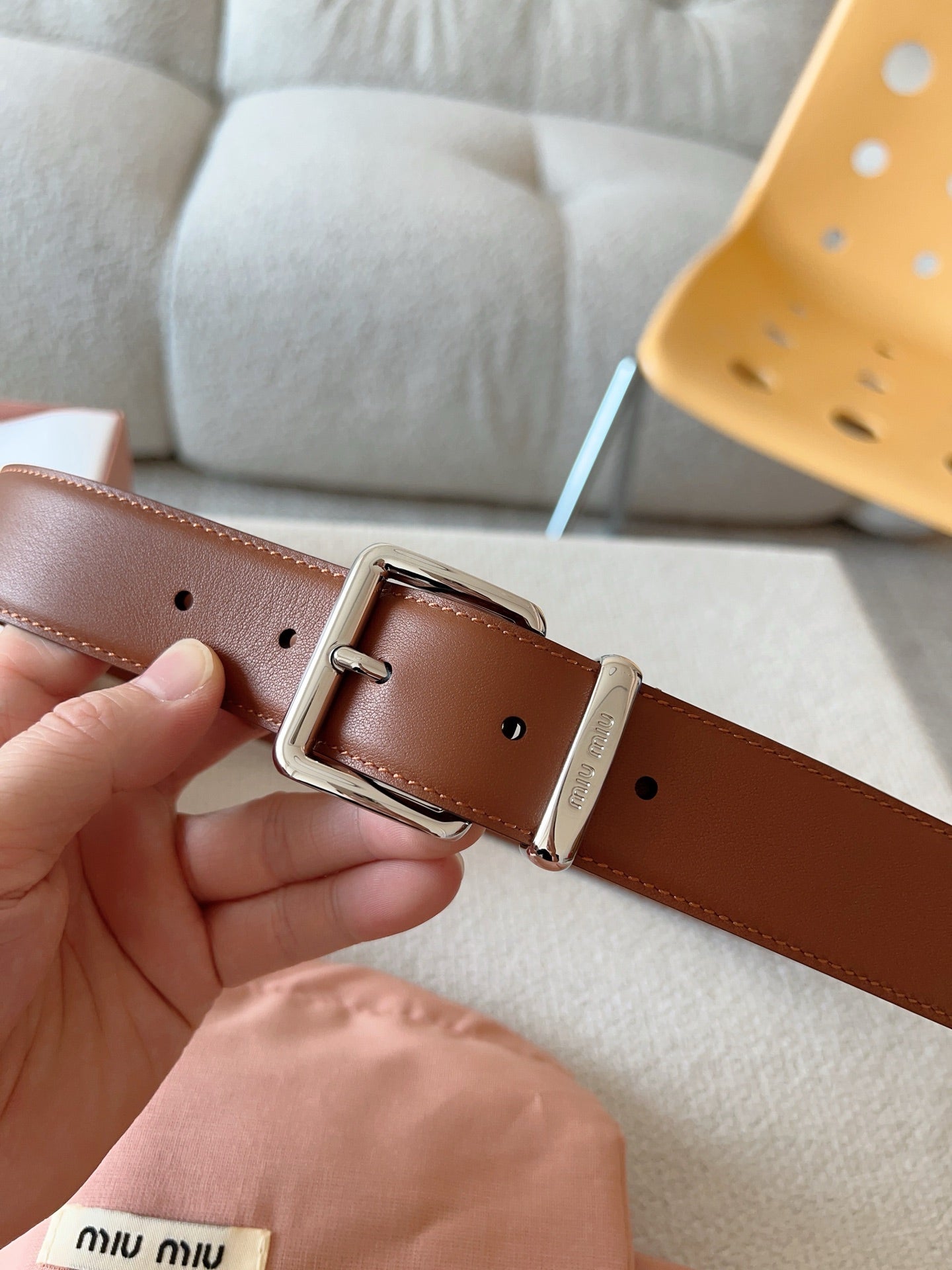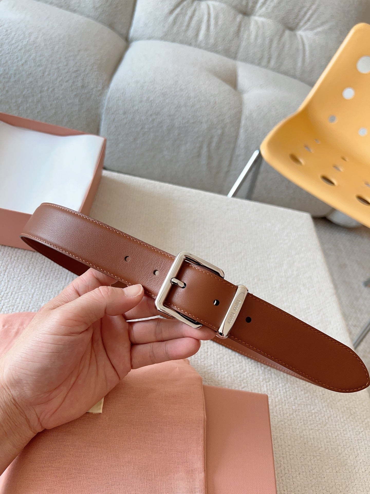 Miu Miu Elegant Leather Belt with Logo - 35mm Wide