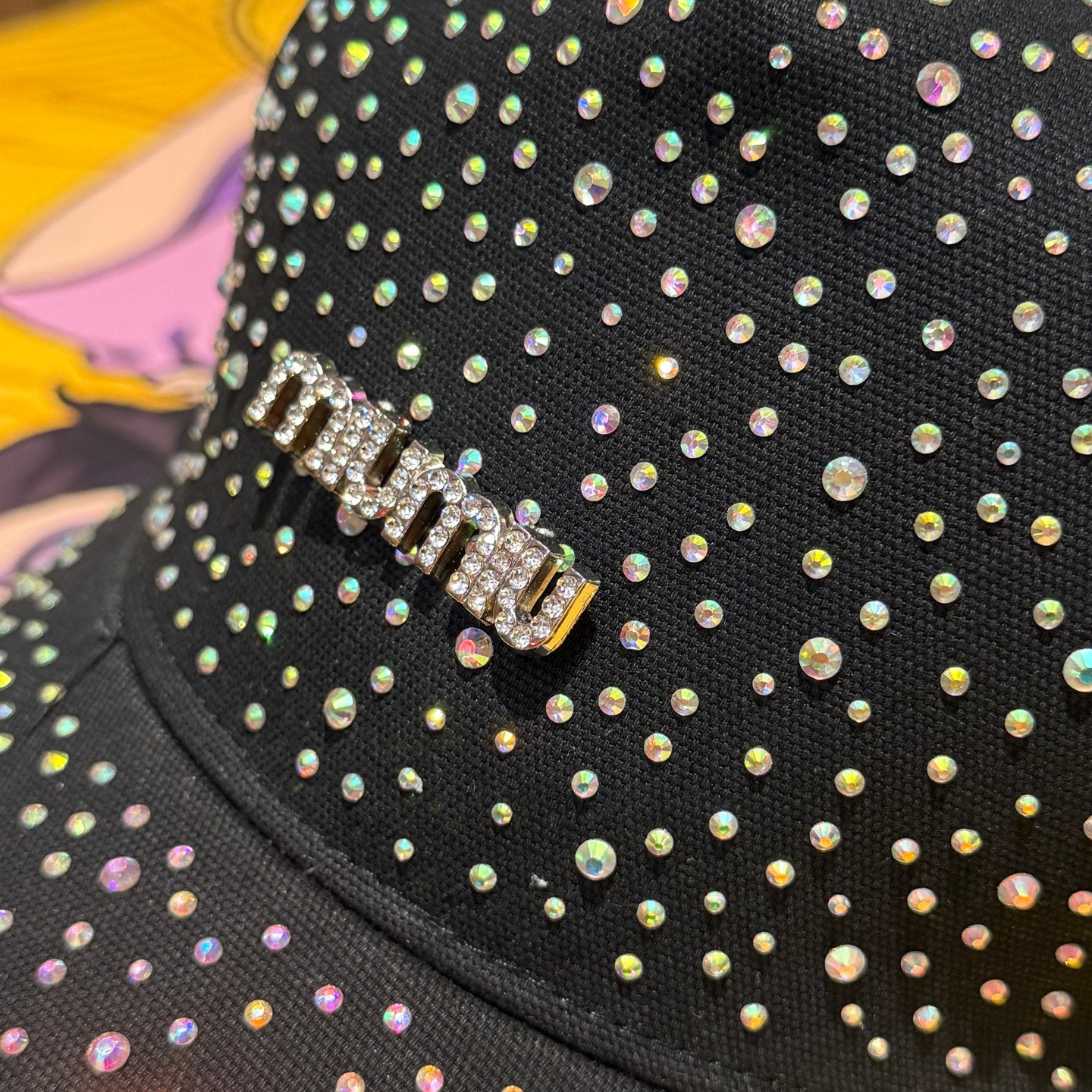 Elevate your style with the Miu Miu Rhinestone Diamond Baseball Cap. This chic accessory combines classic baseball cap design with luxurious rhinestone embellishments, ensuring you stand out in any crowd. Crafted with high-quality materials for a comfortable fit, this cap is perfect for casual outings or adding a touch of glamour to any outfit. Make a statement and show off your fashion-forward sense with this stylish essential.