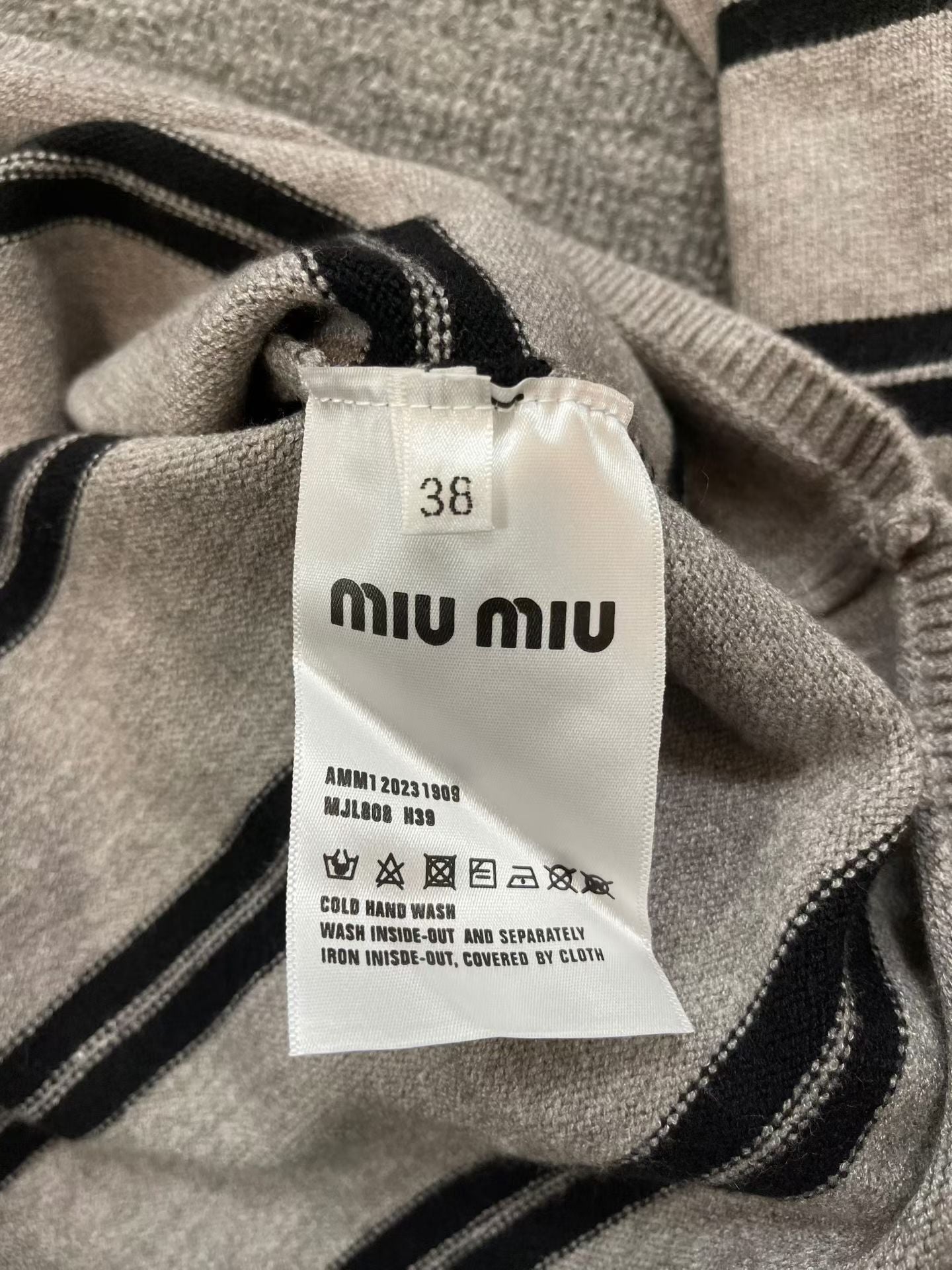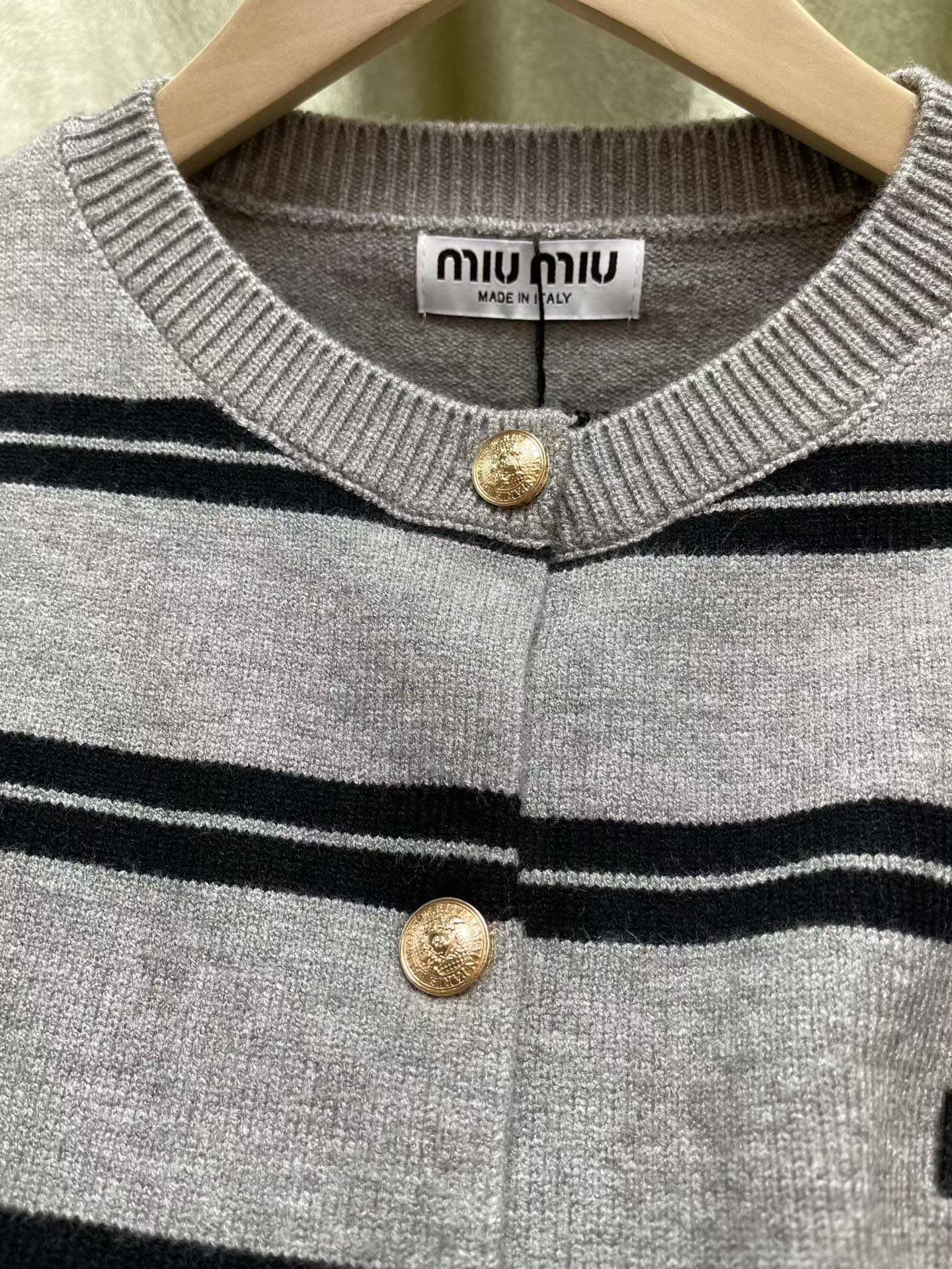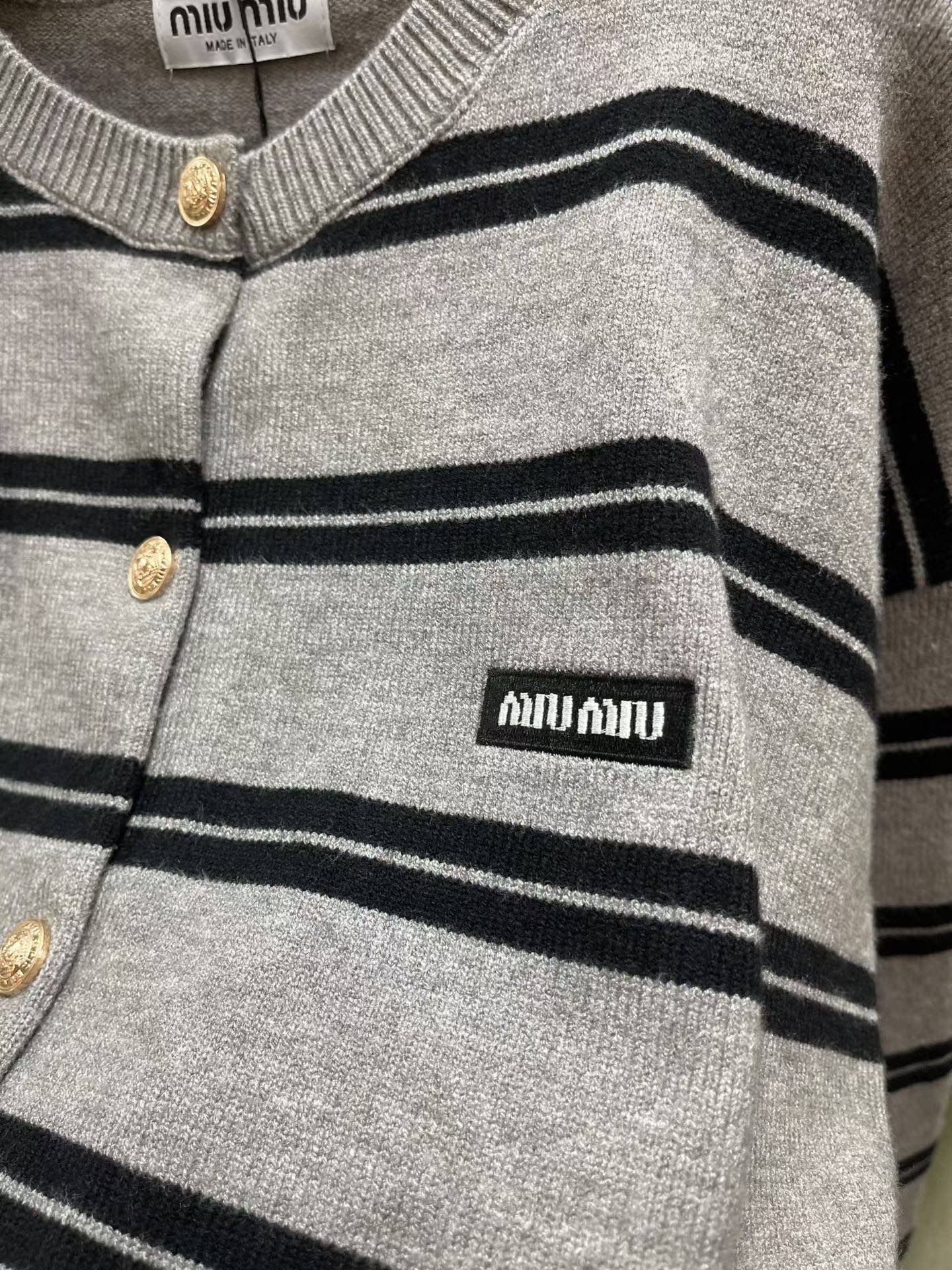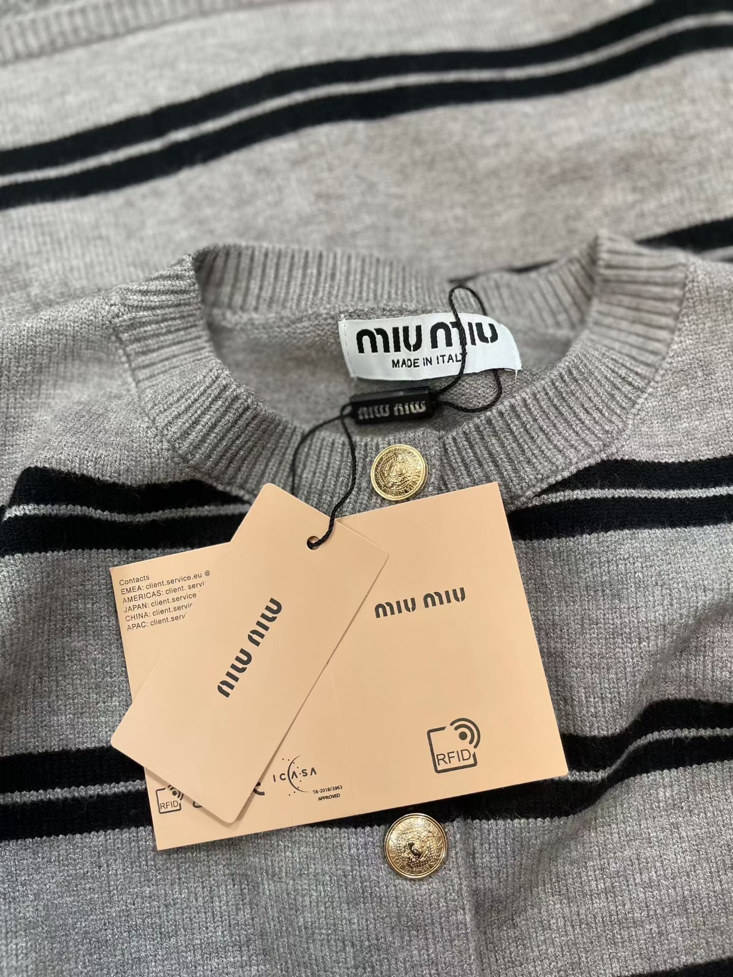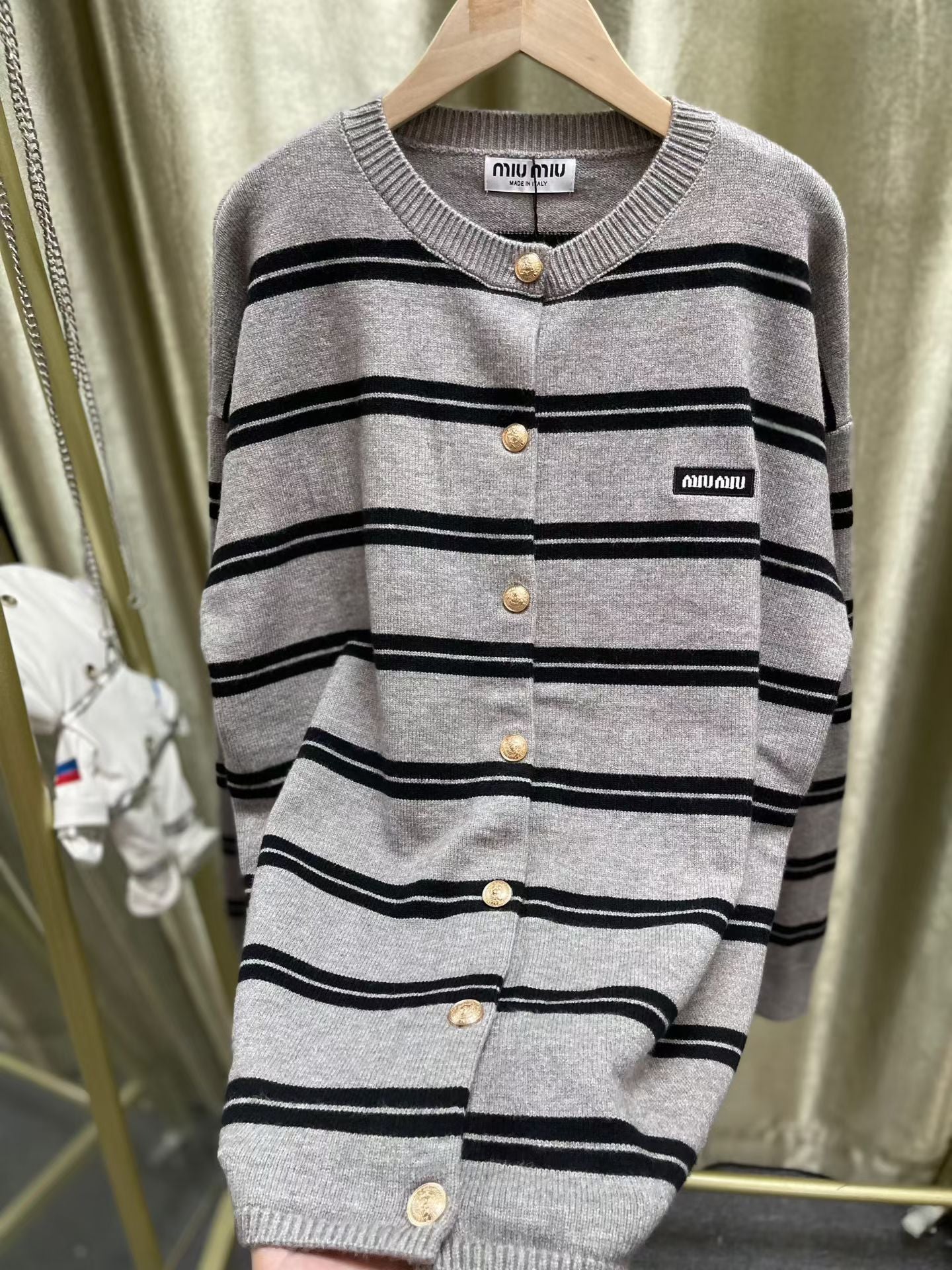 Versatile enough to be paired with any outfit, the Miu Miu Striped Cardigan effortlessly elevates your look to a high-end aesthetic. Available in sizes S-XL, please provide your height and weight when placing your order to ensure the perfect fit. Embrace elegance and comfort with this timeless piece designed for both men and women.