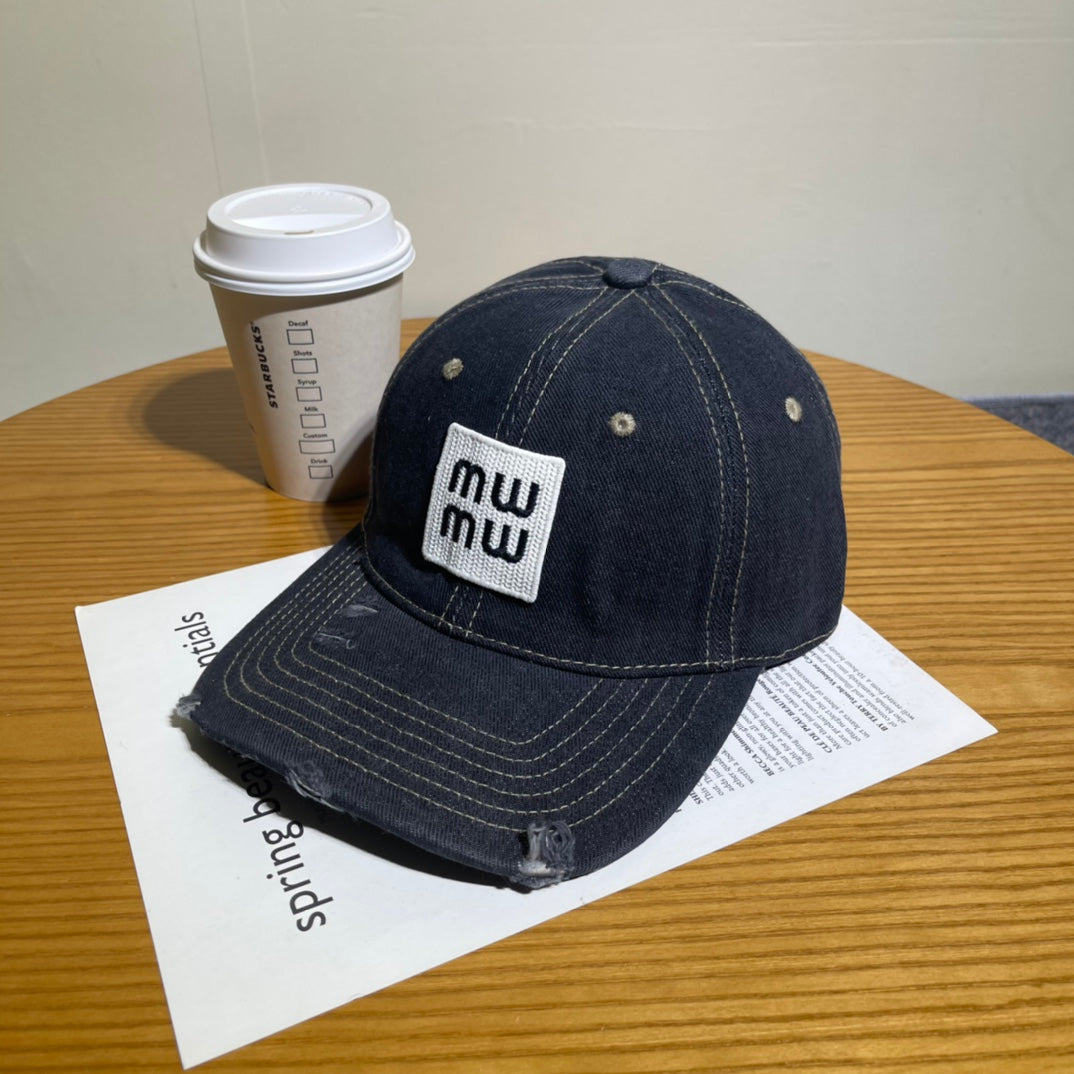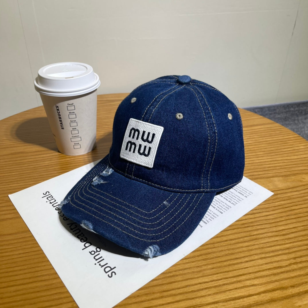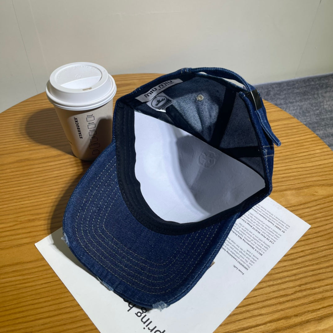 Miu Ripped Denim Baseball Cap - Casual Chic Accessory