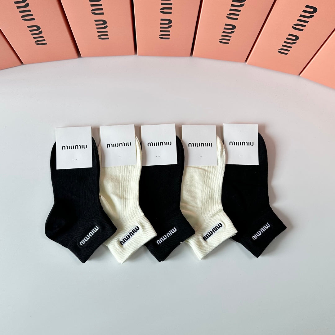 MiuMiu Embroidered Medium & Short Socks - 5 Pairs Gift Box