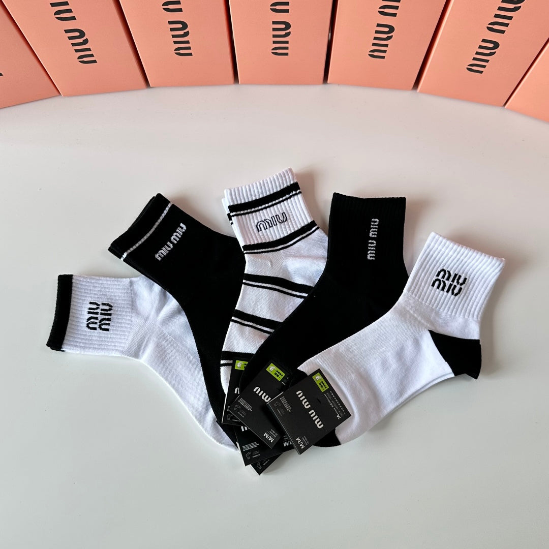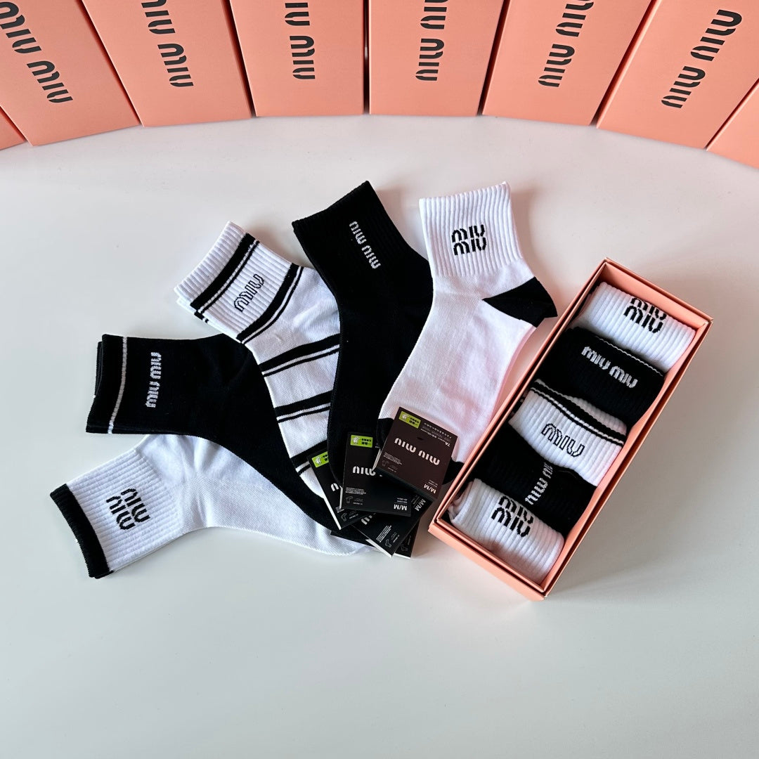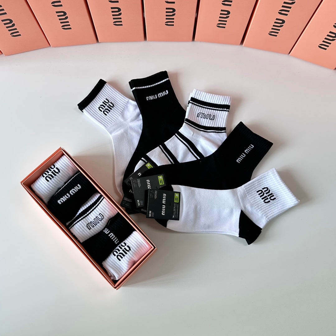 MiuMiu Mid-Length Fashion Socks – 5 Pairs Gift Box