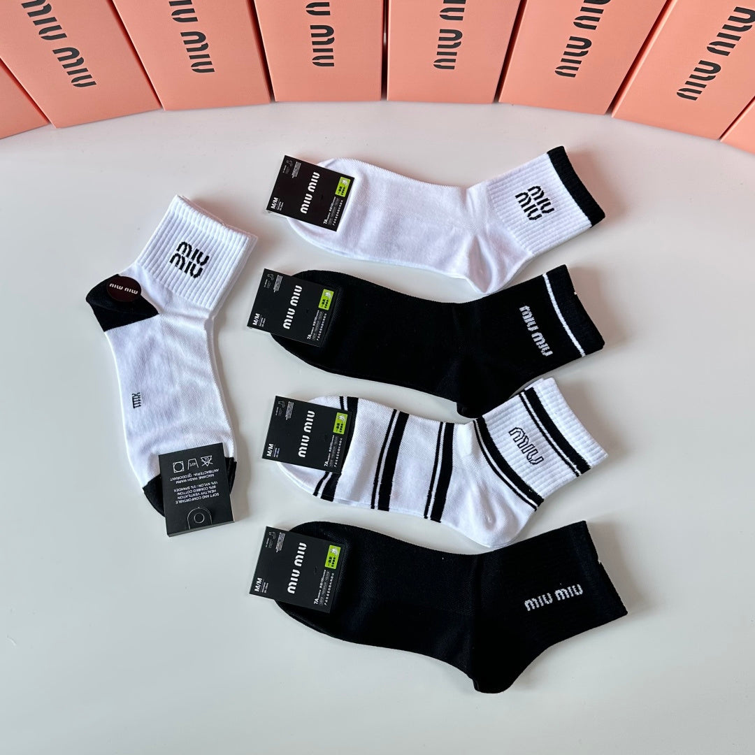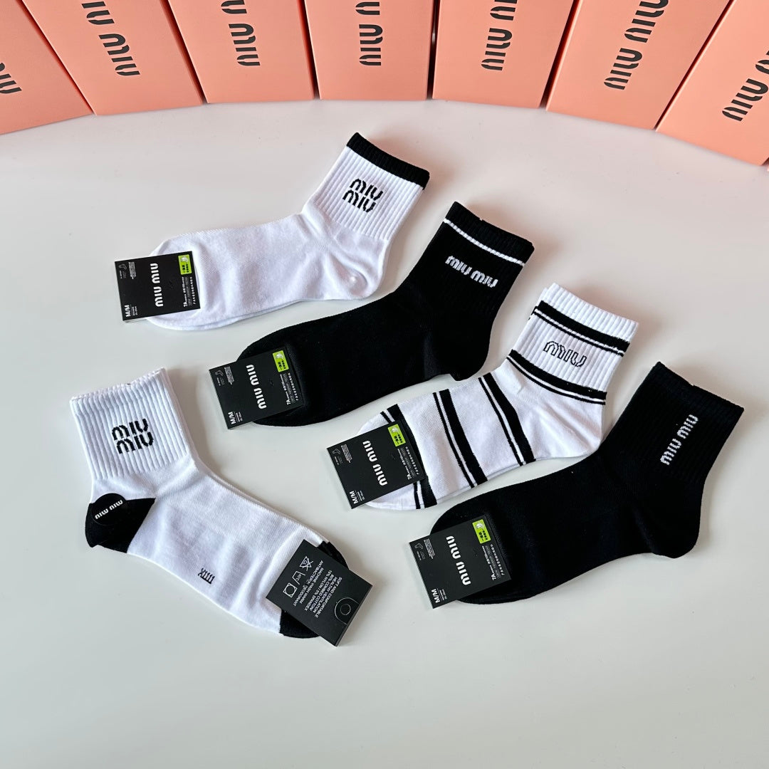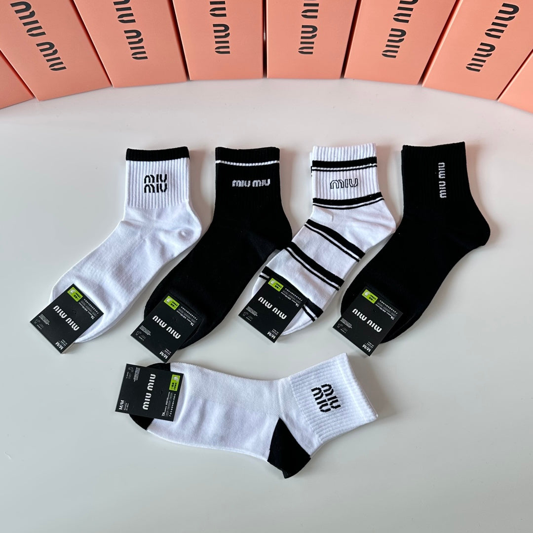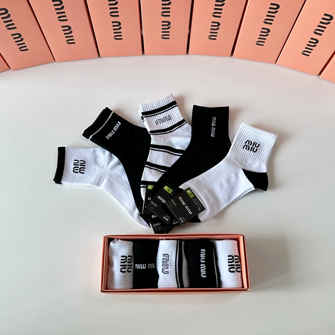 MiuMiu Mid-Length Fashion Socks – 5 Pairs Gift Box