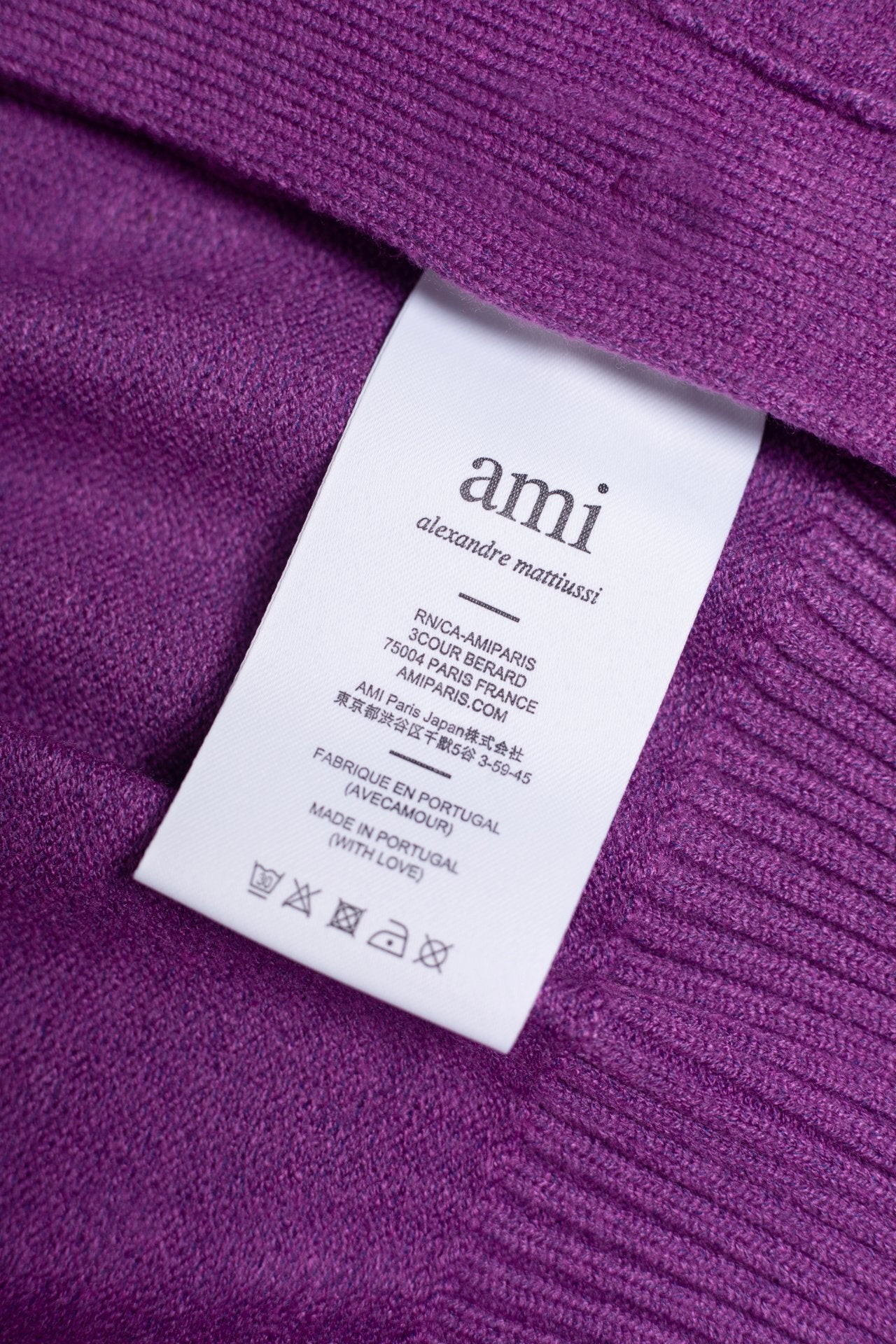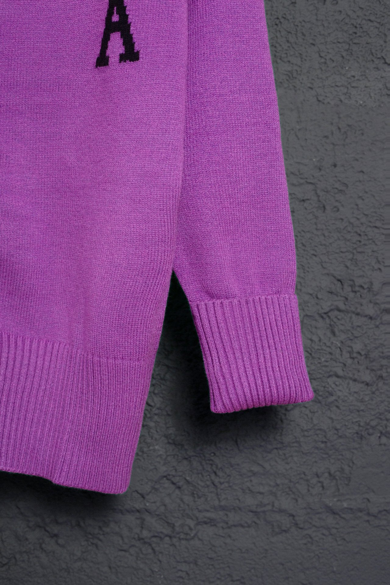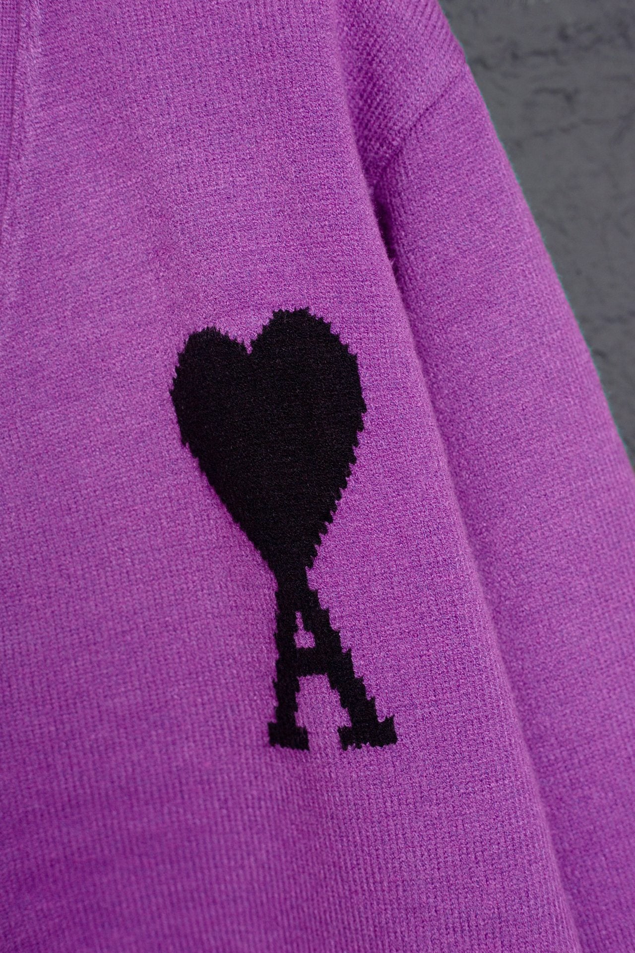 MMQ802 AMI Classic Big Love Jacquard Cardigan Sweater in Purple
