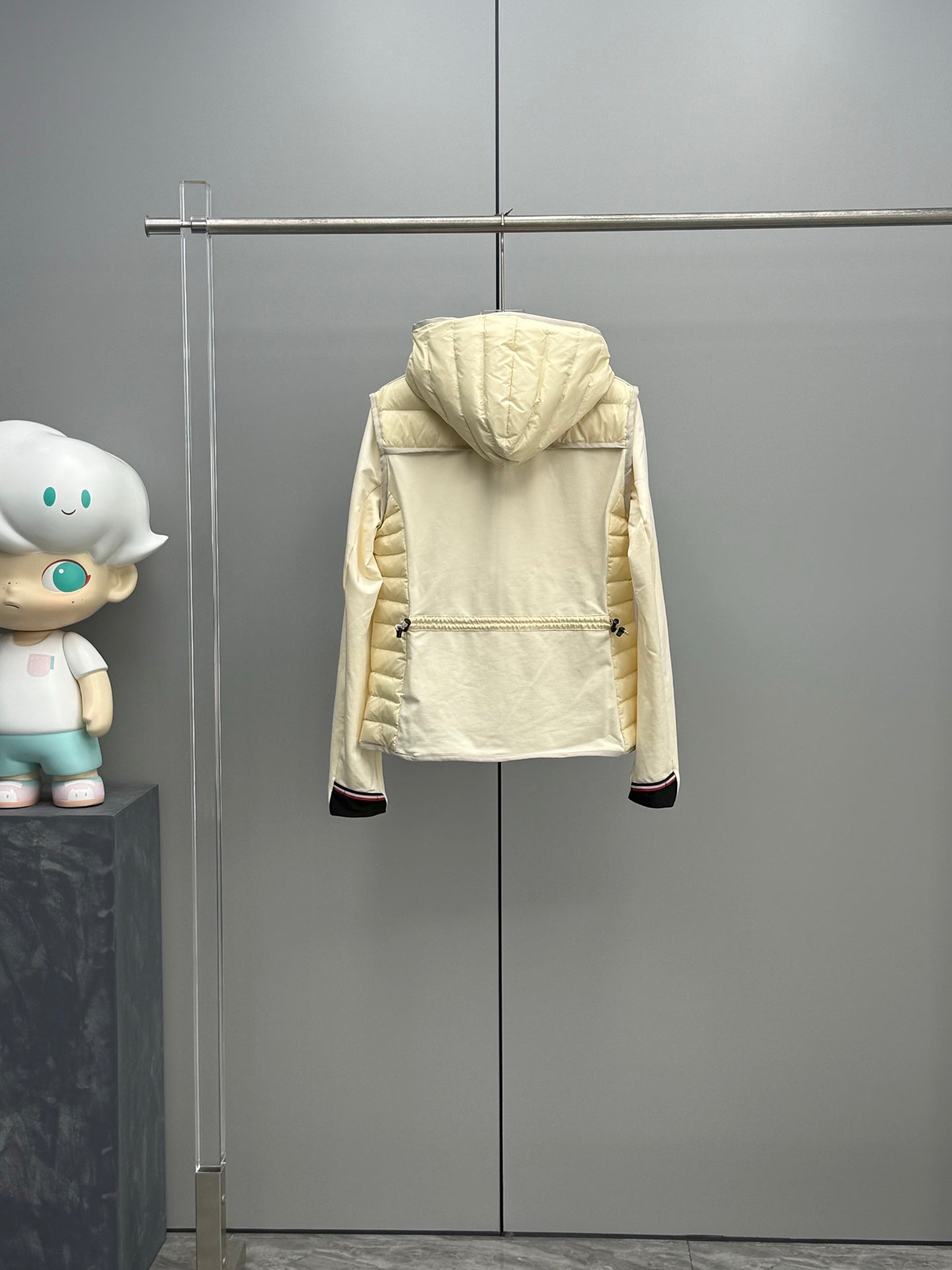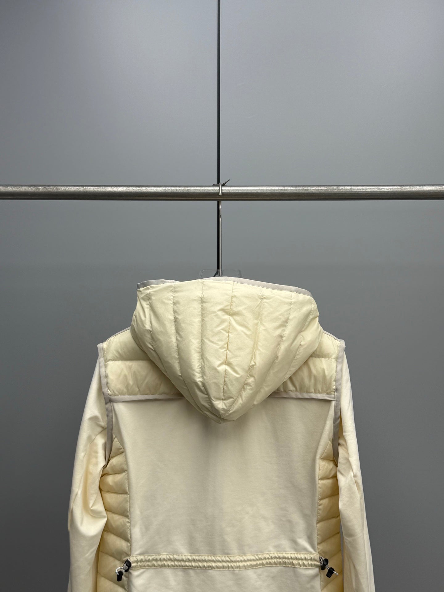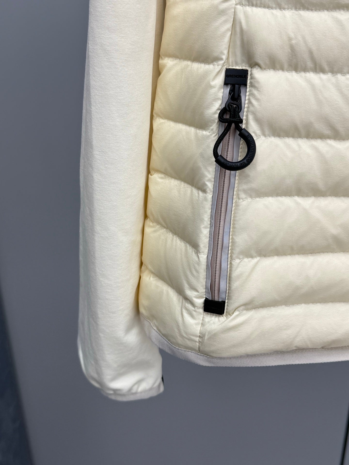 Crafted with a unique splicing design that marries technological materials, this jacket features a nylon striped quilted fabric seamlessly integrated with an elastic knitted texture. The result is a visually striking piece with a rich layer of concave and convex textures, delivering a lightweight feel without sacrificing durability.