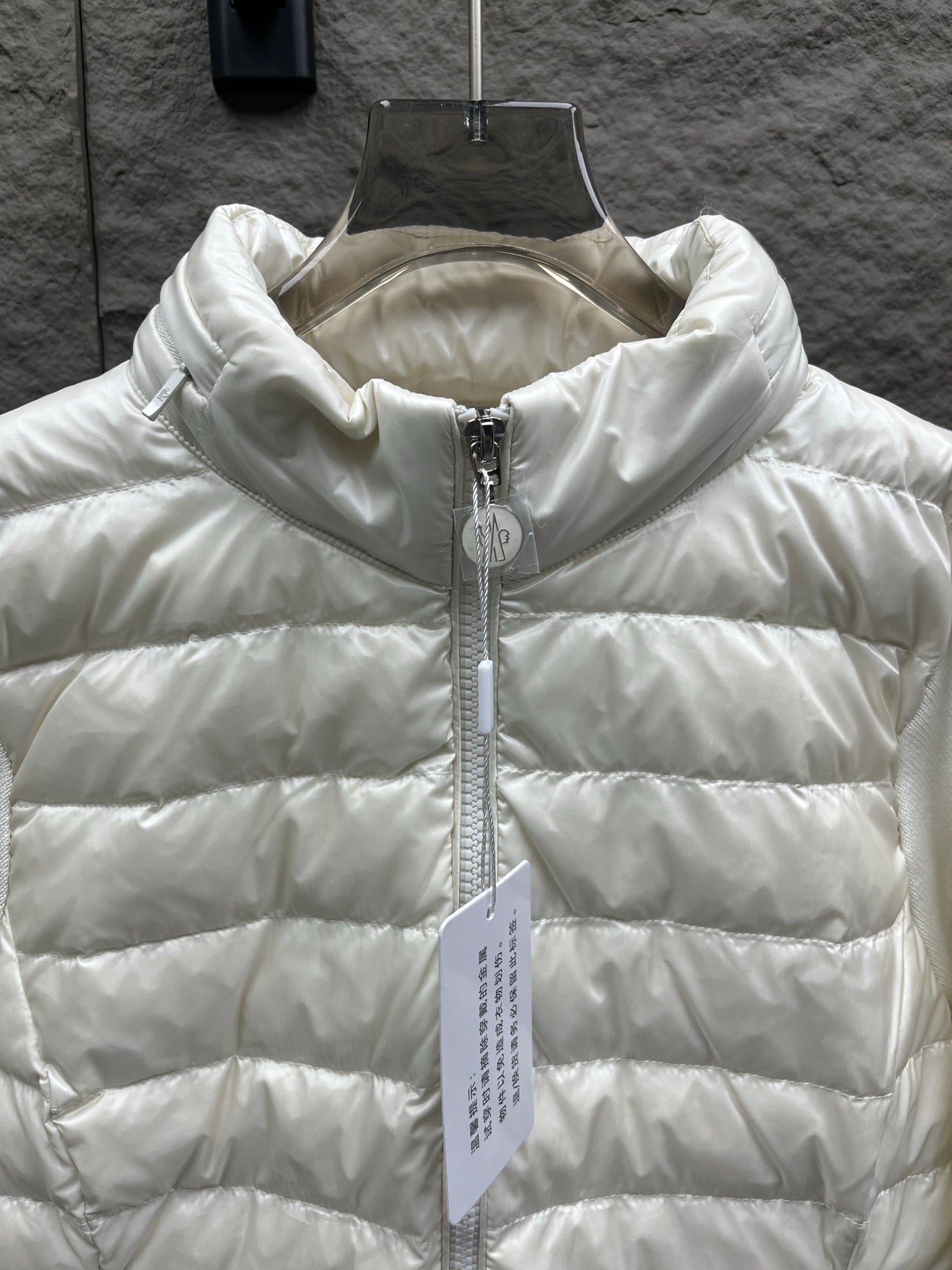 Elevate your autumn wardrobe with the Moncler 25 Down Jacket, featuring a unique spliced design with luxurious wool knitted sleeves and a stylish stand collar. Crafted for both comfort and sophistication, this jacket seamlessly combines warmth with a chic silhouette. Perfect for cool days, its high-quality materials and impeccable craftsmanship make it a must-have for the modern fashion enthusiast. Available in a range of sizes. Embrace the season in style with this stunning piece from our latest collection.