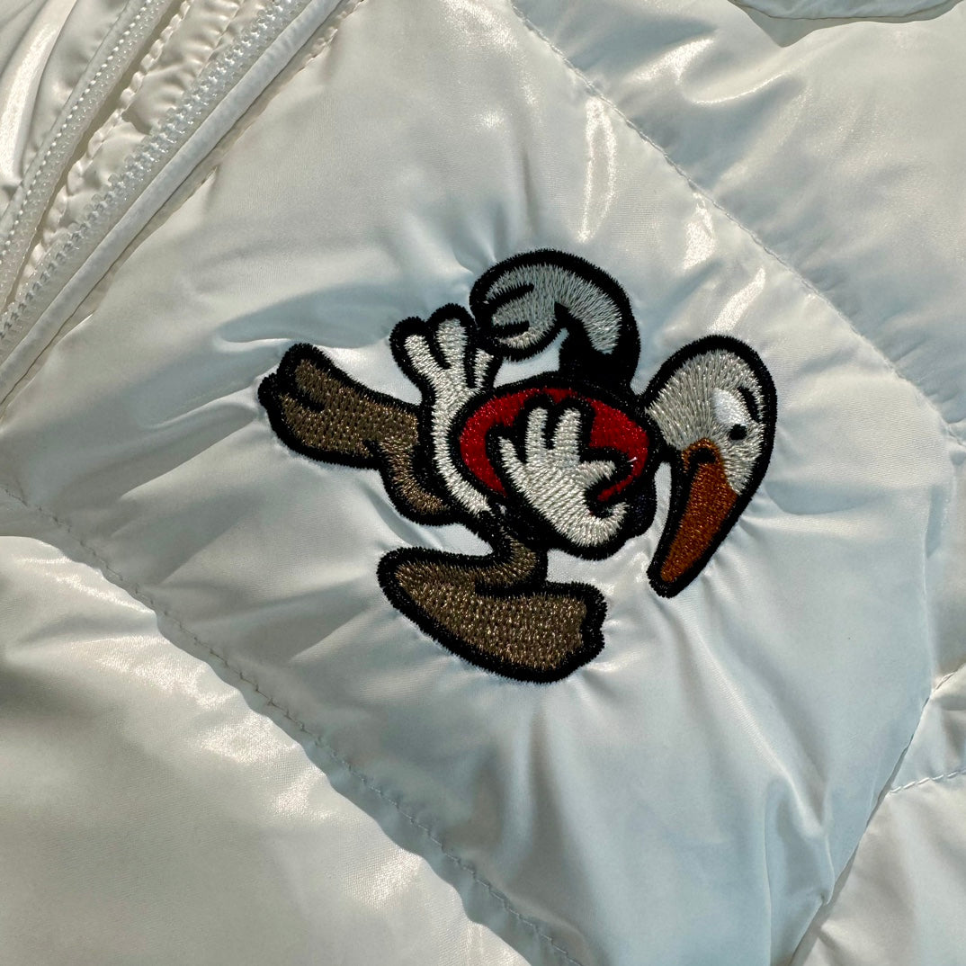 Designed for both boys and girls, it features a playful embroidered MonDuck patch that showcases the brand's beloved mascot. Filled with premium high-fill 90 down, this jacket provides exceptional insulation while the dual-layer 400T nylon gallbladder lining effectively secures the down, ensuring lasting warmth and durability.