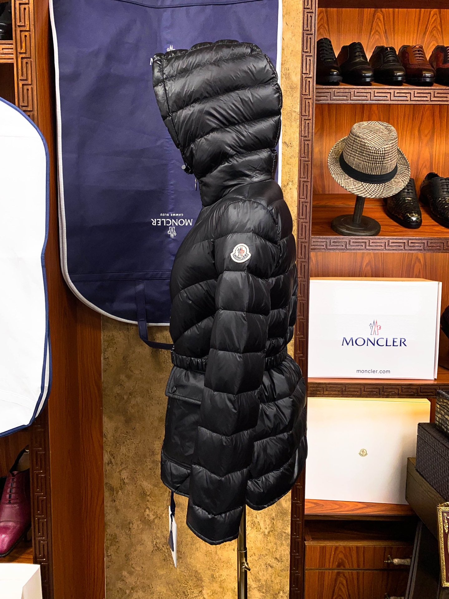 Introducing the Moncler Argenno Women's Hooded Down Jacket— your perfect blend of style and comfort. This ultra-lightweight jacket features a sleek, thin design that ensures you stay warm without added bulk. With a movable belt, it offers two styling options: wear it cinched for a slim, tailored look or without the belt for a relaxed fit. The stylish V-shaped line design enhances your silhouette, making you look effortlessly elegant.