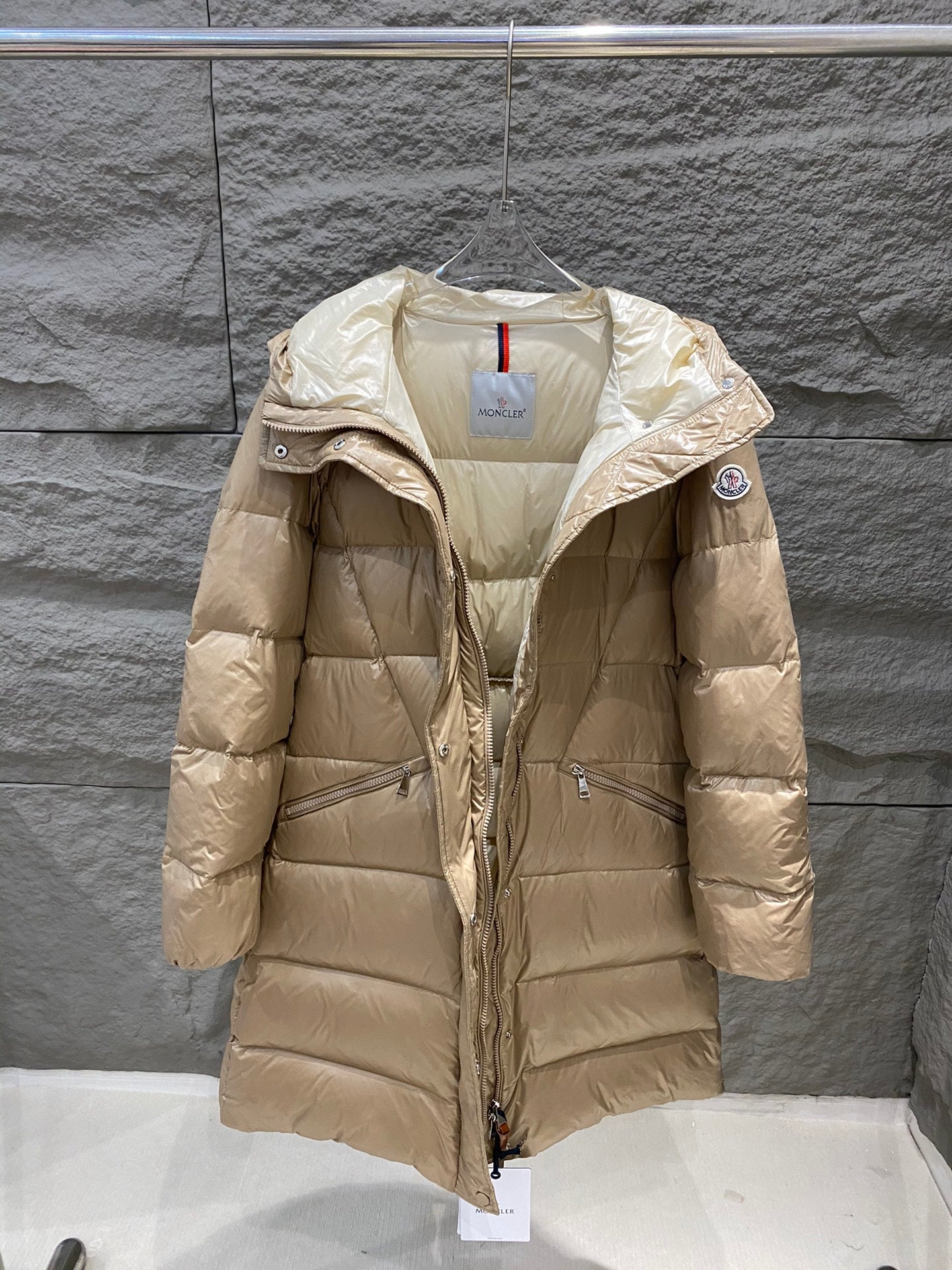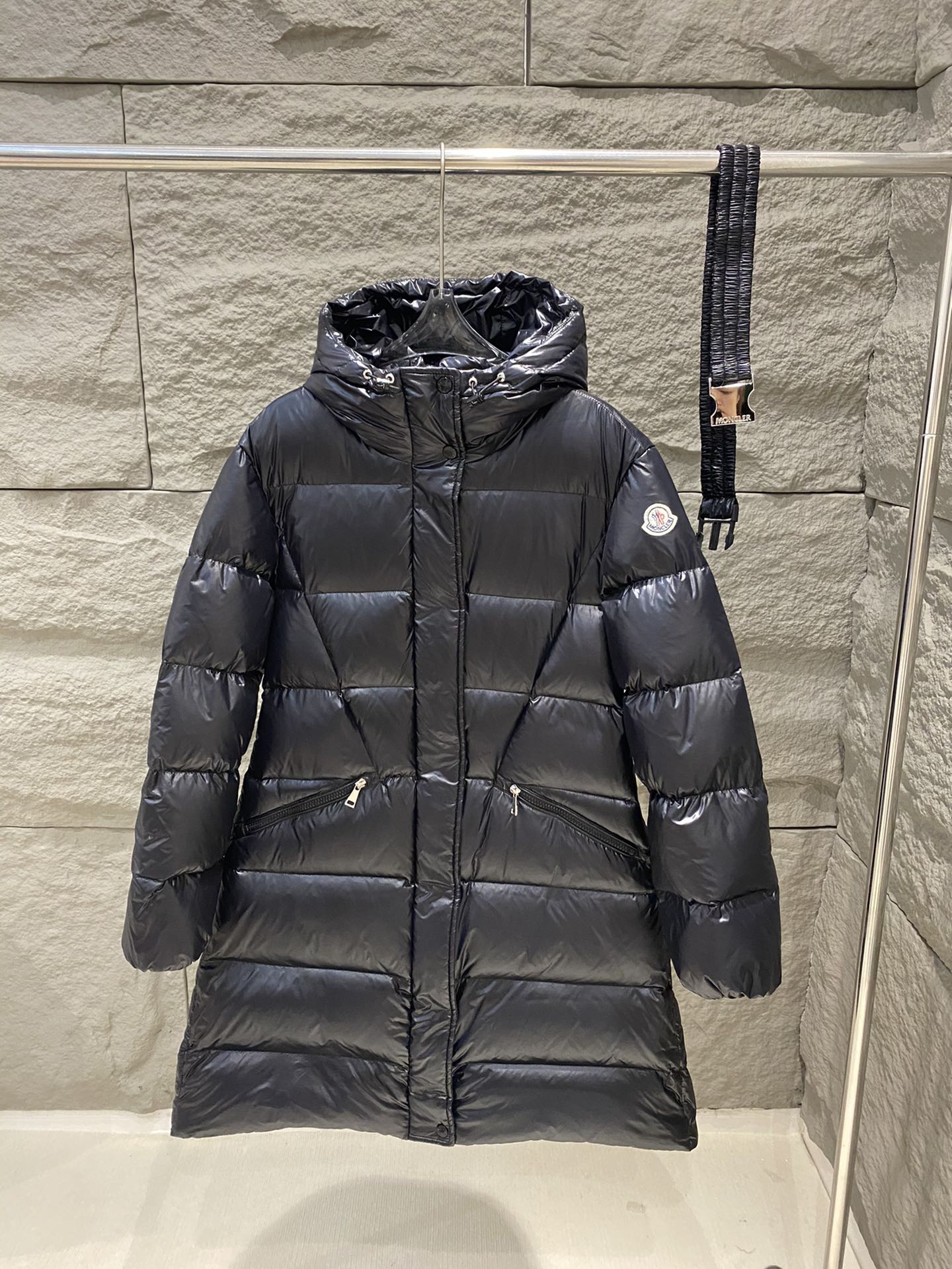 Elevate your winter wardrobe with the Moncler Bellevue Women's Long Down Jacket. Crafted from the signature nylon laqué fabric, this luxurious coat showcases a chic, lustrous finish that embodies classic Moncler style. Featuring a feminine silhouette and an elastic waistband, this hooded thermal jacket ensures both warmth and a flattering fit.
