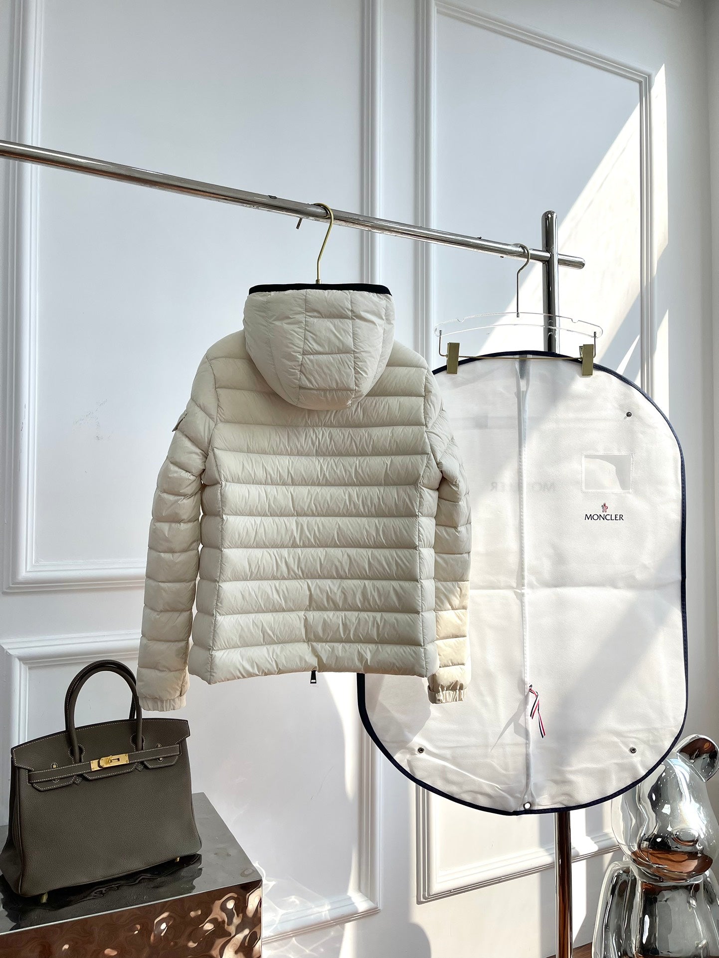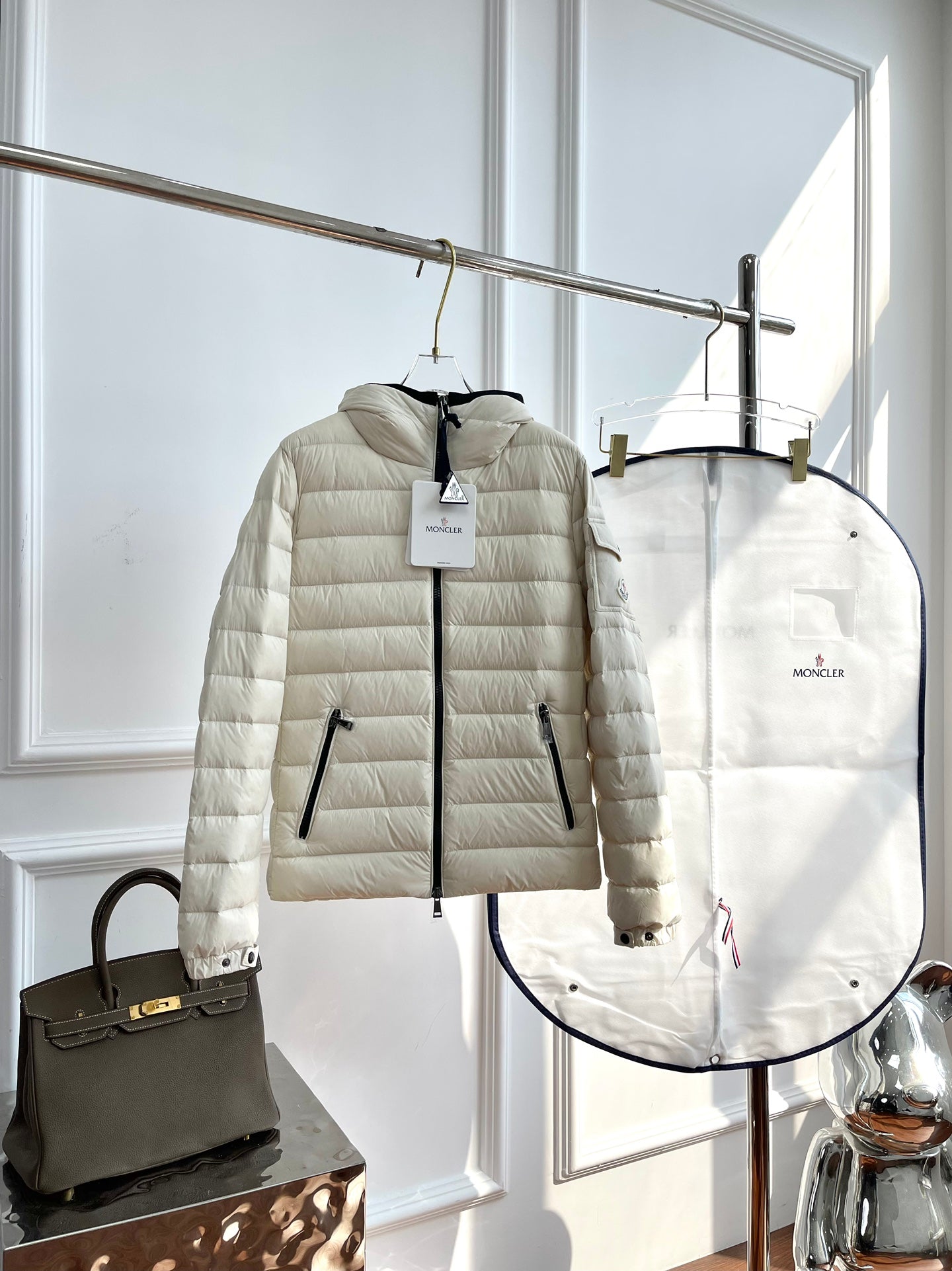 Elevate your outerwear collection with the Moncler Bles Slim Fit Hooded Down Jacket. This lightweight yet warm jacket features a minimalist design in a stunning off-white hue, accentuated by sleek black trim and the iconic Moncler logo for added distinction.