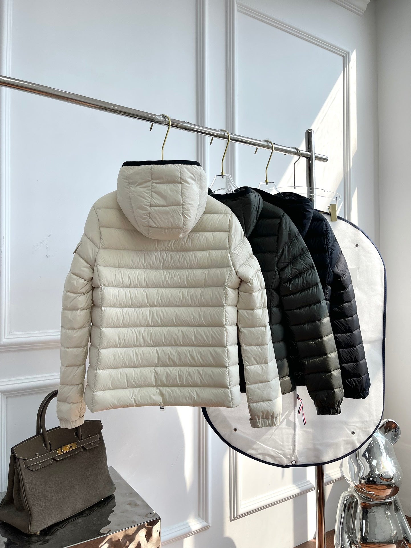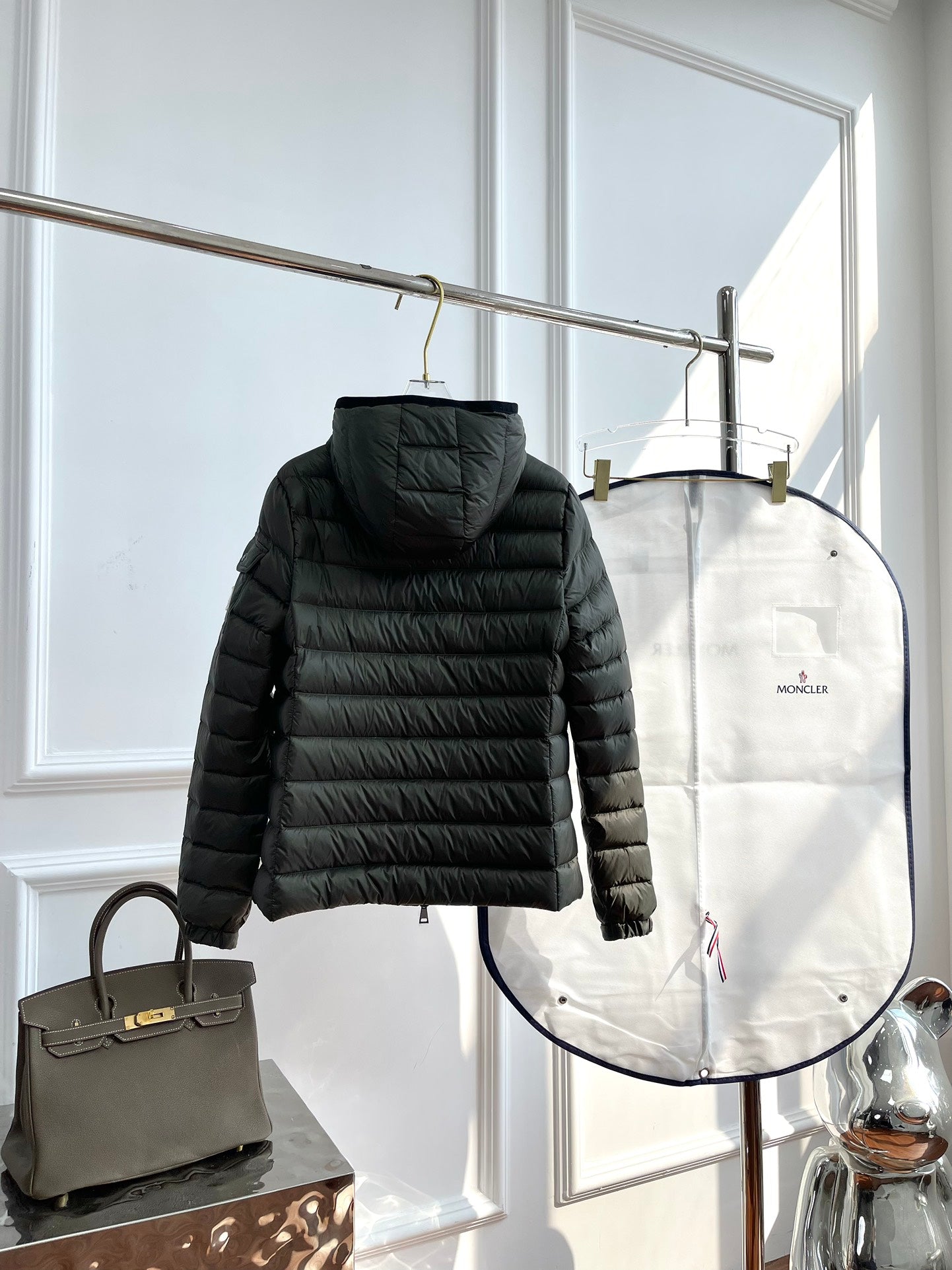 Perfect for the transitional seasons, this versatile down jacket includes practical details such as a zippered hood, webbing with windproof trim, and two external zippered pockets for convenience. Available in off-white, military green, and black, choose your size from 1 to 5 for the perfect fit.