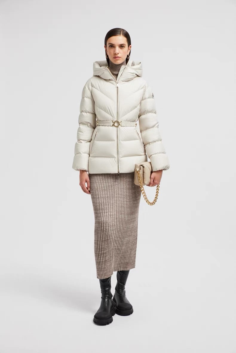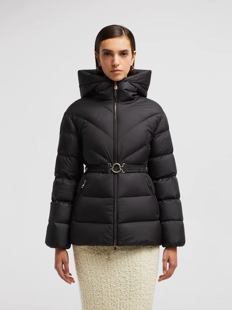 Moncler Brosse Women's Short Down Jacket with Hood and Gold Buckle