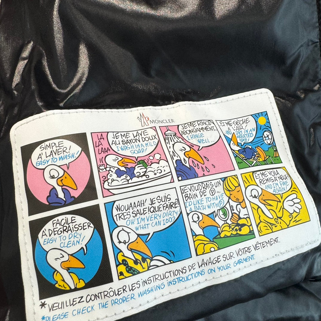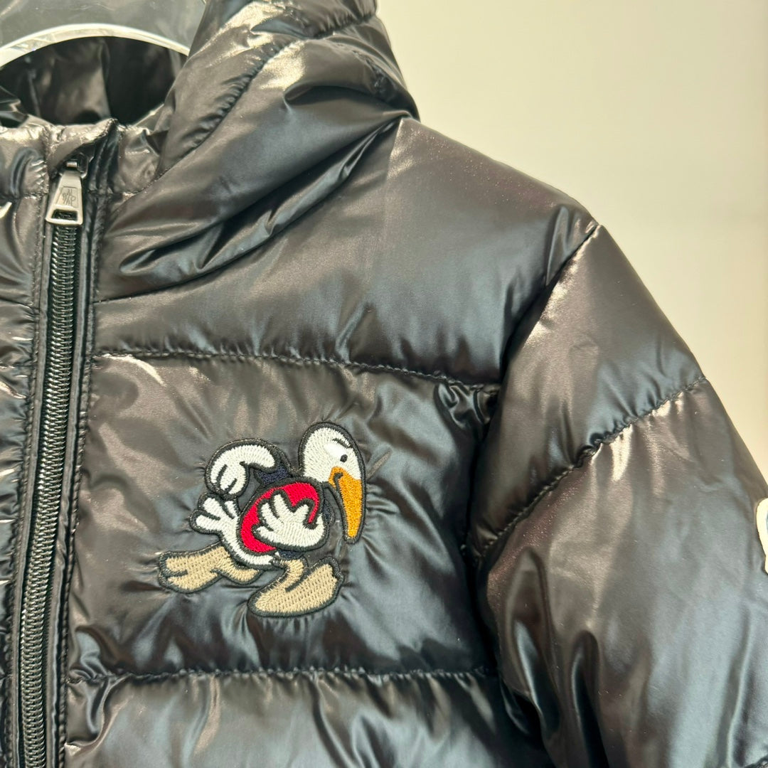 Designed with a trendy hood, it showcases the iconic MonDuck embroidered patch, embodying the brand's playful spirit. Filled with high-quality 90% down, the jacket provides exceptional warmth, while the 400T nylon liner securely locks in insulation for lasting durability.