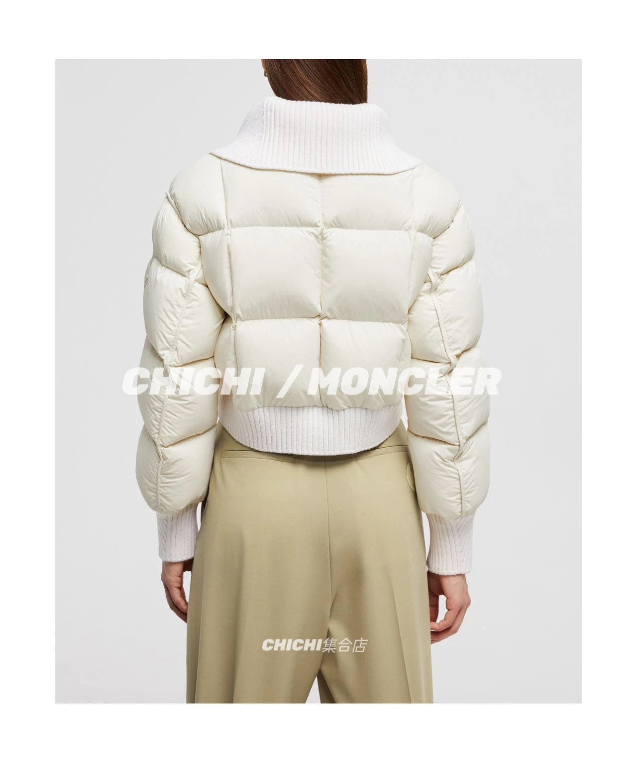 Moncler-Inspired Knitted Sweater Collar Down Jacket - White