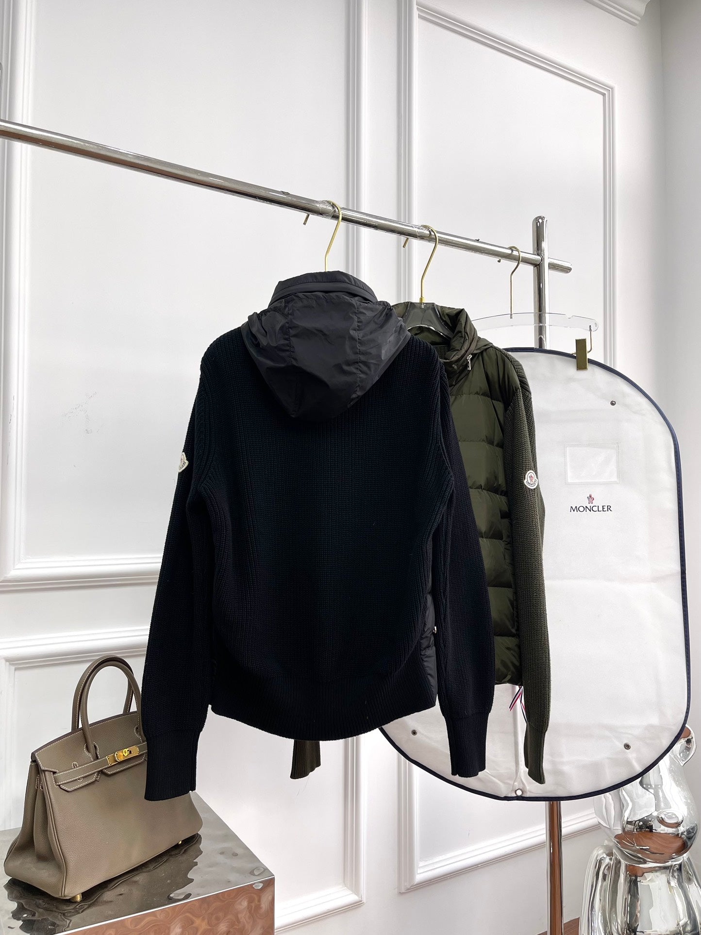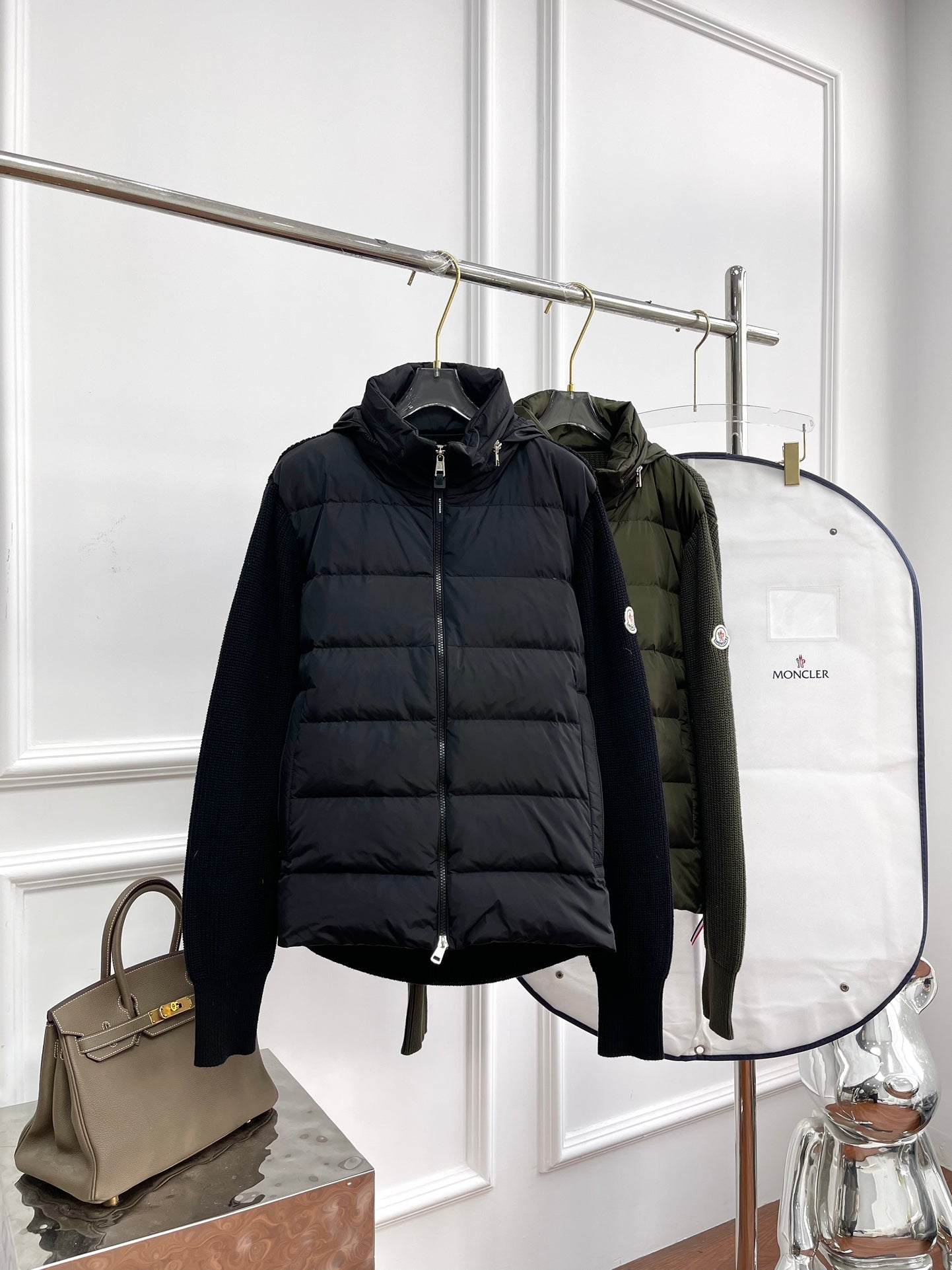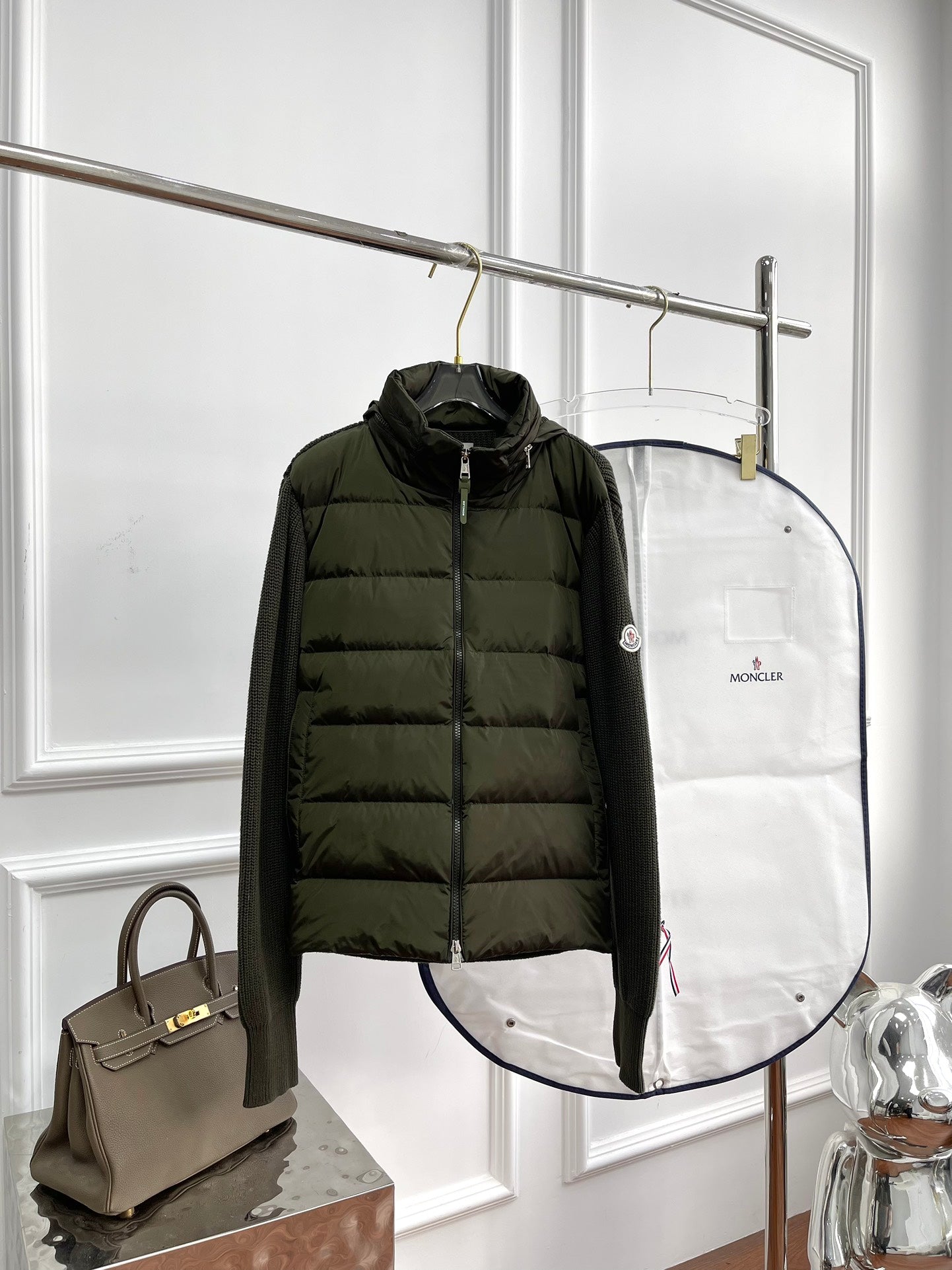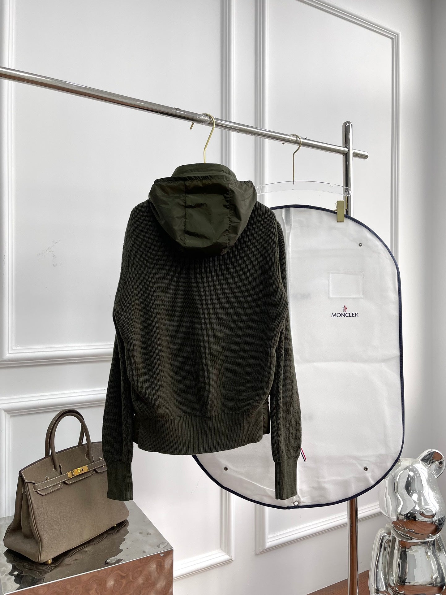 Moncler Knitted Splicing Down Jacket with Hidden Hood - Available in Retro Green & Black