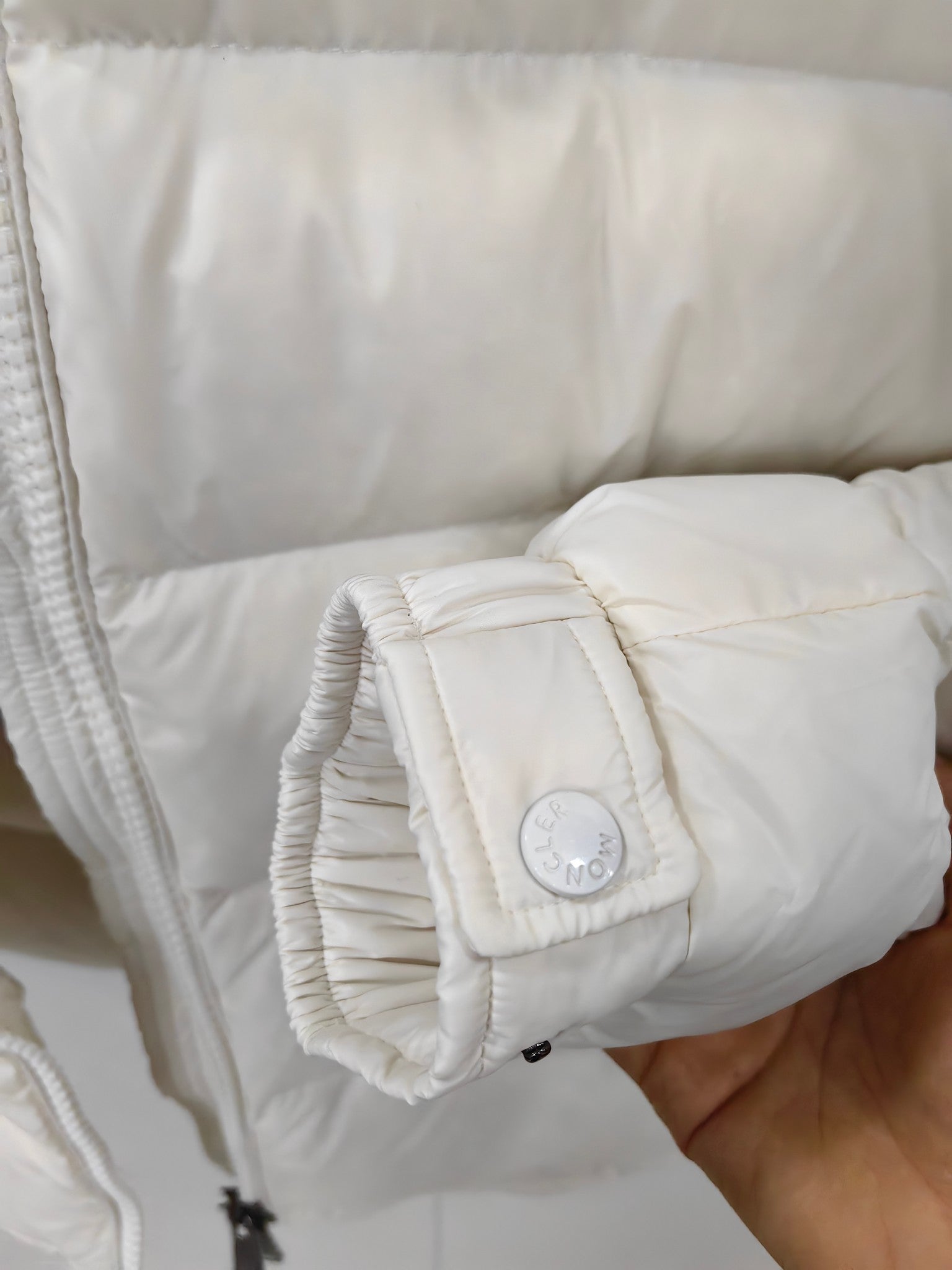 The Maire features a versatile removable hood and thoughtful performance elements, allowing for freedom of movement. Available in a selection of soft colors including pink, white, and black, this jacket caters to every wardrobe. Embrace the iconic style of Moncler with the Maire—where comfort meets modern elegance.