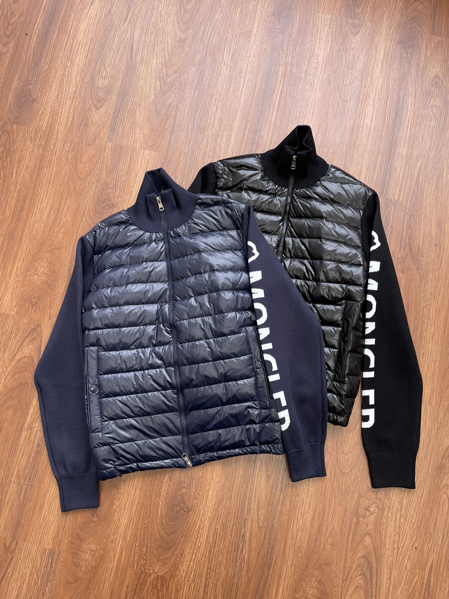 Moncler Men's Navy Blue Pilot Collar Down Jacket - Logo Knit Stitching