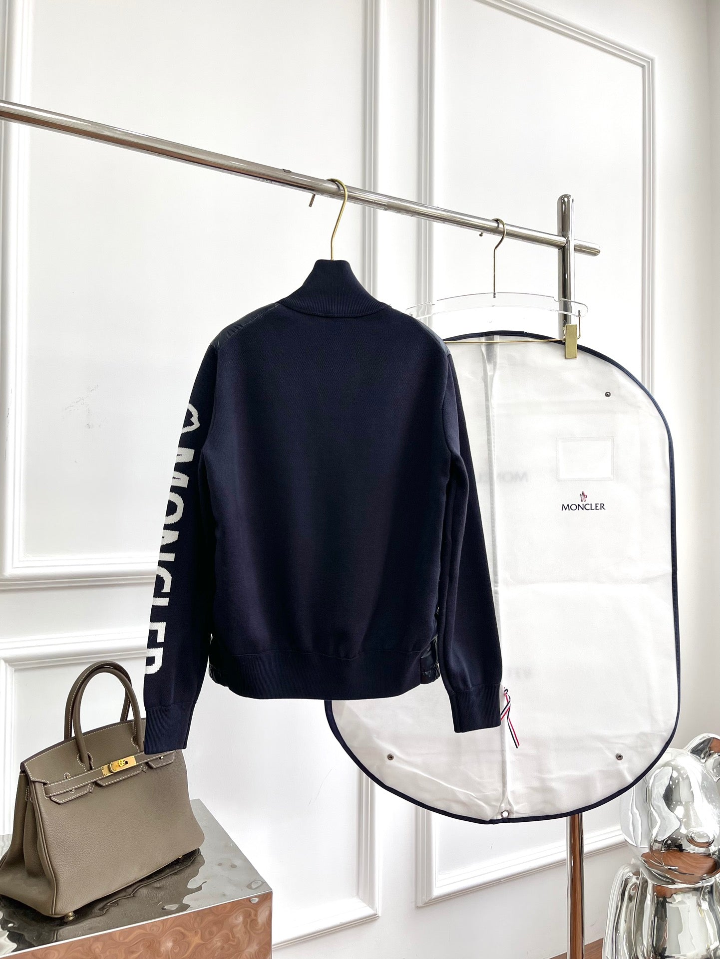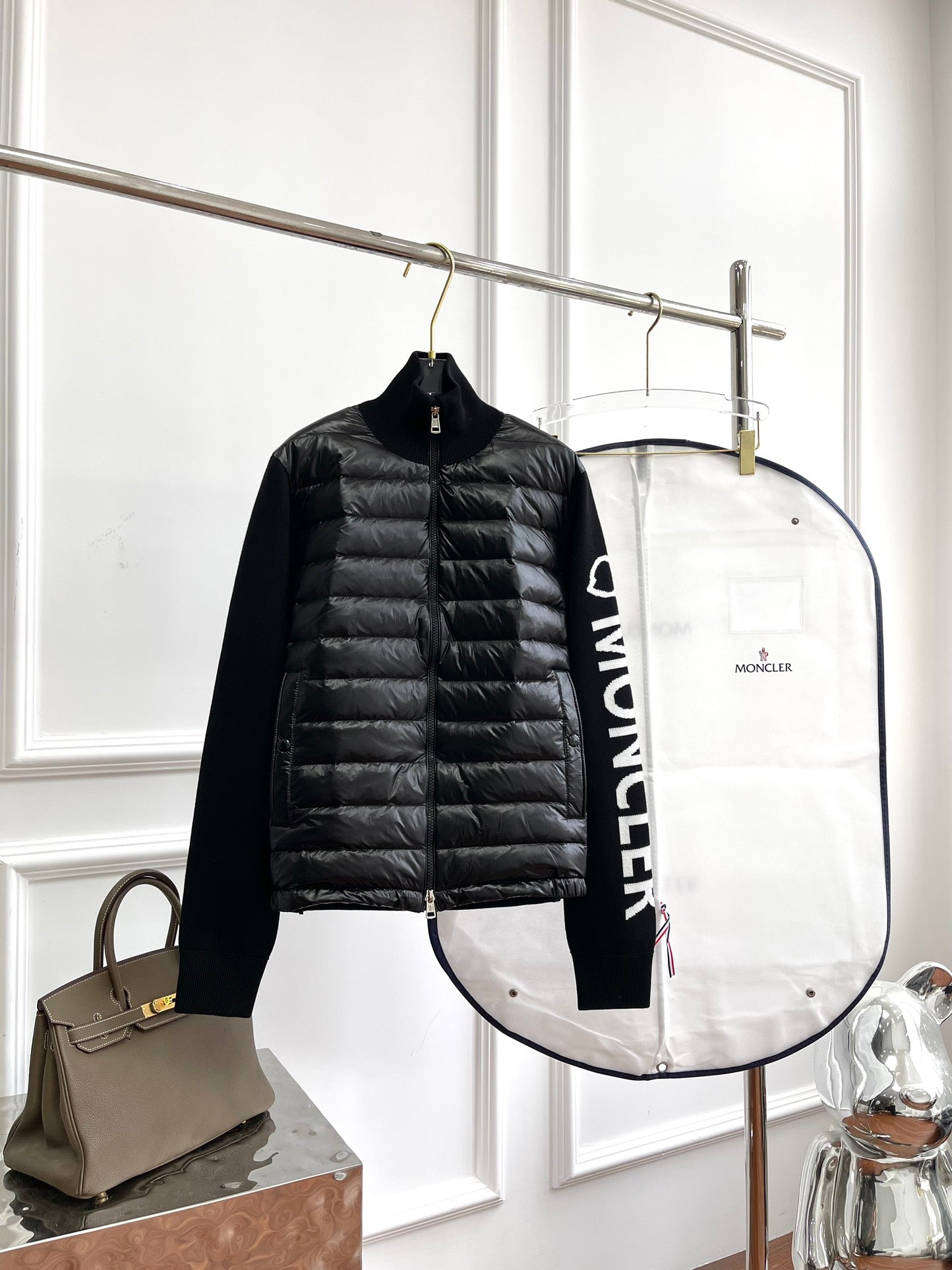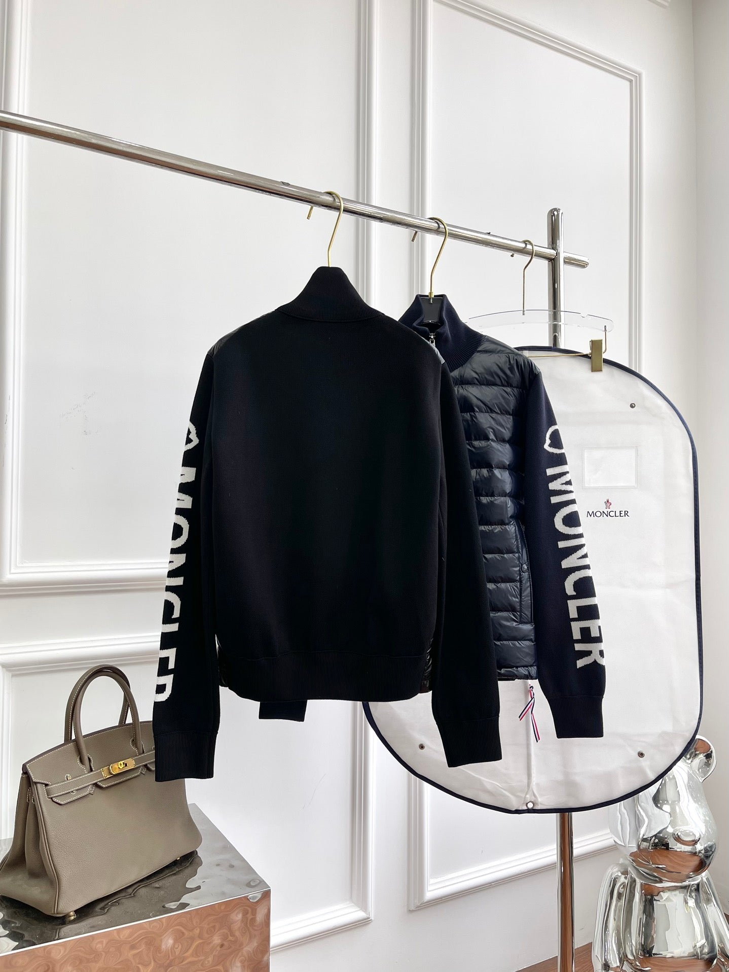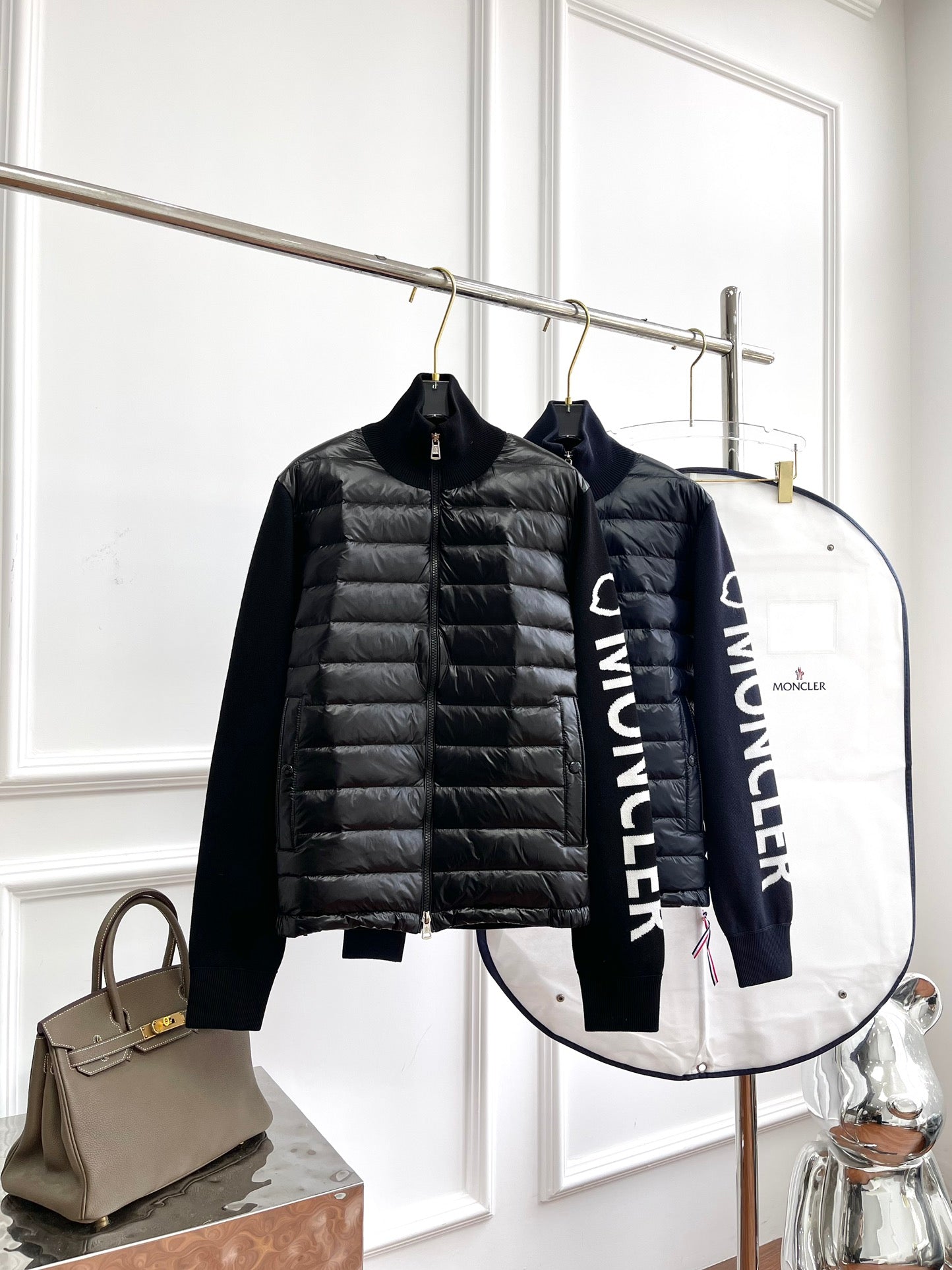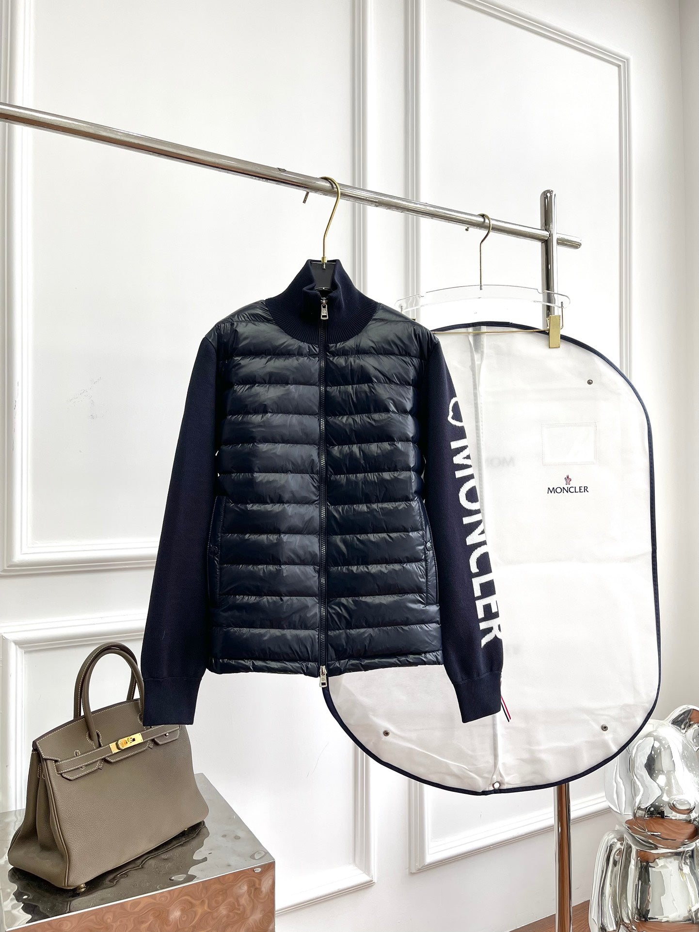Elevate your cold-weather wardrobe with the Moncler Men's Pilot Collar Down Jacket. Crafted from premium materials, this stylish piece features a unique knitted stitching design and a distinctive LOGO print. Available in a sophisticated navy blue and classic black, it offers both functionality and fashion. With sizes ranging from M to 3XL, this down jacket is perfect for a comfortable fit. Stay warm and stylish as you embrace the autumn and winter seasons with Moncler.