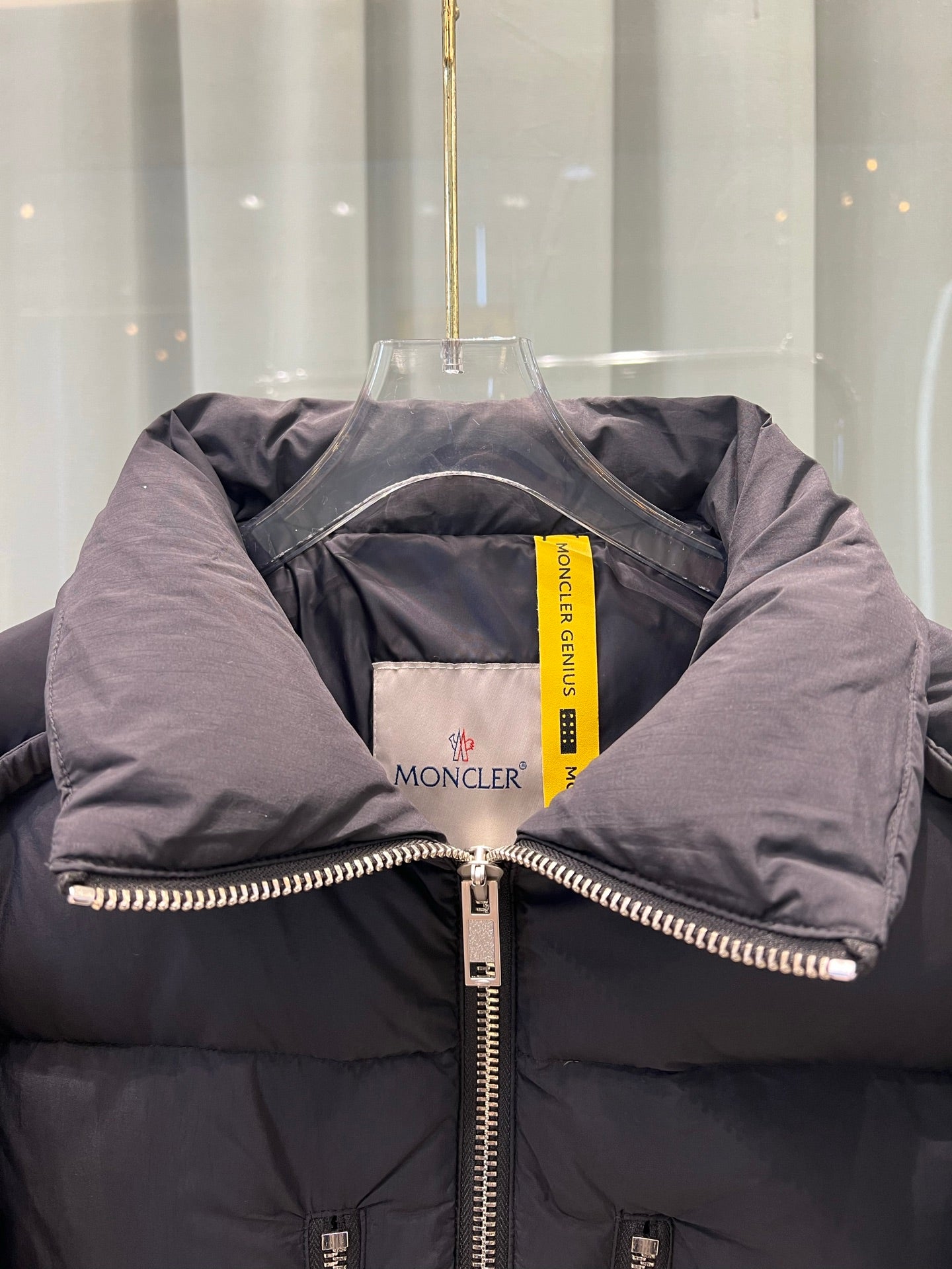 Elevate your winter wardrobe with Moncler's latest zippered bread down jacket, now available in the high version. This stylish and versatile piece features a stand-up collar and a contemporary quilted design, making it perfect for both casual outings and upscale events. The jacket is adorned with a heavy metal zipper decoration on the chest, adding a touch of sophistication to its overall look.