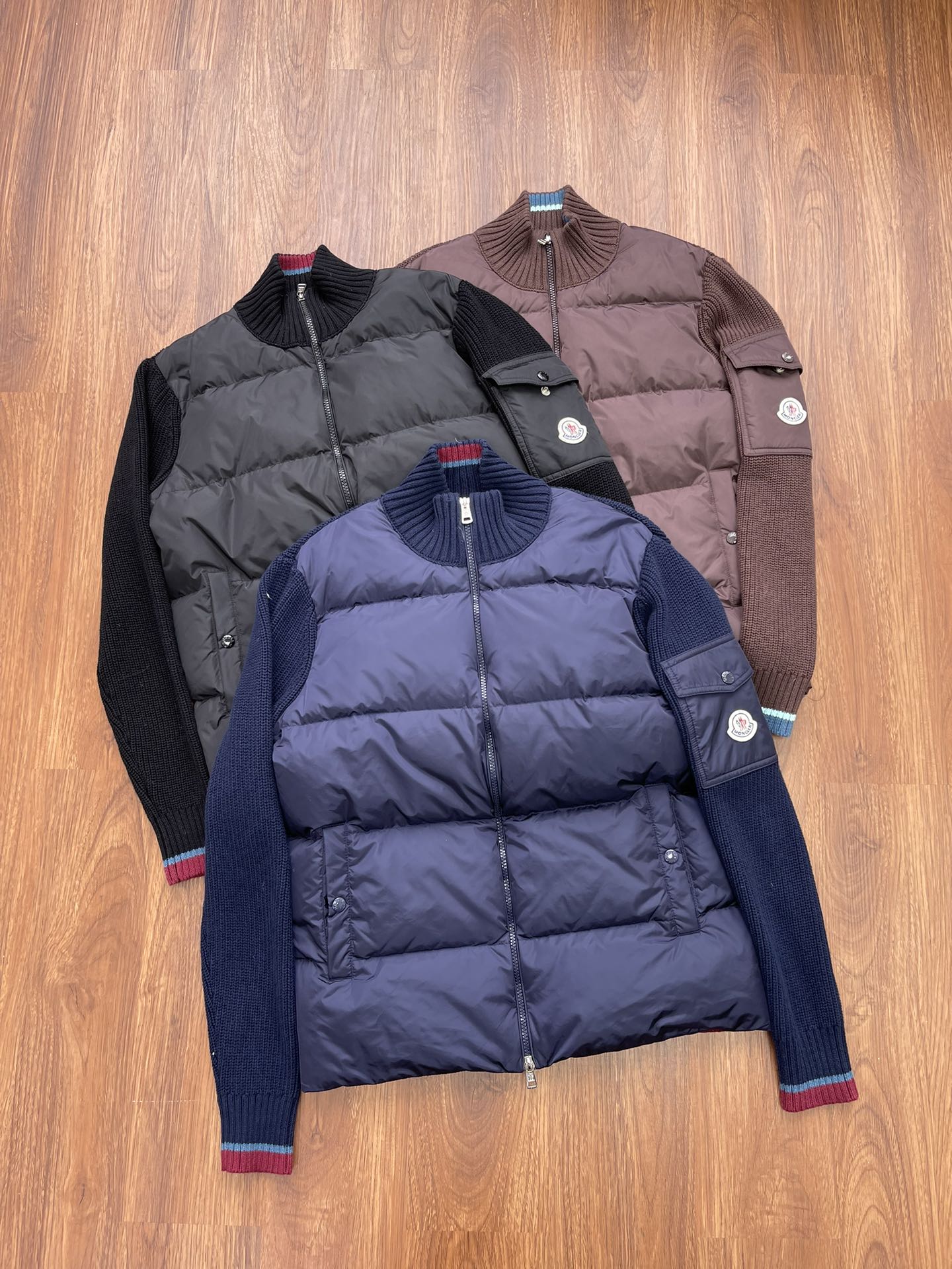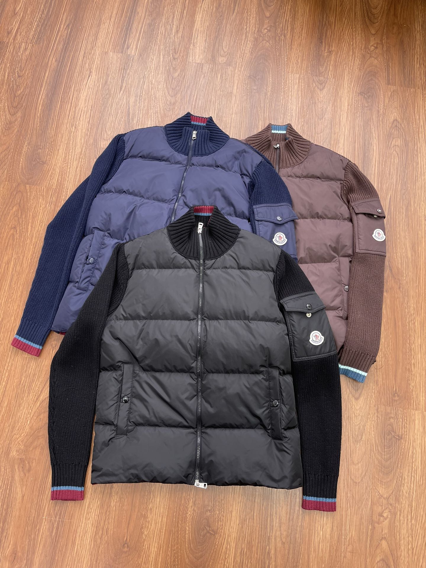 Moncler Premium Down Jacket - Knitted Patchwork, Short Stand Collar