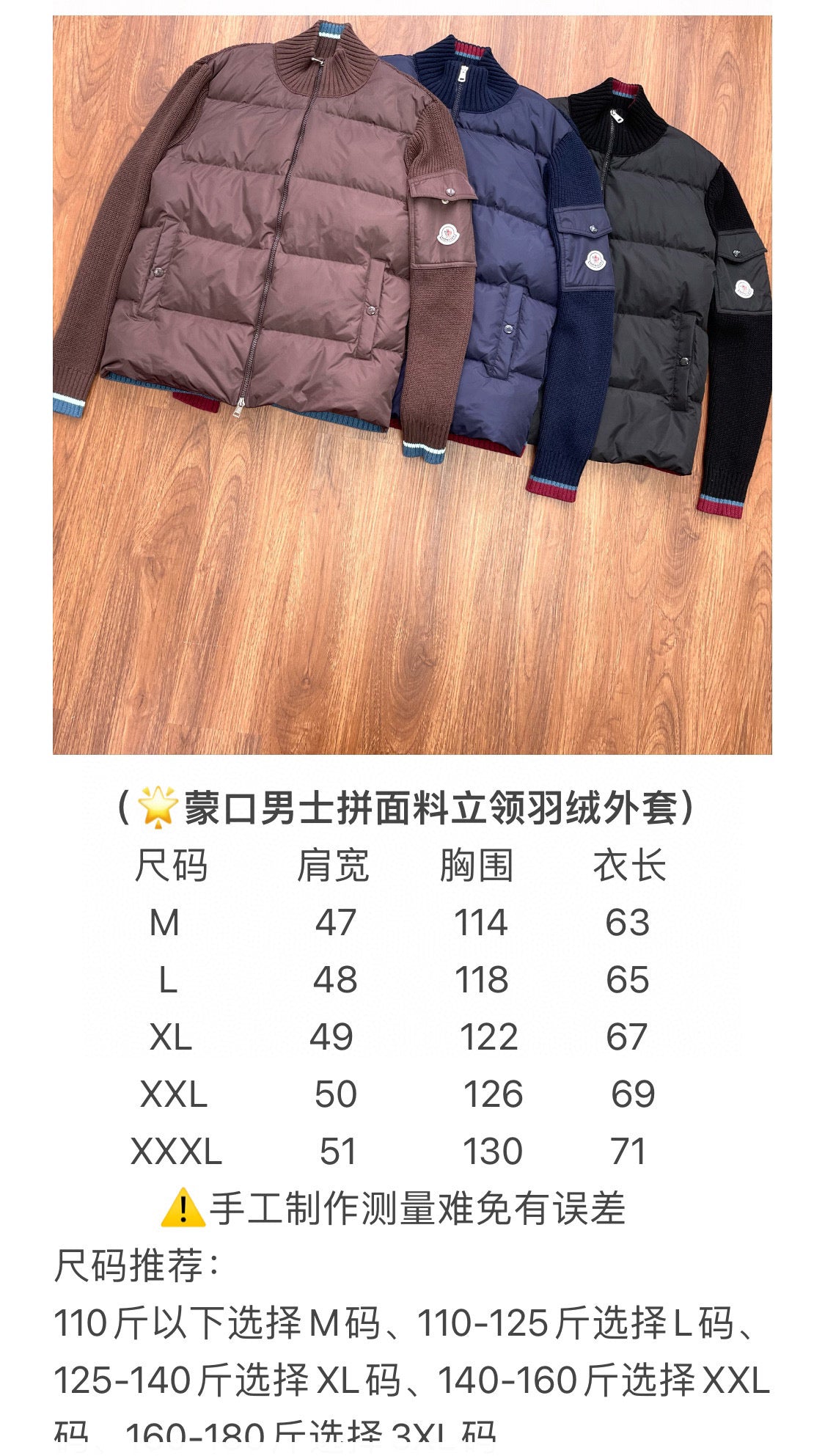 Elevate your winter wardrobe with the Moncler Premium Down Jacket, featuring a stylish knitted patchwork design. This jacket combines comfort and elegance with its short stand collar and 90% white goose down filling, providing exceptional warmth and a luxurious feel.