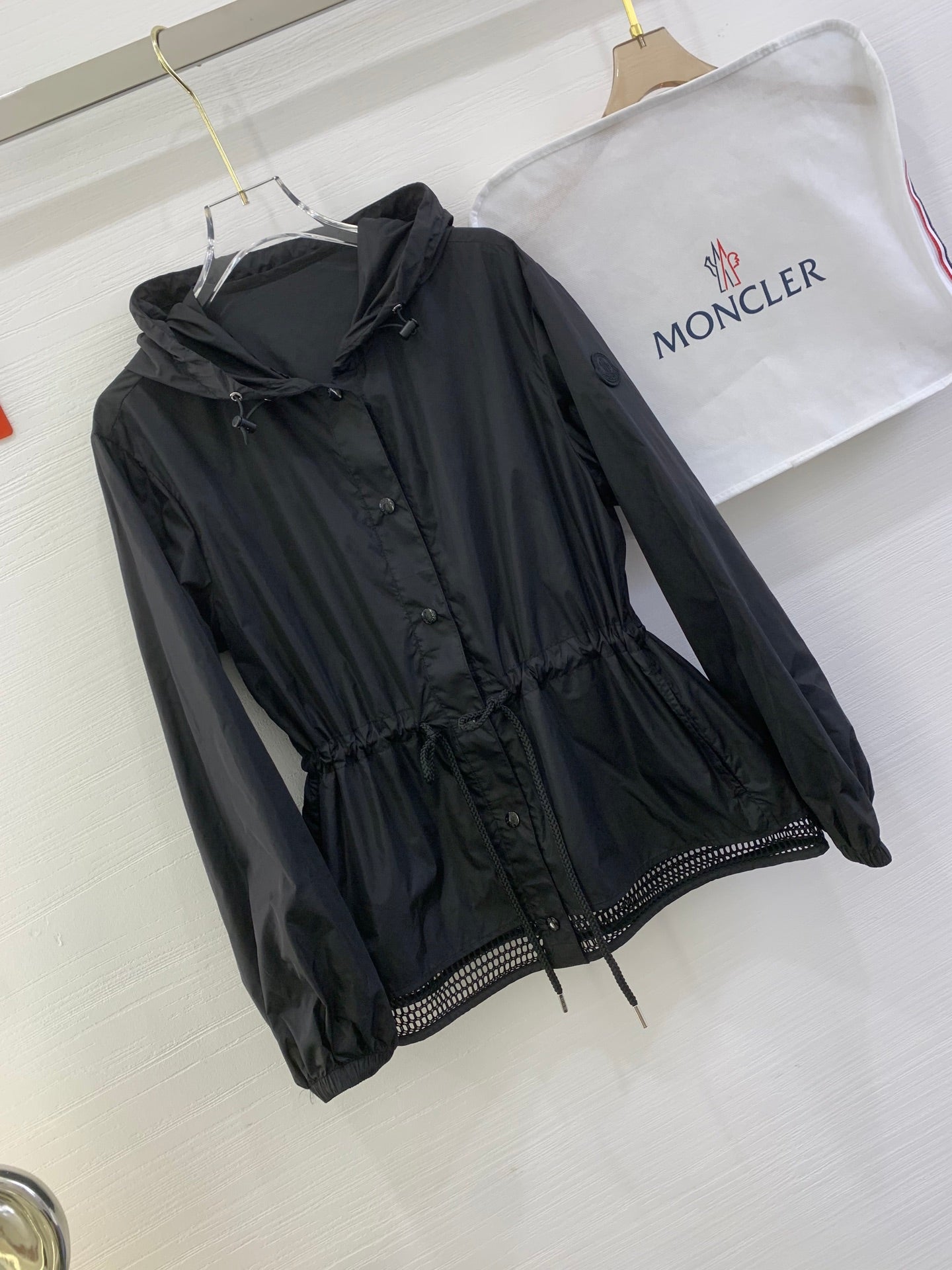 Elevate your wardrobe with the Moncler Rochebonne Women's Hooded Taffeta Jacket. Crafted from lightweight and durable performance nylon, this jacket is perfect for mild weather, offering both comfort and sophisticated style. The timeless black and beige color combination, complemented by elegant British embroidery trims, enhances its refined look. Designed with a hooded silhouette and a flattering nipped waist, the Rochebonne jacket effortlessly combines functionality with everyday elegance. Make a statement no matter the occasion with this versatile piece.
