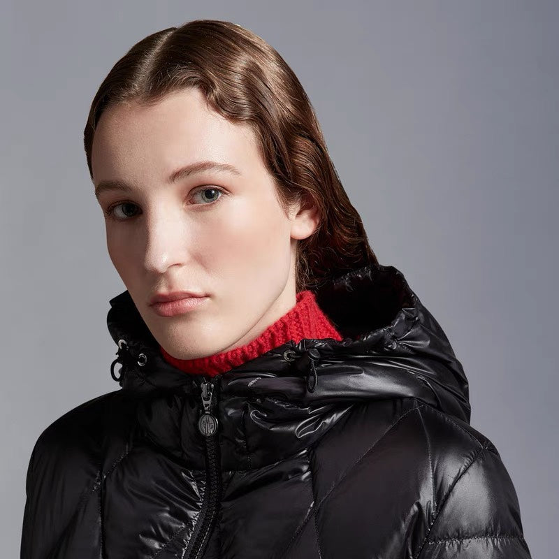 Elevate your winter wardrobe with the Moncler Serilong Women's Hooded Down Jacket. This luxurious mid-length down jacket features a striking diamond pattern and is crafted from premium imported technical fabrics, ensuring both style and functionality. With a filling of 90% white duck down, it offers exceptional warmth and insulation, keeping you cozy in chilly weather.
