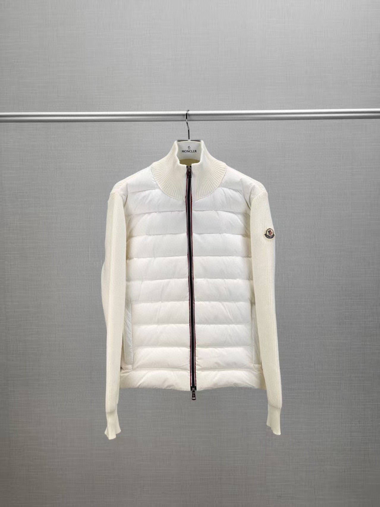 Elevate your casual wardrobe with the Moncler Thickened Down Zipper Cardigan. This stylish men's long-sleeved jacket features a modern design with knitted splicing, offering both warmth and versatility for any occasion. Available in classic black and white, it's perfect for mixing and matching with your favorite outfits. Sizes range from M to 3XL, ensuring a comfortable fit for everyone. Stay warm this season while showcasing your fashion-forward style.