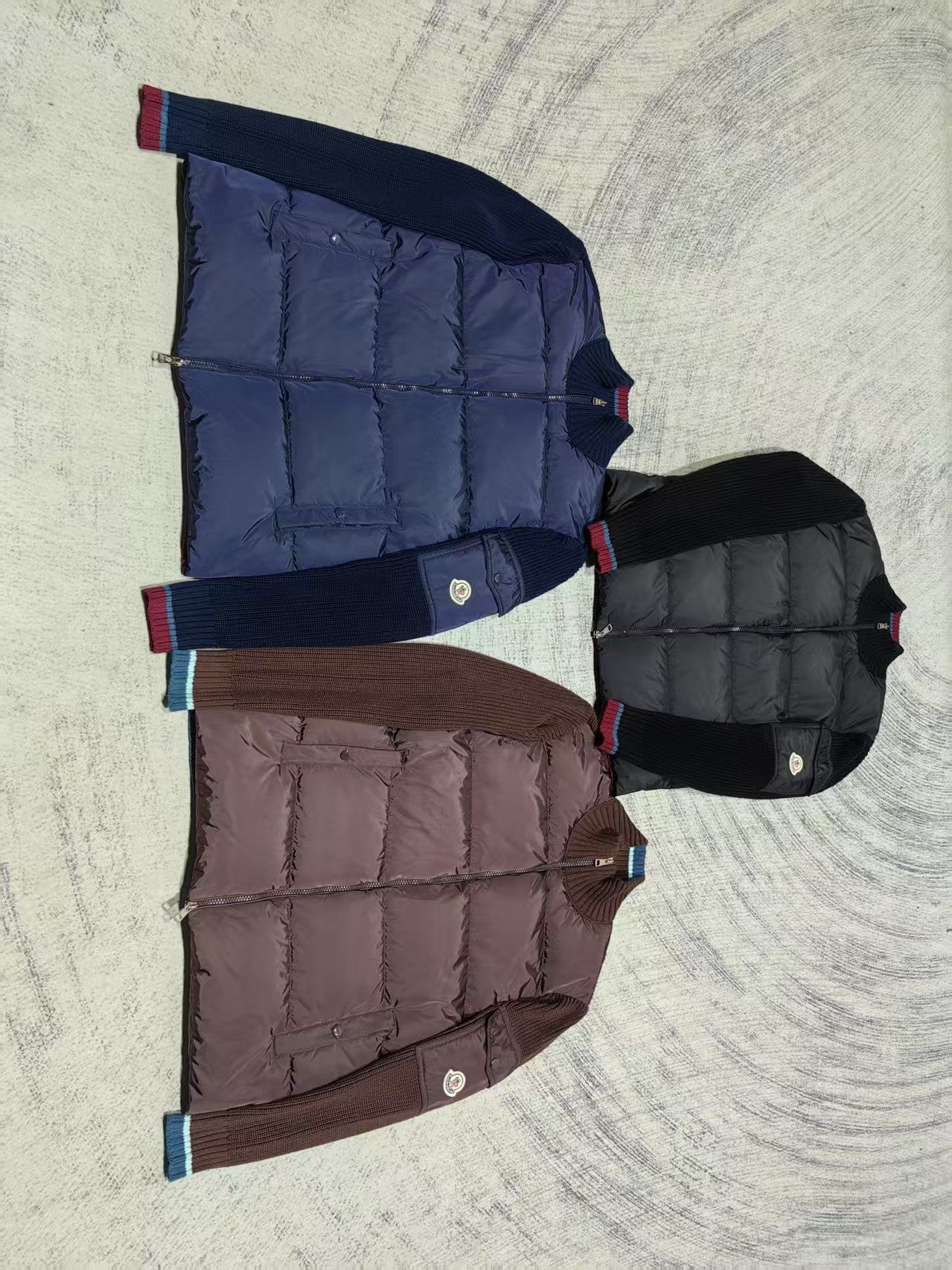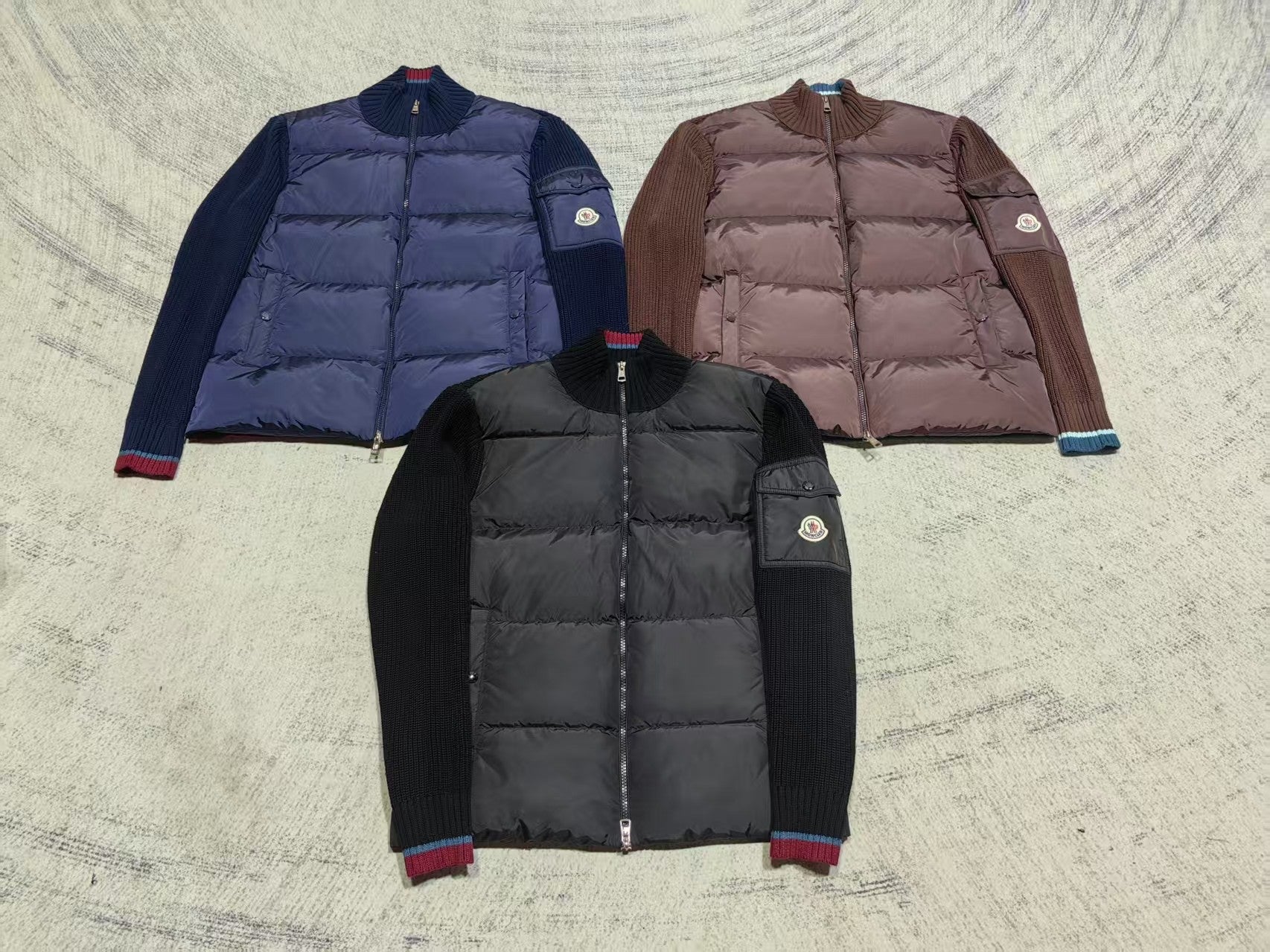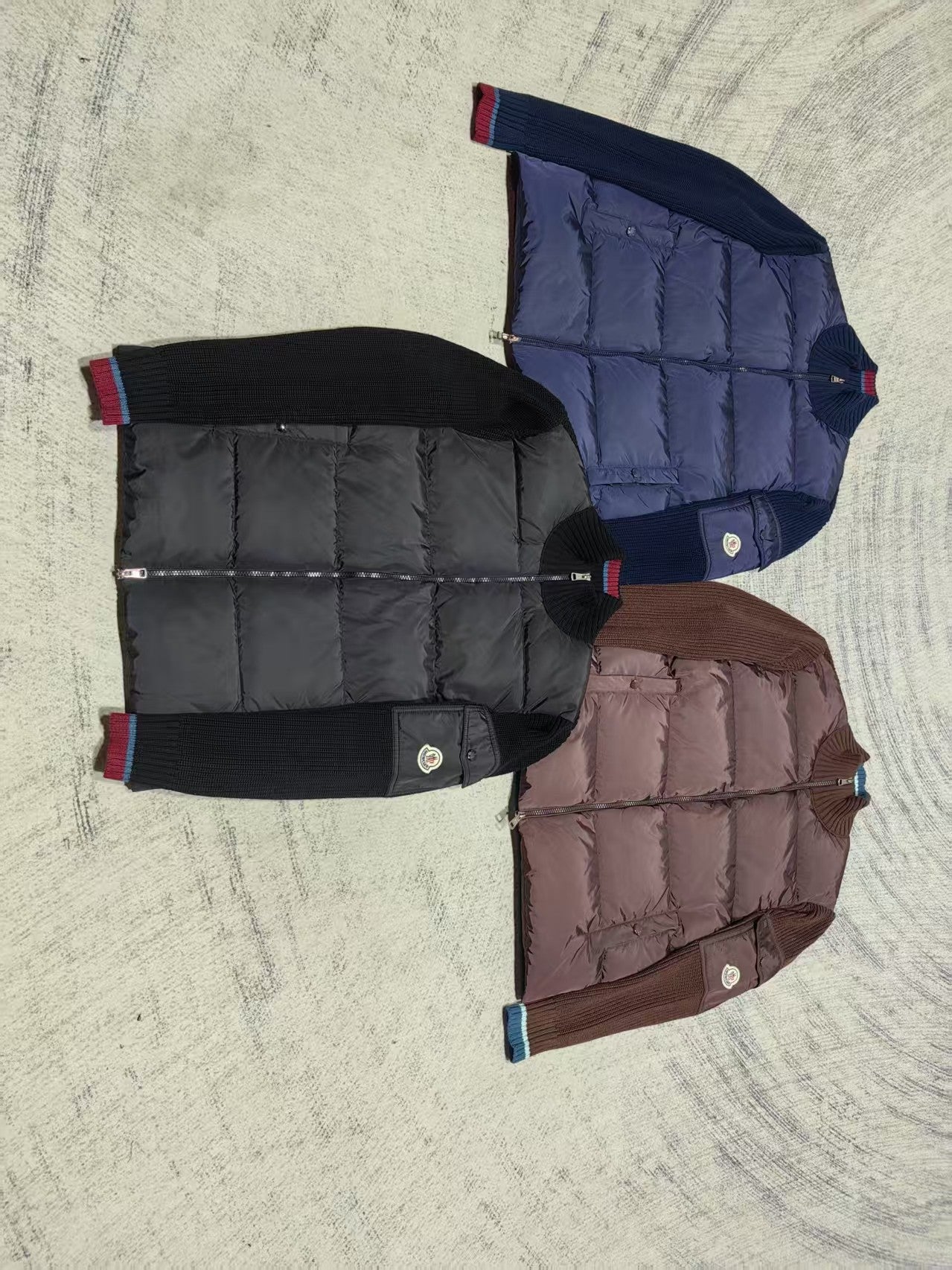 Elevate your style with the Moncler Three-Color Stand-Up Collar Zipper Splicing Down Knitted Cardigan Jacket. This expertly crafted piece combines luxurious warmth with a contemporary design, featuring a sleek stand-up collar and a versatile zipper closure. The unique splicing technique in a chic three-color palette ensures you stand out while keeping comfortable. Perfect for any occasion, this cardigan jacket is an essential addition to your wardrobe, merging functionality and fashion effortlessly. Embrace sophistication and warmth in every layer with Moncler.