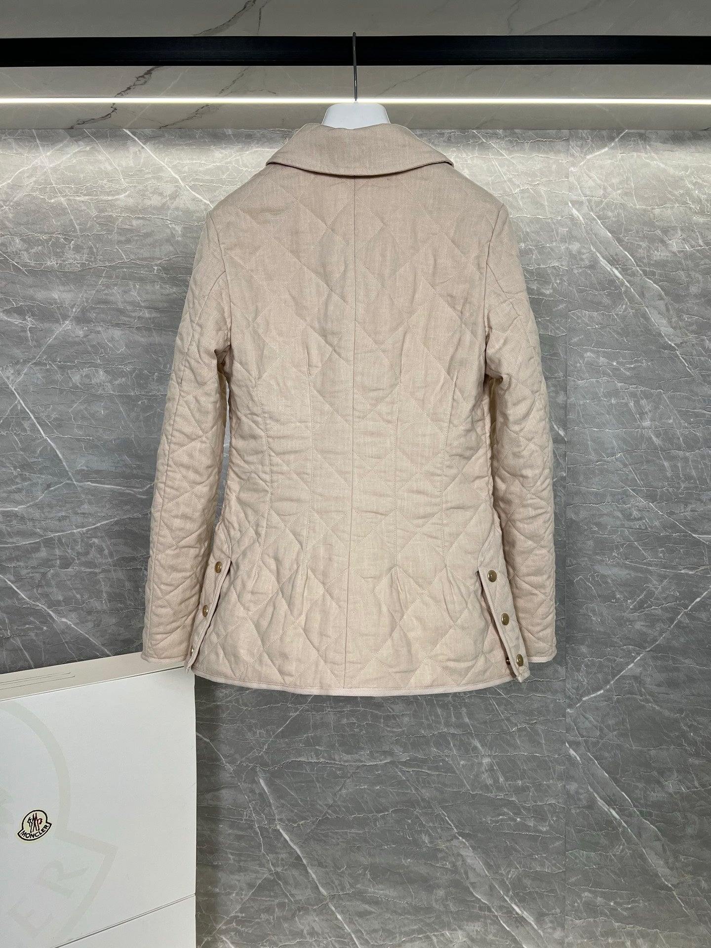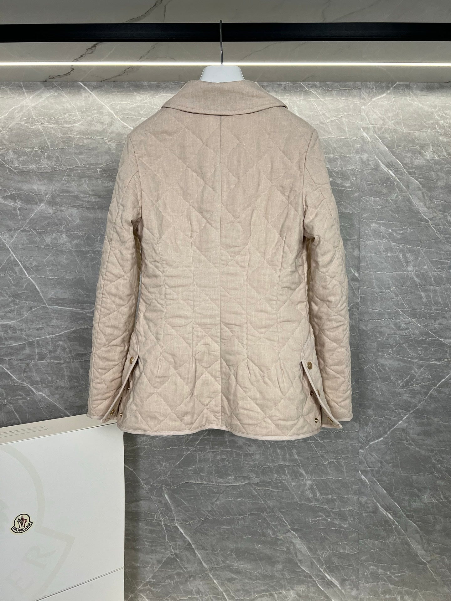 Elevate your outerwear collection with the Moncler Uzes Women's Diamond Quilted Cotton Coat. This chic, lapel-style jacket features a slim silhouette and a sophisticated diamond pattern, combining style and functionality. Crafted from high-quality cotton, it offers comfort and warmth without sacrificing elegance. Perfect for both casual outings and upscale events, this versatile coat is a must-have for any fashion-forward wardrobe. Embrace luxury and timeless design with Moncler.