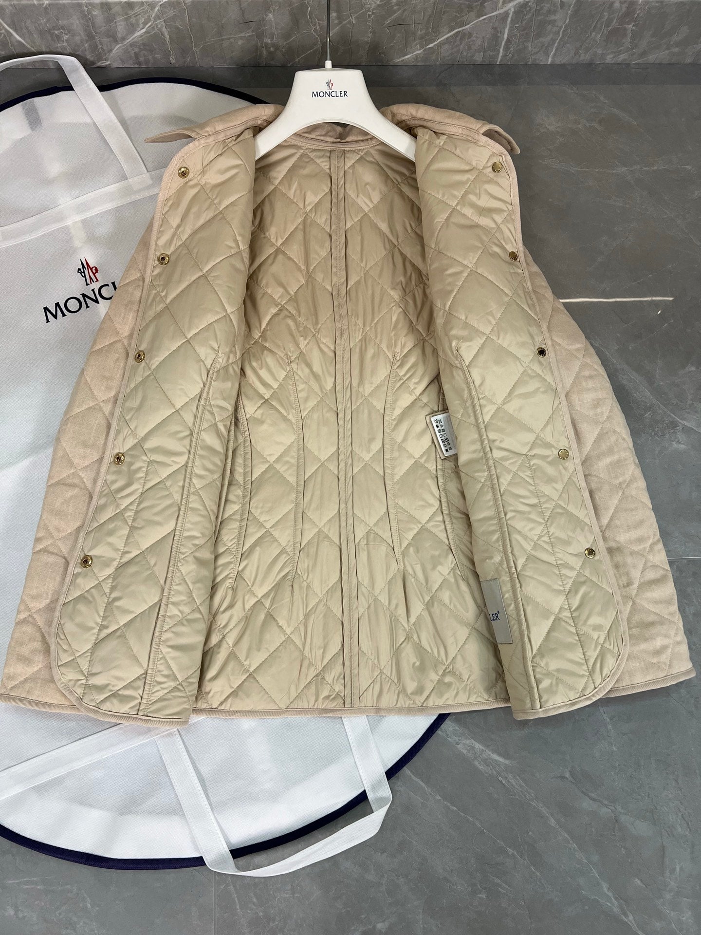 Elevate your outerwear collection with the Moncler Uzes women's coat, featuring a chic lapel design and a sophisticated slim fit. Crafted from high-quality, lightweight cotton, this diamond-patterned quilted coat is perfect for transitional weather. Its elegant silhouette delivers both style and comfort, making it a must-have for any fashion-forward wardrobe. Stay warm and stylish with the timeless appeal of Moncler. Ideal for layering or making a statement on its own. Available now in a variety of sizes.