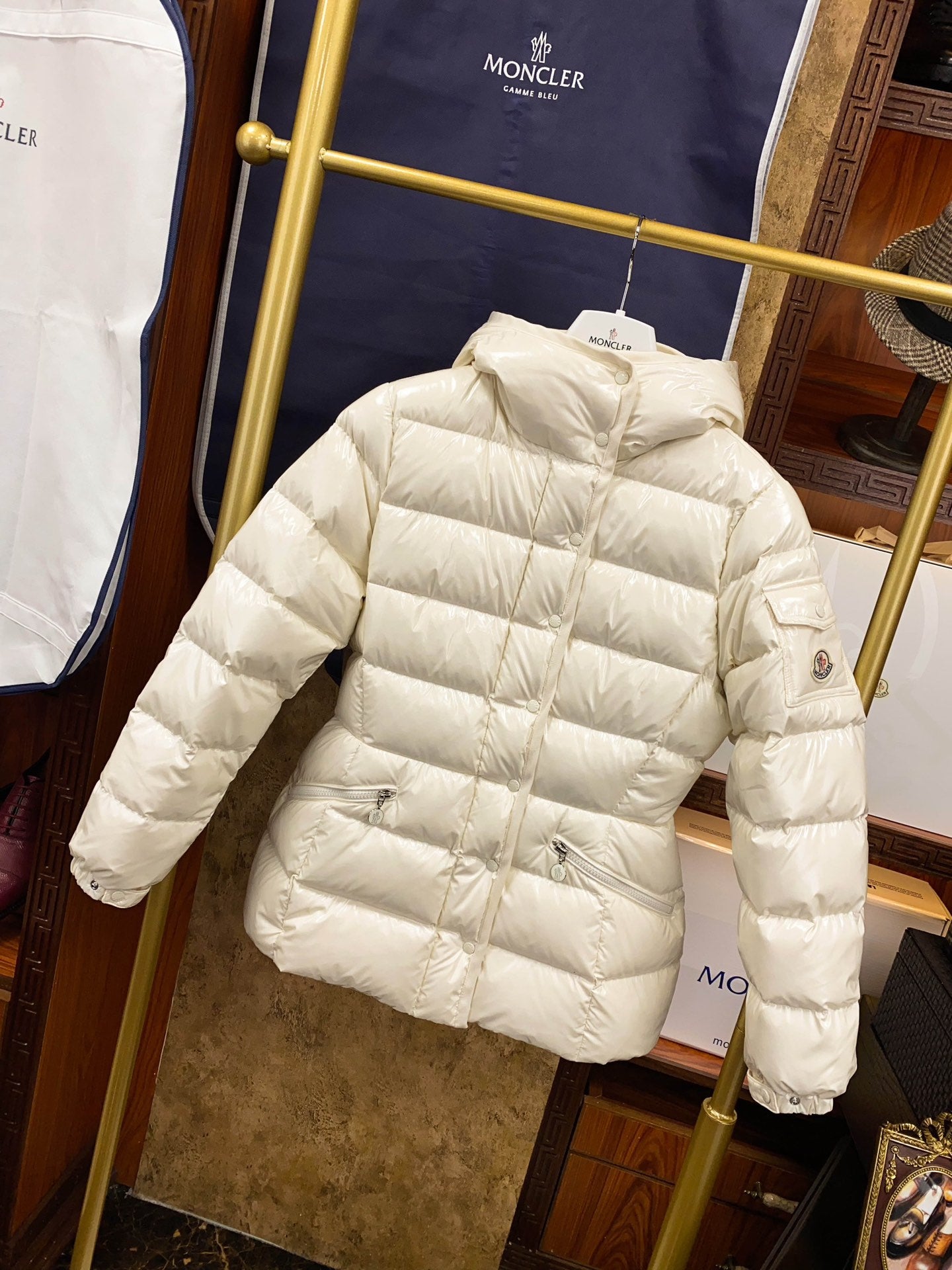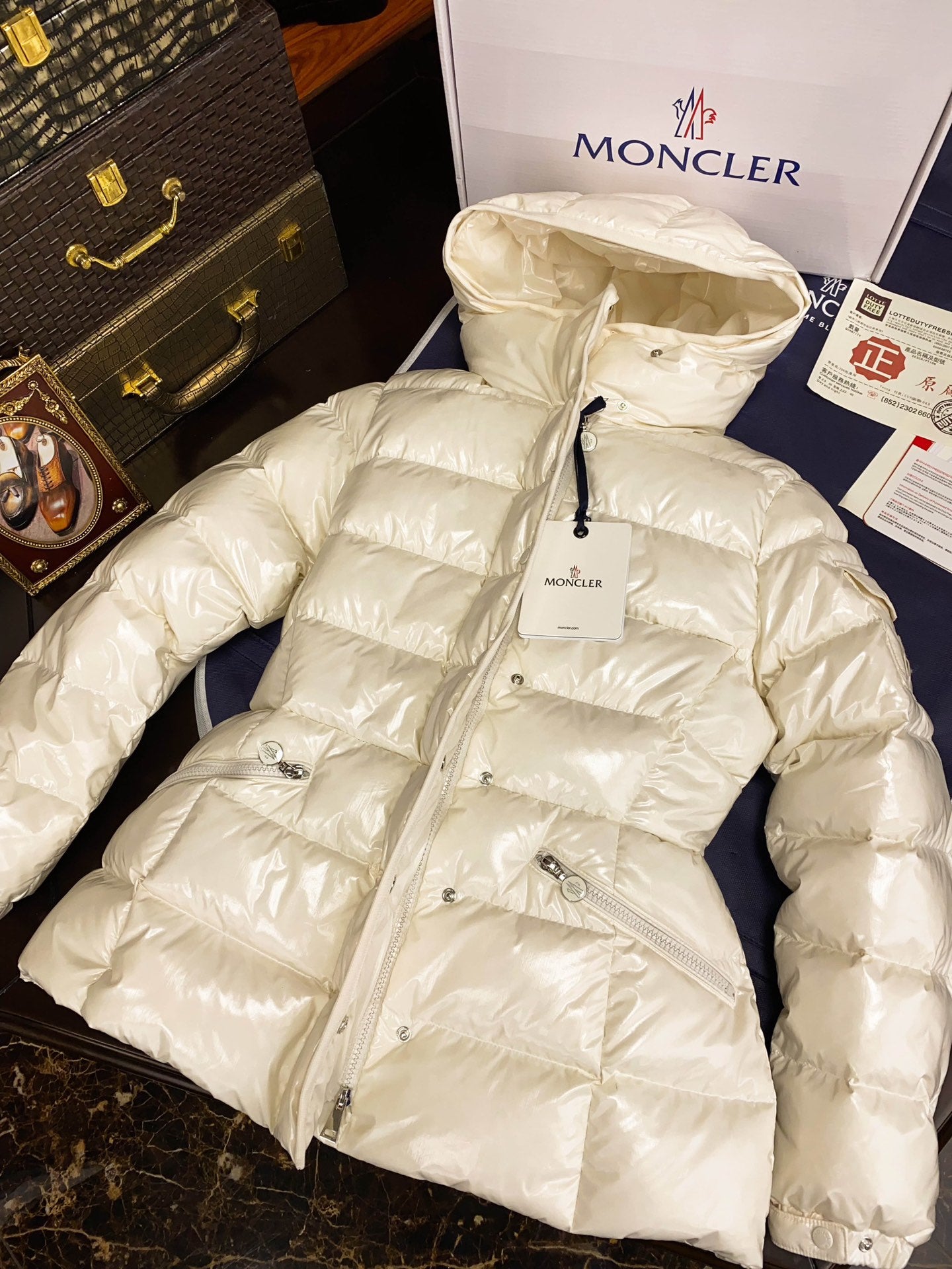 Introducing the Moncler Waist-Cinching Mini-Skirt, a stylish mid-length down jacket designed to flatter your figure. Crafted with innovative 40D nylon fabric, this jacket features oil-breathable and waterproof technology, ensuring you stay comfortable and dry in any weather. The lightweight design is paired with high-density nylon lining that resists static, providing both warmth and durability.