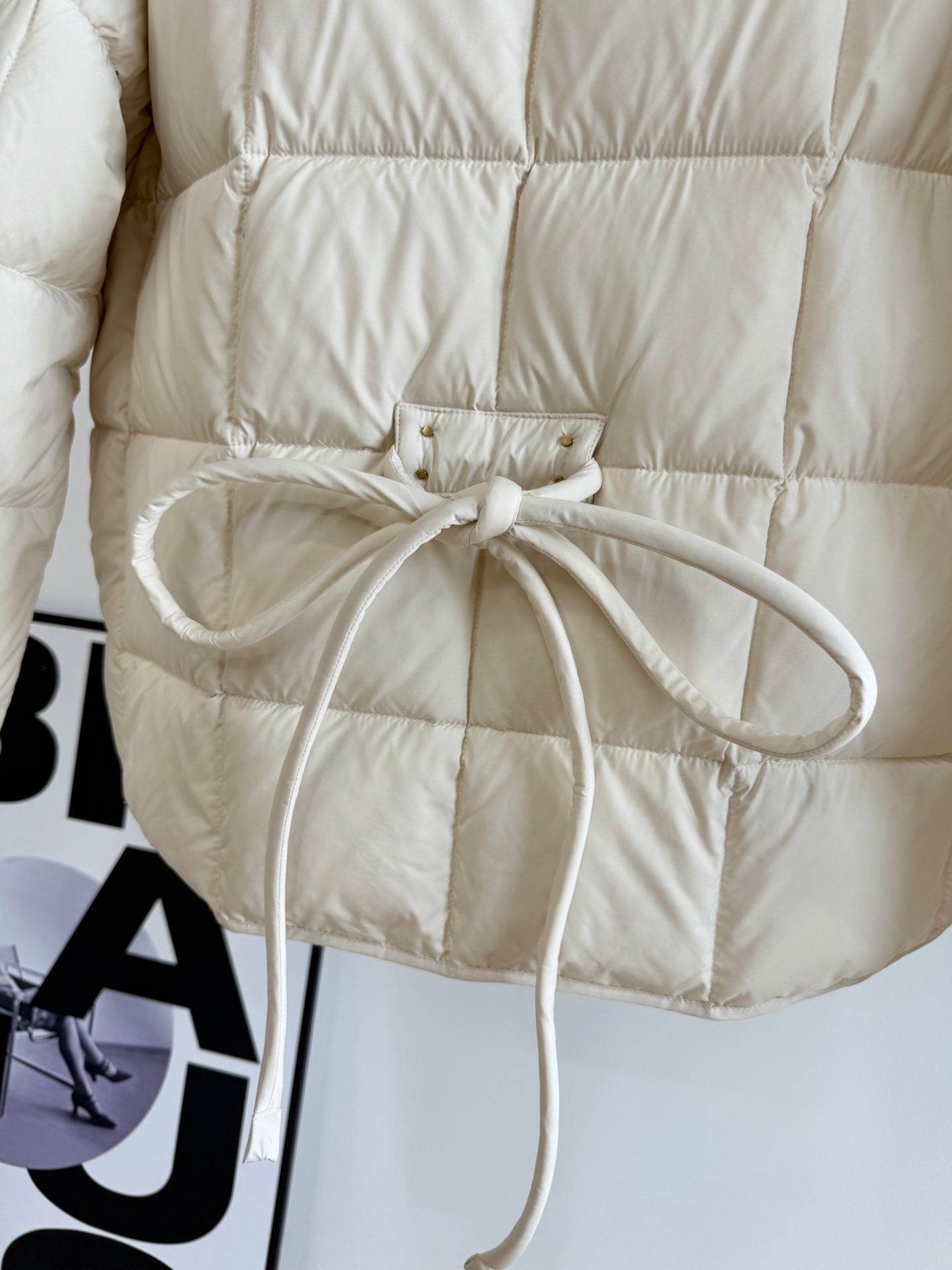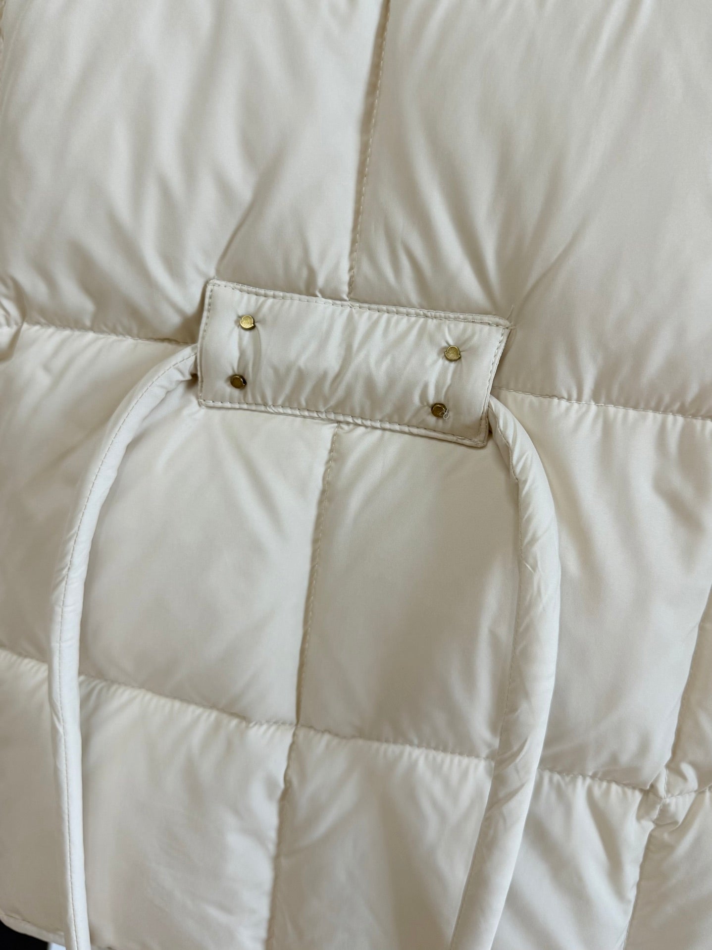 - **Minimalist Elements:** The round neck design fits gracefully, adorned with metallic gold buttons that juxtapose the soft down, exuding understated luxury. Lightweight and cold-resistant, this jacket is perfect for urban lifestyles.